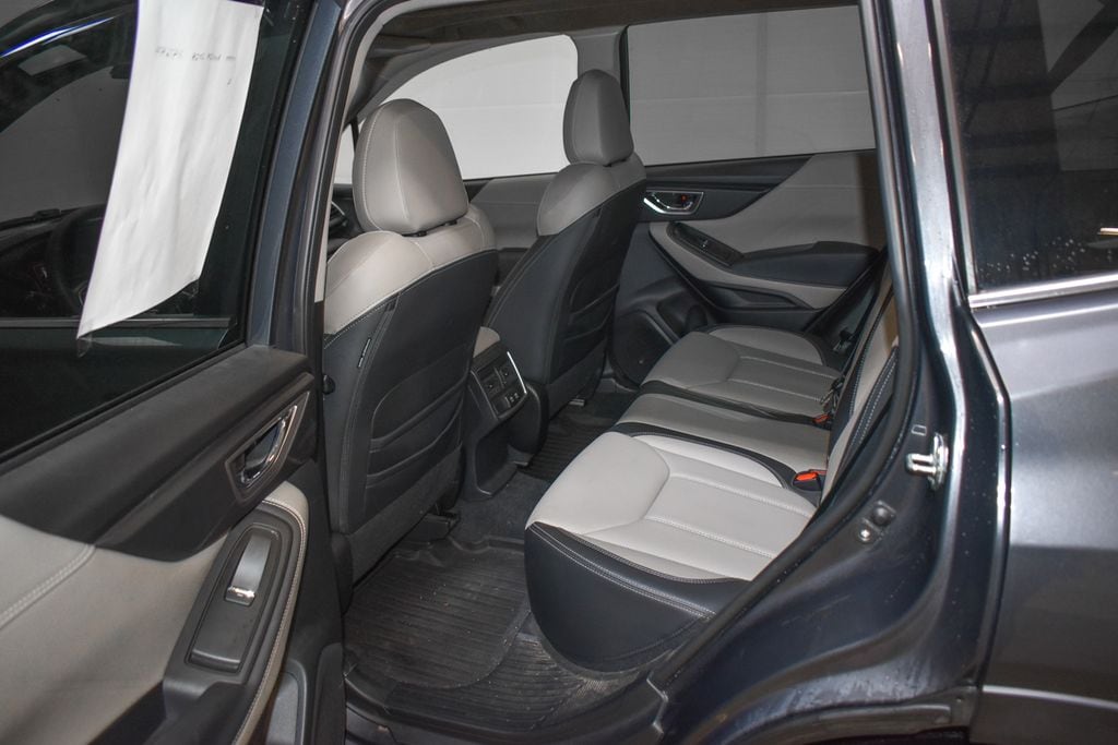 This Forester is well equipped with Nav & harman/kardon & RAB & Heated Steering Wheel (harman/kardon 9-Speaker Audio System, Heated Steering Wheel, Radio: Subaru Starlink 8.0" Multimedia Nav System, and Reverse Automatic Braking System (RAB)), Navigation System, 3.70 Axle Ratio, 4-Wheel Disc Brakes, 6 Speakers, ABS brakes, Air Conditioning, Alloy wheels, AM/FM radio: SiriusXM, Anti-whiplash front head restraints, Auto High-beam Headlights, Auto-Dimming Mirror w/Compass & HomeLink, Automatic temperature control, Body Side Molding - Magnetite Gray Metallic, Brake assist, Bumpers: body-color, CD player, Door Edge Guards - Magnetite Gray Metallic, Driver door bin, Driver vanity mirror, Dual front impact airbags, Dual front side impact airbags, Electronic Stability Control, Emergency communication system: STARLINK Safety and Security (Subscription Required), Exterior Parking Camera Rear, Four wheel independent suspension, Front anti-roll bar, Front Bucket Seats, Front Center Armrest, Front dual zone A/C, Front fog lights, Front reading lights, Fully automatic headlights, Heated door mirrors, Heated Front Bucket Seats, Heated front seats, Illuminated entry, Knee airbag, Leather Shift Knob, Low tire pressure warning, Occupant sensing airbag, Outside temperature display, Overhead airbag, Overhead console, Panic alarm, Passenger door bin, Passenger vanity mirror, Perforated Leather-Trimmed Upholstery, Power door mirrors, Power driver seat, Power Liftgate, Power moonroof: Panoramic, Power steering, Power windows, Radio data system, Radio: Subaru Starlink 8.0" Multimedia Plus System, Rear anti-roll bar, Rear Bumper Cover, Rear seat center armrest, Rear Seatback Protector, Rear window defroster, Rear window wiper, Remote keyless entry, Roof rack: rails only, Security system, Speed control, Speed-sensing steering, Splash Guards, Split folding rear seat, Spoiler, STARLINK/Apple CarPlay/Android Auto, Steering wheel mounted audio controls, Tachometer, Telescoping steering wheel, Tilt steering wheel, Traction control, Trip computer, Turn signal indicator mirrors, Variably intermittent wipers, and Wheels: 18" x 7.0 J Black Machine Finish Alloy.