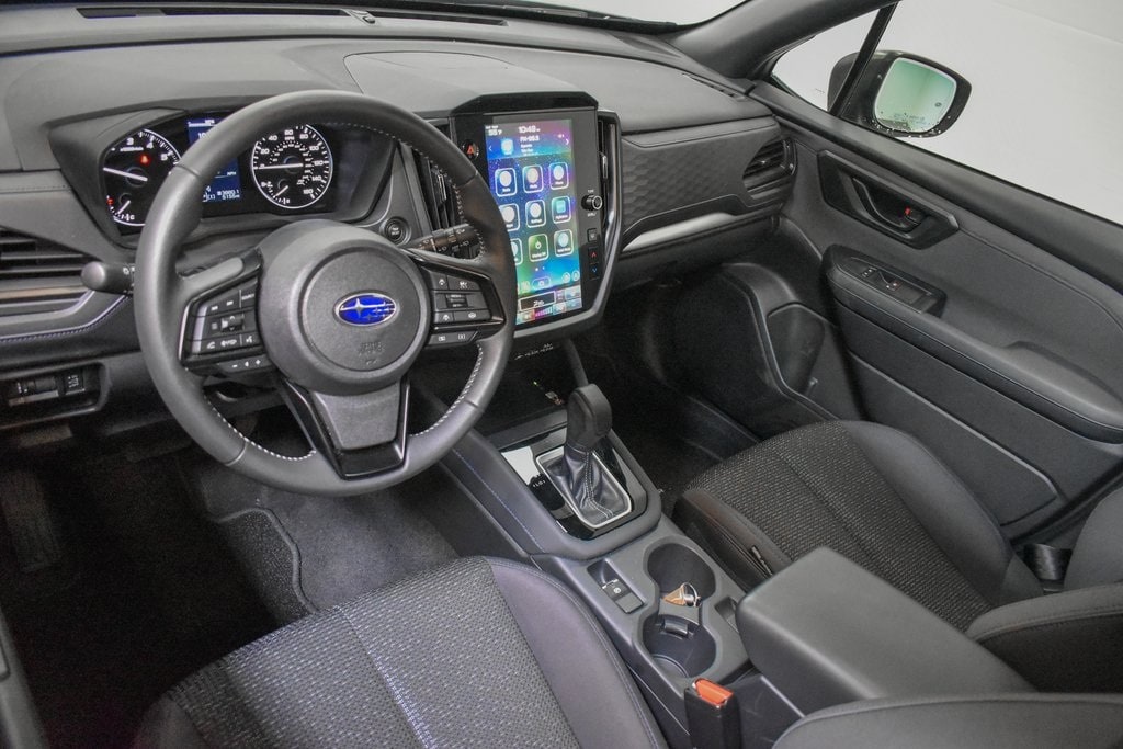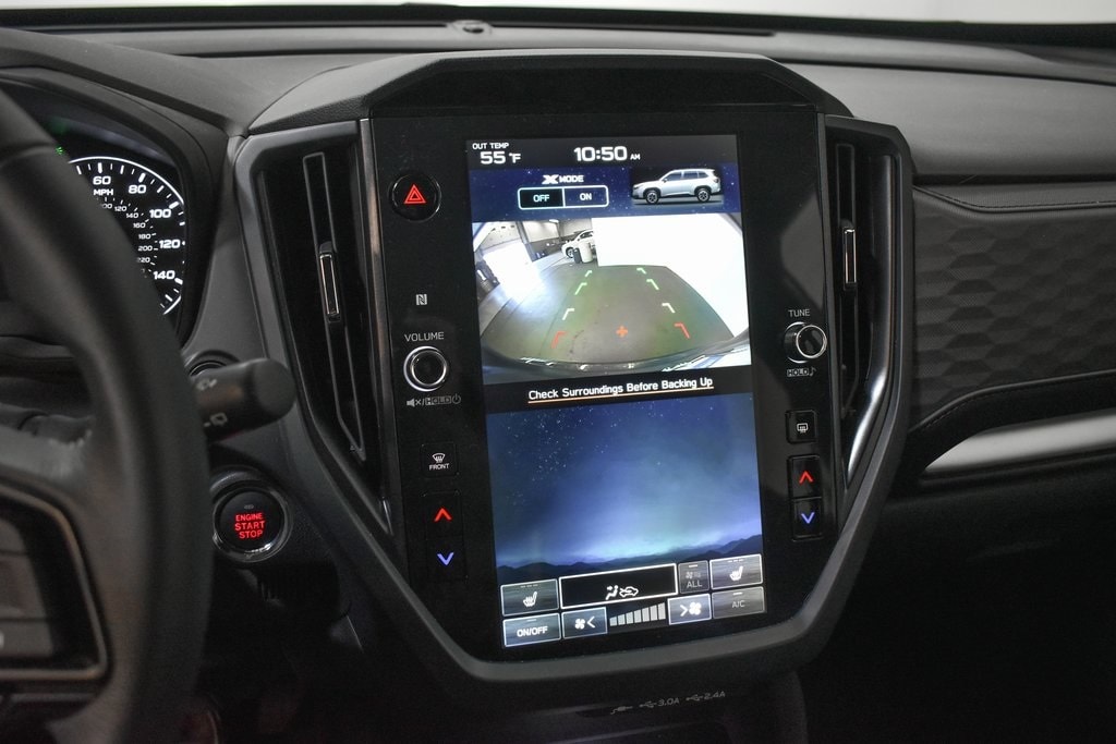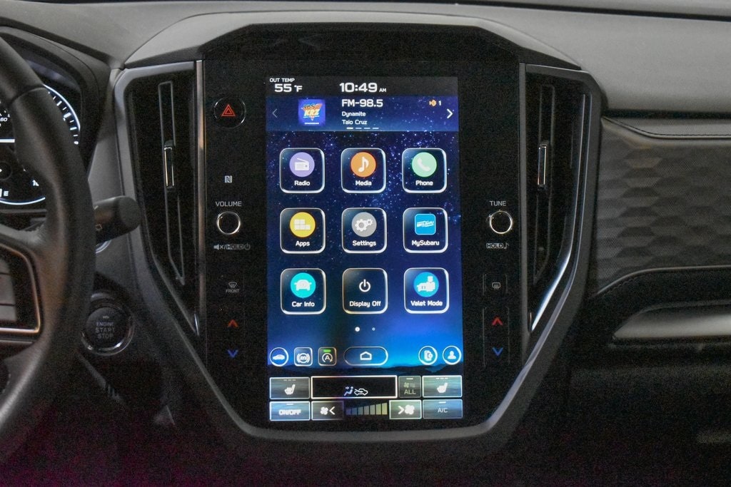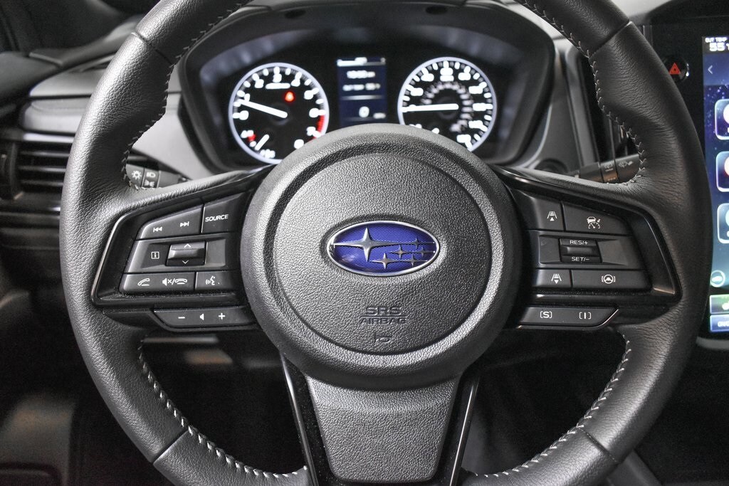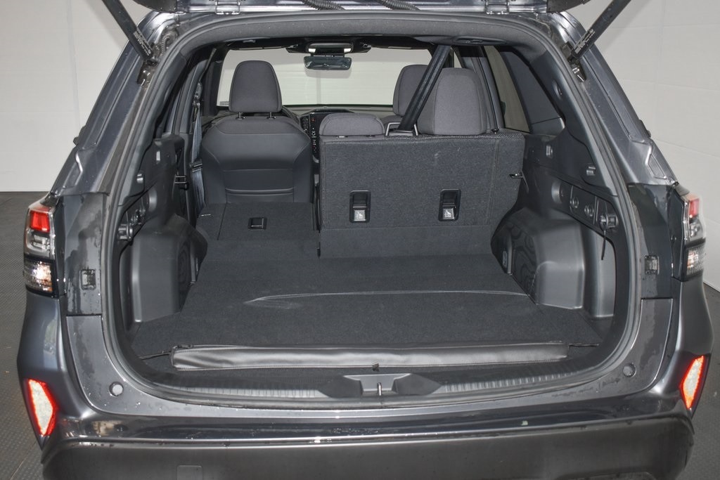 This Forester is well equipped with Power Rear Gate & Blind Spot Detection w/RCTA (Automatic Emergency Steering, Blind-Spot Detection (BSD)/RCTA System, and Power Rear Gate), 4-Wheel Disc Brakes, 6 Speakers, ABS brakes, Air Conditioning, Alloy wheels, AM/FM radio: SiriusXM with 360L, Anti-whiplash front head restraints, Auto High-beam Headlights, Auto-Dimming Exterior Mirror w/Approach Light, Auto-Dimming Mirror w/Compass & HomeLink, Automatic temperature control, Brake assist, Bumpers: body-color, Cargo Net, Driver door bin, Driver vanity mirror, Dual front impact airbags, Dual front side impact airbags, Electronic Stability Control, Emergency communication system: MySubaru Safety (3-year free trial), Exterior Parking Camera Rear, Four wheel independent suspension, Front anti-roll bar, Front Bucket Seats, Front Center Armrest, Front dual zone A/C, Front fog lights, Front reading lights, Fully automatic headlights, Heated door mirrors, Heated Front Bucket Seats, Heated front seats, Illuminated entry, Knee airbag, Leather steering wheel, Low tire pressure warning, Occupant sensing airbag, Outside temperature display, Overhead airbag, Overhead console, Panic alarm, Passenger door bin, Passenger vanity mirror, Power door mirrors, Power driver seat, Power moonroof: Panoramic, Power steering, Power windows, Premium Textured Cloth Upholstery, Radio data system, Radio: Subaru 11.6" Multimedia Plus System, Rear anti-roll bar, Rear seat center armrest, Rear window defroster, Rear window wiper, Remote keyless entry, Security system, Speed control, Speed-sensing steering, Splash Guards, Split folding rear seat, Spoiler, Steering wheel mounted audio controls, Tachometer, Telescoping steering wheel, Tilt steering wheel, Traction control, Trip computer, Variably intermittent wipers, and Wheels: 17" x 7.0 J Dark Metallic Aluminum-Alloy.