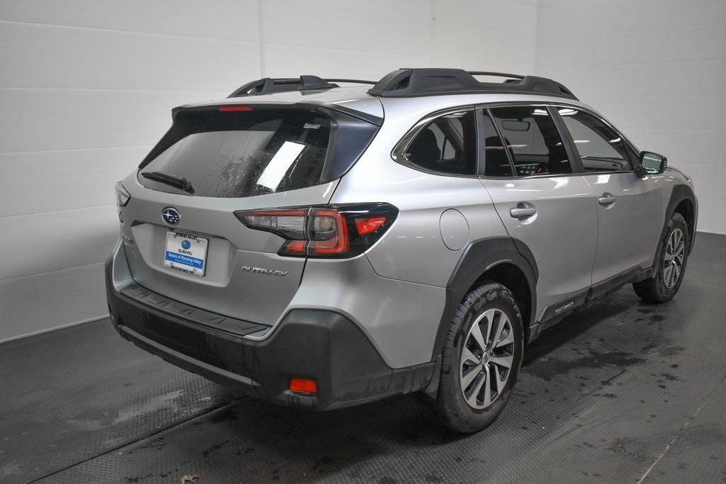 This Outback is well equipped with BSD & RCTA & Keyless Access & Push Button Start (Blind Spot Detection (BSD), Hands-Free Power Rear Gate, Keyless Access w/Push Button Start, Power Moonroof, Radio: Subaru 11.6" Multimedia System w/Navigation, and Rear Cross Traffic Alert (RCTA)), Tech Package 1 (Auto-Dimming Exterior Mirror w/Approach Light, Auto-Dimming Mirror w/Compass & HomeLink, LED Upgrade, and Wireless Charger), 4-Wheel Disc Brakes, 6 Speakers, ABS brakes, Air Conditioning, Alloy wheels, AM/FM radio: SiriusXM with 360L, Apple CarPlay & Android Auto, Auto High-beam Headlights, Automatic temperature control, Brake assist, Bumpers: body-color, Cargo Net, Cargo Sidewall Protector, Cloth Upholstery, Driver door bin, Driver vanity mirror, Dual front impact airbags, Dual front side impact airbags, Electronic Stability Control, Emergency communication system: MySubaru Safety (3-year free trial), Exterior Parking Camera Rear, Four wheel independent suspension, Front anti-roll bar, Front Bucket Seats, Front Center Armrest w/Storage, Front dual zone A/C, Front fog lights, Front reading lights, Fully automatic headlights, Heated door mirrors, Heated Front Bucket Seats, Heated front seats, Illuminated entry, Knee airbag, Leather Shift Knob, Leather steering wheel, Low tire pressure warning, Occupant sensing airbag, Outside temperature display, Overhead airbag, Overhead console, Panic alarm, Passenger door bin, Passenger vanity mirror, Power door mirrors, Power driver seat, Power steering, Power windows, Radio: Subaru 11.6" Multimedia Plus System, Rear anti-roll bar, Rear Bumper Cover, Rear seat center armrest, Rear window defroster, Rear window wiper, Remote keyless entry, Roof rack, Security system, Speed control, Speed-sensing steering, Splash Guards, Split folding rear seat, Spoiler, Steering wheel mounted audio controls, Tachometer, Telescoping steering wheel, Tilt steering wheel, Traction control, Trip computer, Turn signal indicator mirrors, Variably intermittent wipers, and Wheels: 17" x 7J Black Aluminum-Alloy.