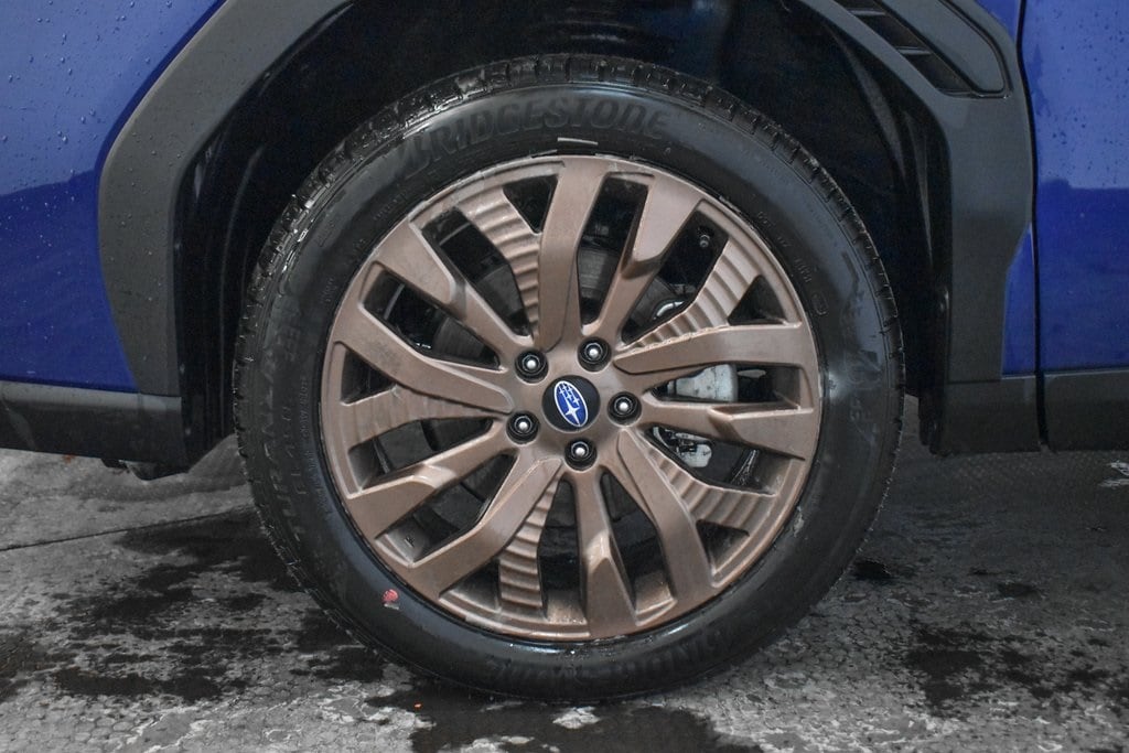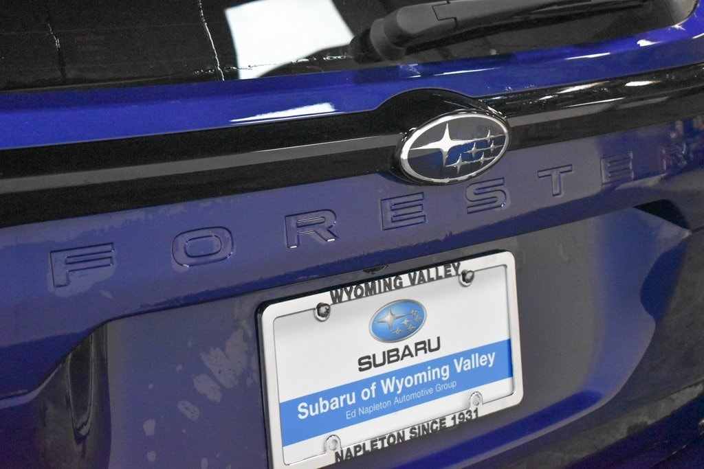 This Forester is well equipped with Standard Model, 4-Wheel Disc Brakes, 6 Speakers, ABS brakes, Air Conditioning, Alloy wheels, AM/FM radio: SiriusXM with 360L, Anti-whiplash front head restraints, Auto High-beam Headlights, Auto-Dimming Mirror with Compass and HomeLink, Automatic temperature control, Brake assist, Bumpers: body-color, Cargo Net, Cargo Sidewall Protector, Driver door bin, Driver vanity mirror, Dual front impact airbags, Dual front side impact airbags, Electronic Stability Control, Exterior Parking Camera Rear, Four wheel independent suspension, Front anti-roll bar, Front Bucket Seats, Front Center Armrest, Front dual zone A/C, Front fog lights, Front reading lights, Fully automatic headlights, Heated door mirrors, Heated Front Bucket Seats, Heated front seats, Illuminated entry, Knee airbag, Leather steering wheel, LED Upgrade, Low tire pressure warning, Occupant sensing airbag, Outside temperature display, Overhead airbag, Overhead console, Panic alarm, Passenger door bin, Passenger vanity mirror, Power door mirrors, Power driver seat, Power moonroof: Panoramic, Power steering, Power windows, Radio data system, Radio: Subaru 11.6" Multimedia Plus System, Rear anti-roll bar, Rear seat center armrest, Rear window defroster, Rear window wiper, Remote keyless entry, Security system, Speed control, Speed-sensing steering, Split folding rear seat, Spoiler, Sport StarTex Upholstery, Steering wheel mounted audio controls, Tachometer, Telescoping steering wheel, Tilt steering wheel, Traction control, Trip computer, Turn signal indicator mirrors, Variably intermittent wipers, and Wheels: 19" x 7.5 J Bronze Finish Aluminum-Alloy.