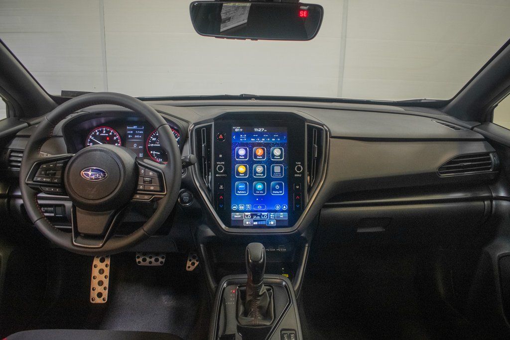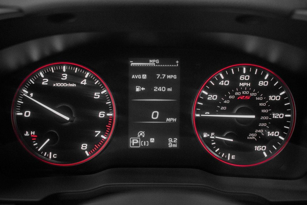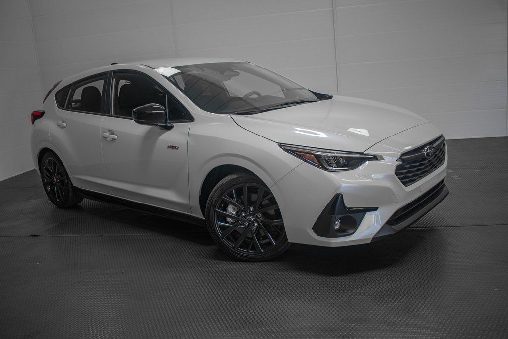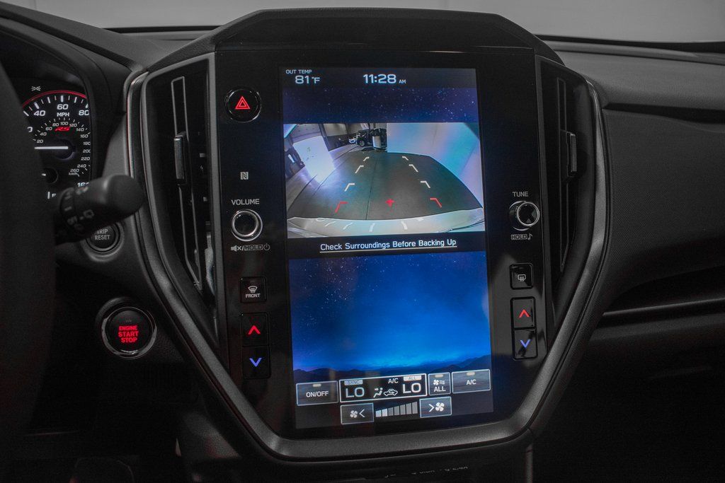 This Impreza is well equipped with Standard Model, 4-Wheel Disc Brakes, 6 Speakers, ABS brakes, Air Conditioning, Alloy wheels, AM/FM radio: SiriusXM with 360L, Anti-whiplash front head restraints, Auto High-beam Headlights, Auto-Dimming Exterior Mirror w/Approach Light, Auto-Dimming Mirror w/Compass & HomeLink, Automatic temperature control, Brake assist, Bumpers: body-color, Cargo Net, Driver door bin, Driver vanity mirror, Dual front impact airbags, Dual front side impact airbags, Electronic Stability Control, Emergency communication system, Exterior Parking Camera Rear, Footwell Illumination Kit, Four wheel independent suspension, Front anti-roll bar, Front Bucket Seats, Front Center Armrest, Front dual zone A/C, Front fog lights, Front reading lights, Fully automatic headlights, Heated door mirrors, Heated Front Bucket Seats, Heated front seats, Illuminated entry, Knee airbag, Leather Shift Knob, LED Upgrade, Low tire pressure warning, Occupant sensing airbag, Outside temperature display, Overhead airbag, Overhead console, Panic alarm, Passenger door bin, Passenger vanity mirror, Power door mirrors, Power steering, Power windows, Radio data system, Radio: Subaru 11.6" Multimedia Plus System, Rear anti-roll bar, Rear Gate Assist Handle, Rear seat center armrest, Rear window defroster, Rear window wiper, Remote keyless entry, RS Cloth Upholstery, Security system, Speed control, Speed-sensing steering, Split folding rear seat, Spoiler, Steering wheel mounted audio controls, Tachometer, Telescoping steering wheel, Tilt steering wheel, Traction control, Trip computer, Turn signal indicator mirrors, Variably intermittent wipers, and Wheels: 18" x 7.0" J Dark Gray Aluminum-Alloy.