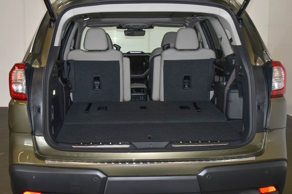 This Ascent is well equipped with 14 Speakers, 3rd row seats: bench, 4-Wheel Disc Brakes, ABS brakes, Air Conditioning, Alloy wheels, Auto High-beam Headlights, Auto-dimming Rear-View mirror, Automatic temperature control, Brake assist, Bumpers: body-color, Compass, Delay-off headlights, Driver door bin, Driver vanity mirror, Dual front impact airbags, Dual front side impact airbags, Electronic Stability Control, Exterior Parking Camera Rear, Four wheel independent suspension, Front anti-roll bar, Front Bucket Seats, Front Center Armrest, Front dual zone A/C, Front fog lights, Front reading lights, Fully automatic headlights, Garage door transmitter: HomeLink, harman/kardon® Speakers, Heated door mirrors, Heated Front Bucket Seats, Heated front seats, Heated rear seats, Heated steering wheel, Illuminated entry, Knee airbag, Leather Shift Knob, Leather steering wheel, Low tire pressure warning, Memory seat, Navigation System, Occupant sensing airbag, Outside temperature display, Overhead airbag, Overhead console, Panic alarm, Passenger door bin, Passenger vanity mirror, Perforated Leather-Trimmed Upholstery, Power door mirrors, Power driver seat, Power Liftgate, Power moonroof, Power passenger seat, Power steering, Power windows, Radio data system, Rear air conditioning, Rear anti-roll bar, Rear reading lights, Rear window defroster, Rear window wiper, Reclining 3rd row seat, Remote keyless entry, Security system, Speed control, Speed-sensing steering, Split folding rear seat, Spoiler, Steering wheel mounted audio controls, Tachometer, Telescoping steering wheel, Tilt steering wheel, Traction control, Trip computer, Turn signal indicator mirrors, Variably intermittent wipers, and Wheels: 20" x 7.5 J Dk Gray Alloy w/Machine Finish.