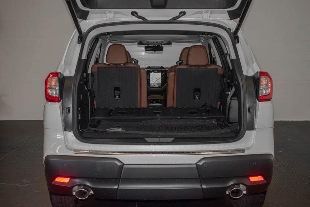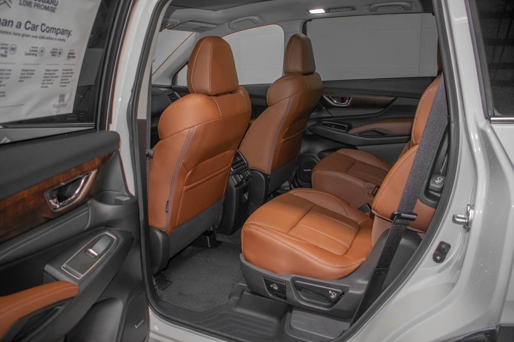 This Ascent is well equipped with 14 Speakers, 3rd row seats: bench, 4-Wheel Disc Brakes, ABS brakes, Air Conditioning, Alloy wheels, AM/FM radio: SiriusXM with 360L, Apple CarPlay & Android Auto, Auto High-beam Headlights, Auto-dimming Rear-View mirror, Automatic temperature control, Brake assist, Bumpers: body-color, Compass, Delay-off headlights, Driver door bin, Driver vanity mirror, Dual front impact airbags, Dual front side impact airbags, Electronic Stability Control, Emergency communication system: MySubaru Safety (3-year free trial), Exterior Parking Camera Rear, Four wheel independent suspension, Front anti-roll bar, Front Bucket Seats, Front Center Armrest, Front dual zone A/C, Front fog lights, Front reading lights, Fully automatic headlights, Garage door transmitter: HomeLink, harman/kardon® Speakers, Heated & Ventilated Front Bucket Seats, Heated door mirrors, Heated front seats, Heated rear seats, Heated steering wheel, HVAC memory, Illuminated entry, Knee airbag, Leather Shift Knob, Leather steering wheel, Low tire pressure warning, Memory seat, Navigation System, Occupant sensing airbag, Outside temperature display, Overhead airbag, Overhead console, Panic alarm, Passenger door bin, Passenger vanity mirror, Perforated Nappa Leather-Trimmed Upholstery, Power door mirrors, Power driver seat, Power Liftgate, Power moonroof, Power passenger seat, Power steering, Power windows, Radio data system, Radio: Subaru 11.6" Multimedia System w/Navigation, Rain sensing wipers, Rear air conditioning, Rear anti-roll bar, Rear reading lights, Rear window defroster, Rear window wiper, Reclining 3rd row seat, Remote keyless entry, Security system, Speed control, Speed-sensing steering, Split folding rear seat, Spoiler, Steering wheel mounted audio controls, Tachometer, Telescoping steering wheel, Tilt steering wheel, Traction control, Trip computer, Turn signal indicator mirrors, Variably intermittent wipers, Ventilated front seats, and Wheels: 20" x 7.5 J Dk Gray Alloy w/Machine Finish.