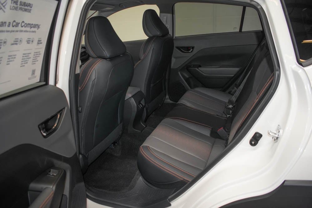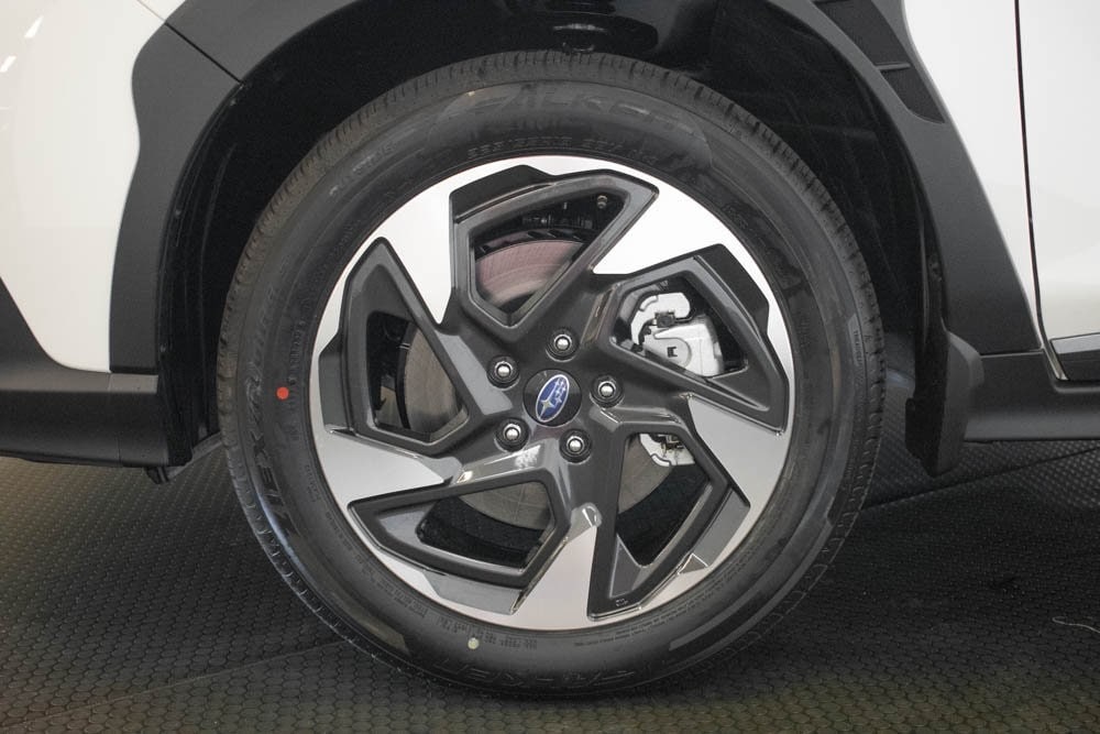 This Crosstrek is well equipped with 4-Wheel Disc Brakes, 6 Speakers, ABS brakes, Air Conditioning, Alloy wheels, AM/FM radio: SiriusXM, Anti-whiplash front head restraints, Auto High-beam Headlights, Automatic temperature control, Brake assist, Bumpers: body-color, Driver door bin, Driver vanity mirror, Dual front impact airbags, Dual front side impact airbags, Electronic Stability Control, Emergency communication system, Exterior Parking Camera Rear, Four wheel independent suspension, Front anti-roll bar, Front Bucket Seats, Front Center Armrest, Front dual zone A/C, Front fog lights, Front reading lights, Fully automatic headlights, Heated door mirrors, Heated Front Bucket Seats, Heated front seats, Illuminated entry, Knee airbag, Leather Shift Knob, Leather steering wheel, Leather-Trimmed Upholstery, Low tire pressure warning, Occupant sensing airbag, Outside temperature display, Overhead airbag, Overhead console, Panic alarm, Passenger door bin, Passenger vanity mirror, Power door mirrors, Power driver seat, Power steering, Power windows, Radio data system, Radio: Subaru 11.6" Multimedia Plus System, Rear anti-roll bar, Rear seat center armrest, Rear window defroster, Rear window wiper, Remote keyless entry, Security system, Speed control, Speed-sensing steering, Split folding rear seat, Spoiler, Steering wheel mounted audio controls, Tachometer, Telescoping steering wheel, Tilt steering wheel, Traction control, Trip computer, Turn signal indicator mirrors, Variably intermittent wipers, and Wheels: 18" x 7.0" J Machine Finish Aluminum-Alloy.