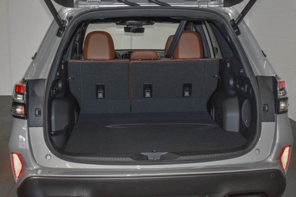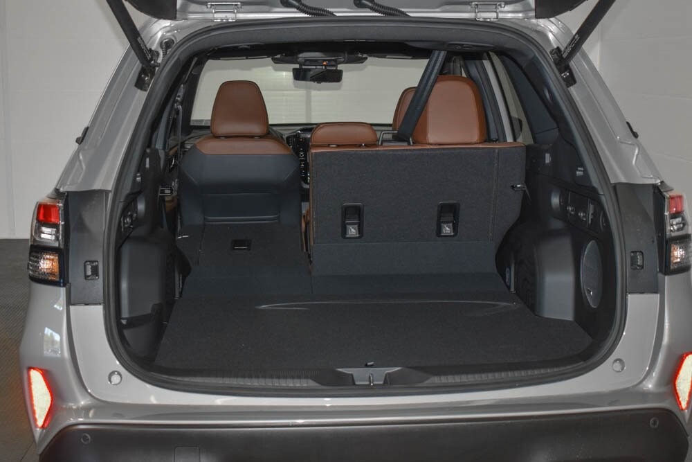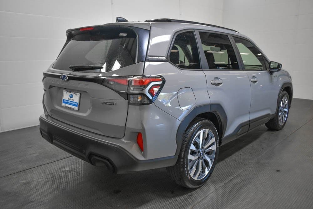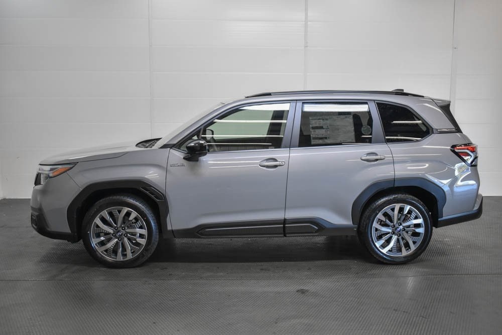 This Forester Hybrid is well equipped with Standard Model, 11 Speakers, 4-Wheel Disc Brakes, ABS brakes, Air Conditioning, Alloy wheels, AM/FM radio: SiriusXM with 360L, Anti-whiplash front head restraints, Auto High-beam Headlights, Auto-Dimming Exterior Mirror with Approach Light, Automatic temperature control, Brake assist, Bumpers: body-color, Cargo Net, Compass, Driver door bin, Driver vanity mirror, Dual front impact airbags, Dual front side impact airbags, Electronic Stability Control, Emergency communication system: MySubaru Safety (3-year free trial), Exterior Parking Camera Rear, Footwell Illumination Kit, Four wheel independent suspension, Front anti-roll bar, Front Bucket Seats, Front Center Armrest, Front dual zone A/C, Front fog lights, Front reading lights, Fully automatic headlights, harman/kardon® Speakers, Heated and Ventilated Front Bucket Seats, Heated door mirrors, Heated front seats, Heated rear seats, Heated steering wheel, HVAC memory, Illuminated entry, Knee airbag, LED Upgrade, Low tire pressure warning, Memory seat, Navigation system: TomTom Navigation w/what3words, Occupant sensing airbag, Outside temperature display, Overhead airbag, Overhead console, Panic alarm, Passenger door bin, Passenger vanity mirror, Perforated Leather-Trimmed Upholstery, Power door mirrors, Power driver seat, Power Liftgate, Power moonroof: Panoramic, Power passenger seat, Power steering, Power windows, Radio data system, Radio: Subaru 11.6" Multimedia Navigation System, Rear anti-roll bar, Rear seat center armrest, Rear window defroster, Rear window wiper, Remote keyless entry, Security system, Speed control, Speed-sensing steering, Splash Guards, Split folding rear seat, Spoiler, Steering wheel mounted audio controls, Tachometer, Telescoping steering wheel, Tilt steering wheel, Traction control, Trip computer, Turn signal indicator mirrors, USB Charging Cable Set, Utility Hook (2-Pack), Variably intermittent wipers, Ventilated front seats, and Wheels: 19" x 7.5 J Dark Gray Aluminum-Alloy.