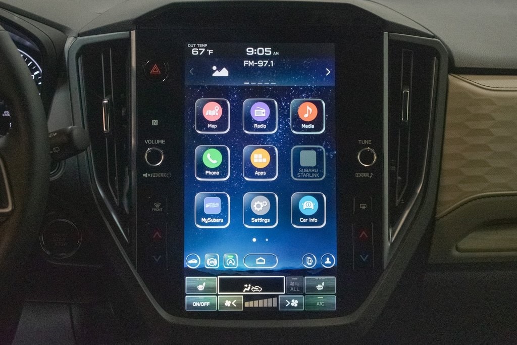 This Forester is well equipped with 4-Wheel Disc Brakes, 6 Speakers, ABS brakes, Air Conditioning, Alloy wheels, AM/FM radio: SiriusXM with 360L, Anti-whiplash front head restraints, Auto High-beam Headlights, Automatic temperature control, Brake assist, Bumpers: body-color, Driver door bin, Driver vanity mirror, Dual front impact airbags, Dual front side impact airbags, Electronic Stability Control, Exterior Parking Camera Rear, Four wheel independent suspension, Front anti-roll bar, Front Bucket Seats, Front Center Armrest, Front dual zone A/C, Front fog lights, Front reading lights, Fully automatic headlights, Heated door mirrors, Heated Front Bucket Seats, Heated front seats, Heated steering wheel, Illuminated entry, Knee airbag, Leather steering wheel, Low tire pressure warning, Occupant sensing airbag, Outside temperature display, Overhead airbag, Overhead console, Panic alarm, Passenger door bin, Passenger vanity mirror, Perforated Leather-Trimmed Upholstery, Power door mirrors, Power driver seat, Power Liftgate, Power moonroof: Panoramic, Power passenger seat, Power steering, Power windows, Radio data system, Rear anti-roll bar, Rear seat center armrest, Rear window defroster, Rear window wiper, Remote keyless entry, Security system, Speed control, Speed-sensing steering, Split folding rear seat, Spoiler, Steering wheel mounted audio controls, Tachometer, Telescoping steering wheel, Tilt steering wheel, Traction control, Trip computer, Turn signal indicator mirrors, Variably intermittent wipers, and Wheels: 18" x 7.0 J Dark Metallic Aluminum-Alloy.