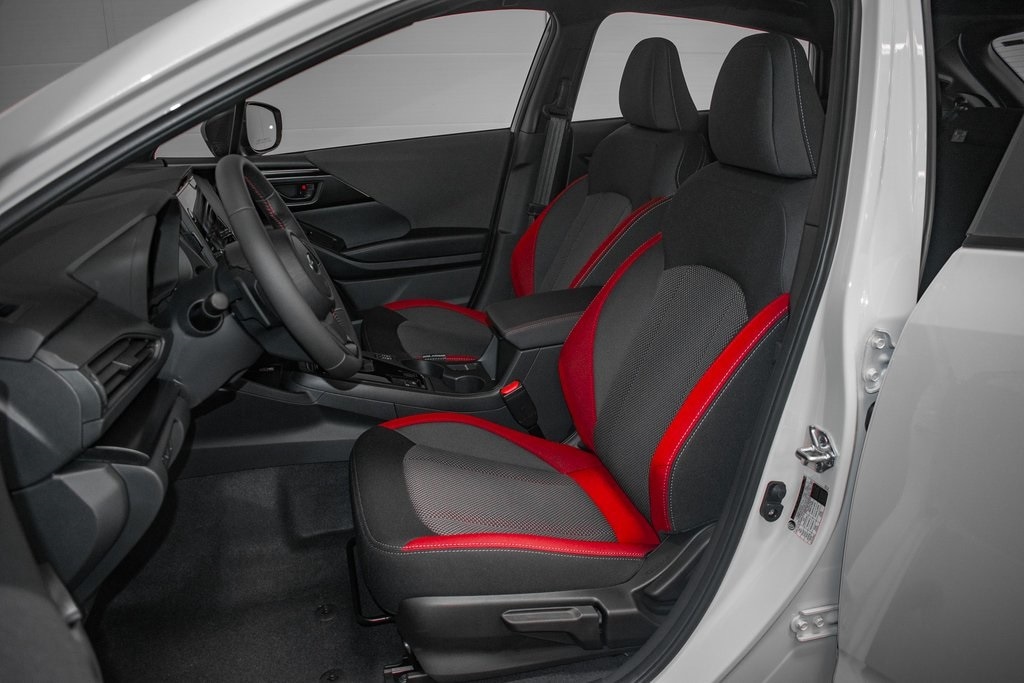 This Impreza is well equipped with 4-Wheel Disc Brakes, 6 Speakers, ABS brakes, Air Conditioning, Alloy wheels, AM/FM radio: SiriusXM with 360L, Anti-whiplash front head restraints, Auto High-beam Headlights, Automatic temperature control, Brake assist, Bumpers: body-color, Driver door bin, Driver vanity mirror, Dual front impact airbags, Dual front side impact airbags, Electronic Stability Control, Emergency communication system, Exterior Parking Camera Rear, Four wheel independent suspension, Front anti-roll bar, Front Bucket Seats, Front Center Armrest, Front dual zone A/C, Front fog lights, Front reading lights, Fully automatic headlights, Heated door mirrors, Heated Front Bucket Seats, Heated front seats, Illuminated entry, Knee airbag, Leather Shift Knob, Low tire pressure warning, Occupant sensing airbag, Outside temperature display, Overhead airbag, Overhead console, Panic alarm, Passenger door bin, Passenger vanity mirror, Power door mirrors, Power steering, Power windows, Radio data system, Radio: Subaru 11.6" Multimedia Plus System, Rear anti-roll bar, Rear seat center armrest, Rear window defroster, Rear window wiper, Remote keyless entry, RS Cloth Upholstery, Security system, Speed control, Speed-sensing steering, Split folding rear seat, Spoiler, Steering wheel mounted audio controls, Tachometer, Telescoping steering wheel, Tilt steering wheel, Traction control, Trip computer, Turn signal indicator mirrors, Variably intermittent wipers, and Wheels: 18" x 7.0" J Dark Gray Aluminum-Alloy.