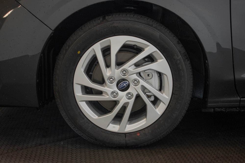 This Impreza is well equipped with 4 Speakers, 4-Wheel Disc Brakes, ABS brakes, Air Conditioning, AM/FM radio: SiriusXM, Anti-whiplash front head restraints, Auto High-beam Headlights, Automatic temperature control, Brake assist, Bumpers: body-color, Cloth Upholstery, Driver door bin, Driver vanity mirror, Dual front impact airbags, Dual front side impact airbags, Electronic Stability Control, Exterior Parking Camera Rear, Four wheel independent suspension, Front anti-roll bar, Front Bucket Seats, Front Center Armrest, Front dual zone A/C, Front reading lights, Fully automatic headlights, Illuminated entry, Knee airbag, Low tire pressure warning, Occupant sensing airbag, Outside temperature display, Overhead airbag, Overhead console, Panic alarm, Passenger door bin, Passenger vanity mirror, Power door mirrors, Power steering, Power windows, Radio data system, Rear window defroster, Rear window wiper, Remote keyless entry, Security system, Speed control, Speed-sensing steering, Split folding rear seat, Spoiler, Steering wheel mounted audio controls, Tachometer, Telescoping steering wheel, Tilt steering wheel, Traction control, Trip computer, Variably intermittent wipers, and Wheels: 16" x 6.0" 1/2J Steel w/Full Cap.
