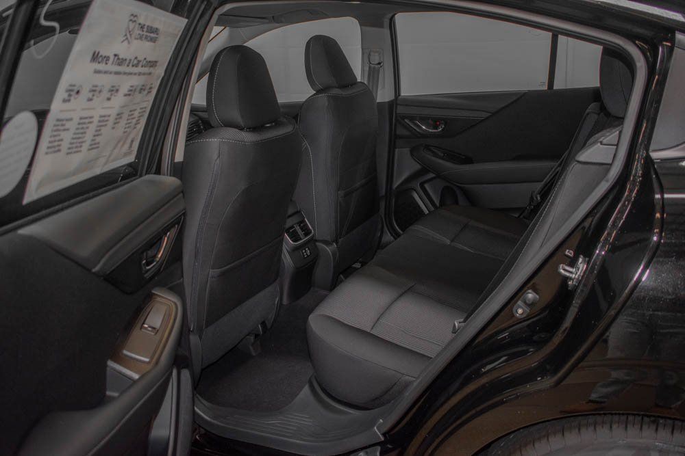 This Legacy is well equipped with BSD w/RCTA & Keyless Access & LED Fog Lights (Blind Spot Detection w/Rear Cross-Traffic Alert, Keyless Access w/Push Button Start, and LED Fog Lights), 4-Wheel Disc Brakes, 6 Speakers, ABS brakes, Air Conditioning, Alloy wheels, AM/FM radio: SiriusXM with 360L, Anti-whiplash front head restraints, Apple CarPlay & Android Auto, Auto High-beam Headlights, Auto-Dimming Mirror w/Compass & HomeLink, Automatic temperature control, Brake assist, Bumpers: body-color, Cargo Net, Cloth Upholstery, Driver door bin, Driver vanity mirror, Dual front impact airbags, Dual front side impact airbags, Electronic Stability Control, Emergency communication system: MySubaru Safety Plus (3-year free trial included), Exterior Auto-Dimming Mirror w/Approach Light, Exterior Parking Camera Rear, Four wheel independent suspension, Front anti-roll bar, Front Bucket Seats, Front Center Armrest w/Storage, Front dual zone A/C, Front reading lights, Fully automatic headlights, Heated door mirrors, Heated Front Bucket Seats, Heated front seats, Illuminated entry, Knee airbag, Leather steering wheel, LED Upgrade, Low tire pressure warning, Occupant sensing airbag, Outside temperature display, Overhead airbag, Overhead console, Panic alarm, Passenger door bin, Passenger vanity mirror, Power door mirrors, Power driver seat, Power steering, Power windows, Radio: Subaru 11.6" Multimedia Plus System, Rear anti-roll bar, Rear Bumper Applique, Rear seat center armrest, Rear window defroster, Remote keyless entry, Security system, Speed control, Speed-sensing steering, Split folding rear seat, Steering wheel mounted audio controls, Tachometer, Telescoping steering wheel, Tilt steering wheel, Traction control, Trip computer, Trunk Hook Bulk, Turn signal indicator mirrors, USB Charging Cable Set, Variably intermittent wipers, and Wheels: 17" x 7.5J Blk Mach Finish Aluminum-Alloy.