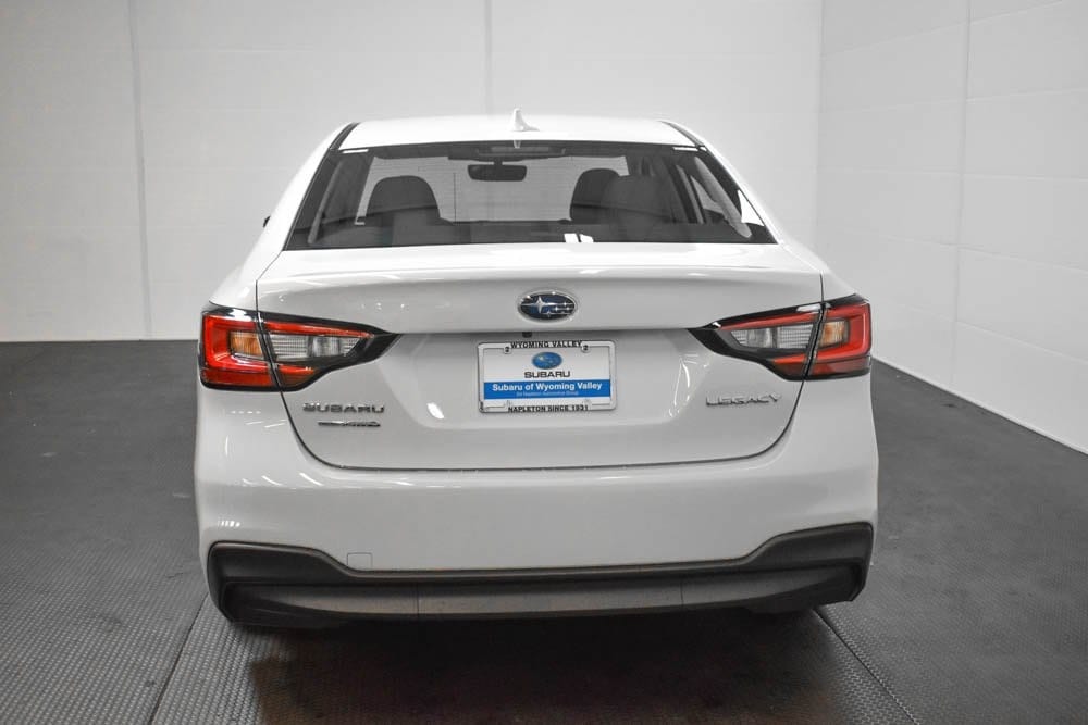 This Legacy is well equipped with 4-Wheel Disc Brakes, 6 Speakers, ABS brakes, Air Conditioning, Alloy wheels, AM/FM radio: SiriusXM with 360L, Anti-whiplash front head restraints, Auto High-beam Headlights, Automatic temperature control, Brake assist, Bumpers: body-color, Cloth Upholstery, Driver door bin, Driver vanity mirror, Dual front impact airbags, Dual front side impact airbags, Electronic Stability Control, Emergency communication system: STARLINK Safety Plus (3-year free trial), Exterior Parking Camera Rear, Four wheel independent suspension, Front anti-roll bar, Front Bucket Seats, Front Center Armrest w/Storage, Front dual zone A/C, Front reading lights, Fully automatic headlights, Heated door mirrors, Heated Front Bucket Seats, Heated front seats, Illuminated entry, Knee airbag, Leather steering wheel, Low tire pressure warning, Occupant sensing airbag, Outside temperature display, Overhead airbag, Overhead console, Panic alarm, Passenger door bin, Passenger vanity mirror, Power door mirrors, Power driver seat, Power steering, Power windows, Radio: Subaru STARLINK 11.6" Multimedia Plus Sys, Rear anti-roll bar, Rear seat center armrest, Rear window defroster, Remote keyless entry, Security system, Speed control, Speed-sensing steering, Split folding rear seat, Steering wheel mounted audio controls, Tachometer, Telescoping steering wheel, Tilt steering wheel, Traction control, Trip computer, Turn signal indicator mirrors, Variably intermittent wipers, and Wheels: 17" x 7.5J Blk Mach Finish Aluminum-Alloy.