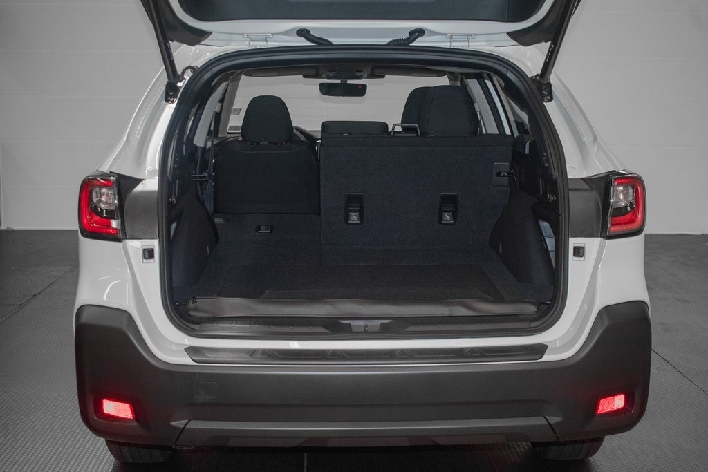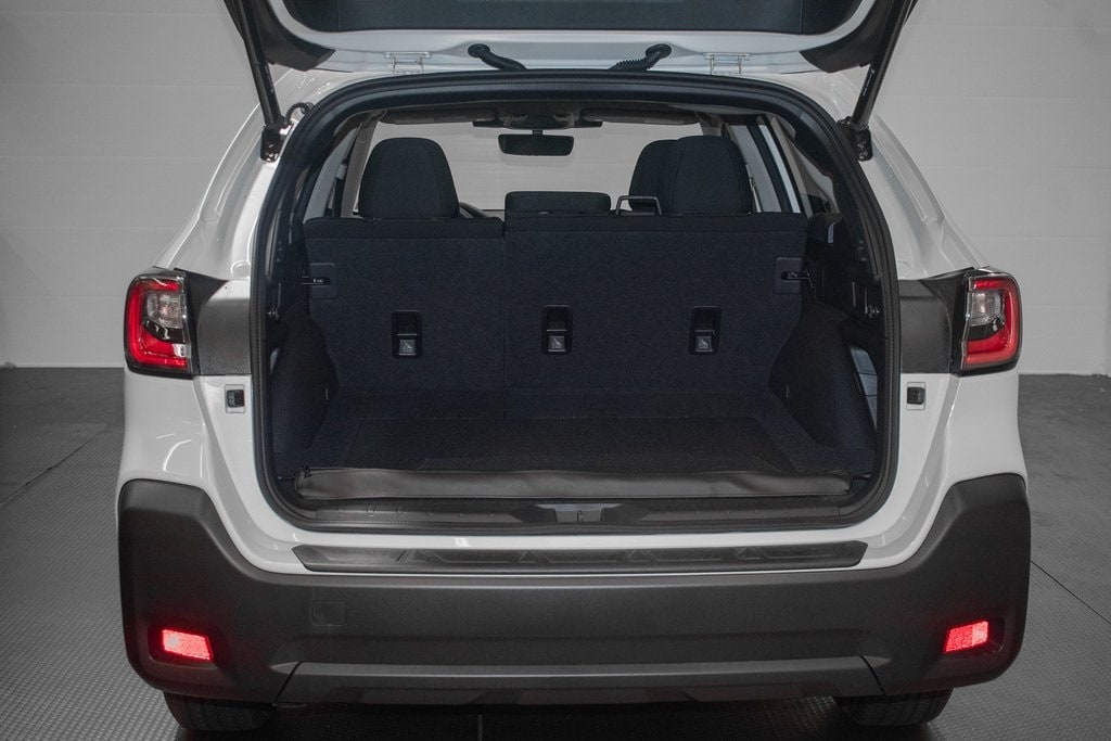 This Outback is well equipped with BSD w/RCTA & Keyless Access & Push Button Start (Blind Spot Detection (BSD), Hands-Free Power Rear Gate, Keyless Access w/Push Button Start, and Rear Cross Traffic Alert (RCTA)), 4-Wheel Disc Brakes, 6 Speakers, ABS brakes, Air Conditioning, Alloy wheels, AM/FM radio: SiriusXM with 360L, Apple CarPlay & Android Auto, Auto High-beam Headlights, Auto-Dimming Exterior Mirror w/Approach Light, Auto-Dimming Mirror w/Compass & HomeLink, Automatic temperature control, Brake assist, Bumpers: body-color, Cargo Net, Cloth Upholstery, Driver door bin, Driver vanity mirror, Dual front impact airbags, Dual front side impact airbags, Electronic Stability Control, Emergency communication system: MySubaru Safety (3-year free trial), Exterior Parking Camera Rear, Four wheel independent suspension, Front anti-roll bar, Front Bucket Seats, Front Center Armrest w/Storage, Front dual zone A/C, Front fog lights, Front reading lights, Fully automatic headlights, Heated door mirrors, Heated Front Bucket Seats, Heated front seats, Illuminated entry, Knee airbag, Leather Shift Knob, Leather steering wheel, LED Upgrade, Low tire pressure warning, Occupant sensing airbag, Outside temperature display, Overhead airbag, Overhead console, Panic alarm, Passenger door bin, Passenger vanity mirror, Power door mirrors, Power driver seat, Power steering, Power windows, Radio: Subaru 11.6" Multimedia Plus System, Rear anti-roll bar, Rear Bumper Cover, Rear seat center armrest, Rear window defroster, Rear window wiper, Remote keyless entry, Roof rack, Security system, Speed control, Speed-sensing steering, Split folding rear seat, Spoiler, Steering wheel mounted audio controls, Tachometer, Telescoping steering wheel, Tilt steering wheel, Traction control, Trip computer, Turn signal indicator mirrors, Variably intermittent wipers, and Wheels: 17" x 7J Black Aluminum-Alloy.