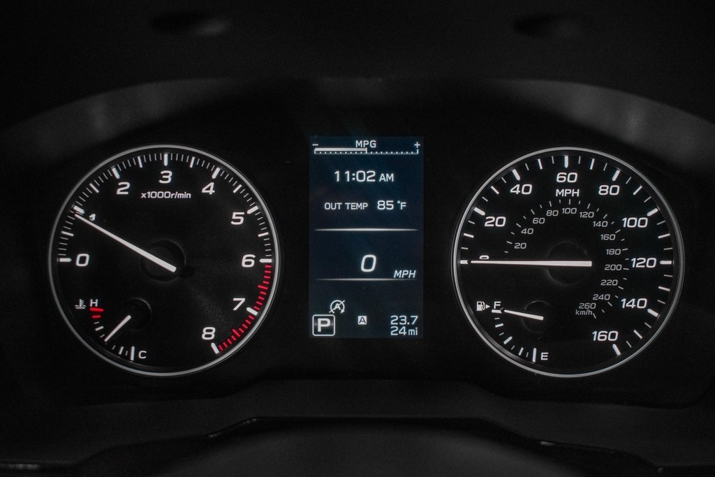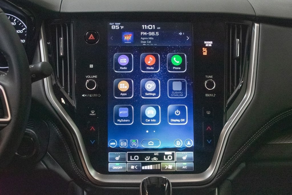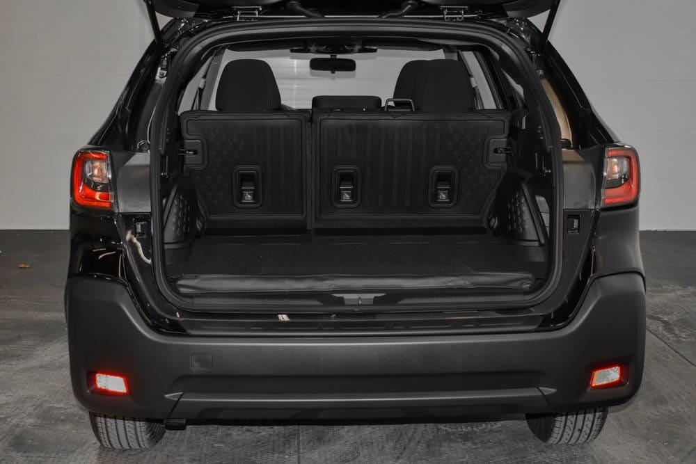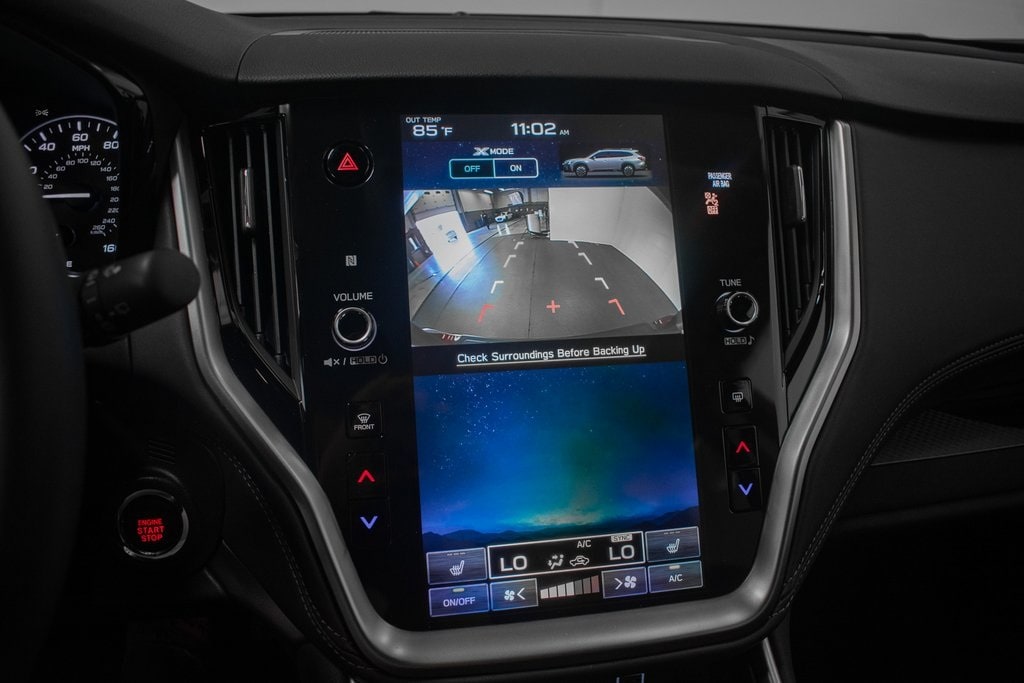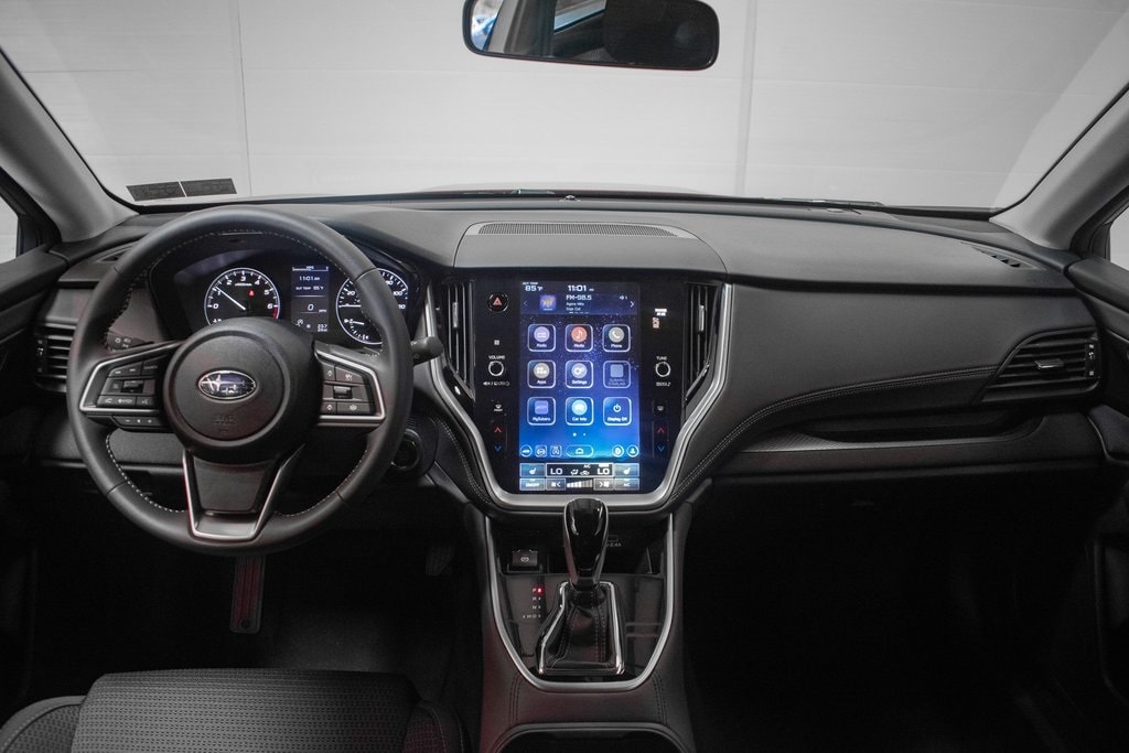 This Outback is well equipped with 4-Wheel Disc Brakes, 6 Speakers, ABS brakes, Air Conditioning, Alloy wheels, AM/FM radio: SiriusXM with 360L, Apple CarPlay & Android Auto, Auto High-beam Headlights, Automatic temperature control, Brake assist, Bumpers: body-color, Cloth Upholstery, Driver door bin, Driver vanity mirror, Dual front impact airbags, Dual front side impact airbags, Electronic Stability Control, Emergency communication system: MySubaru Safety (3-year free trial), Exterior Parking Camera Rear, Four wheel independent suspension, Front anti-roll bar, Front Bucket Seats, Front Center Armrest w/Storage, Front dual zone A/C, Front fog lights, Front reading lights, Fully automatic headlights, Heated door mirrors, Heated Front Bucket Seats, Heated front seats, Illuminated entry, Knee airbag, Leather Shift Knob, Leather steering wheel, Low tire pressure warning, Occupant sensing airbag, Outside temperature display, Overhead airbag, Overhead console, Panic alarm, Passenger door bin, Passenger vanity mirror, Power door mirrors, Power driver seat, Power steering, Power windows, Radio: Subaru 11.6" Multimedia Plus System, Rear anti-roll bar, Rear seat center armrest, Rear window defroster, Rear window wiper, Remote keyless entry, Roof rack, Security system, Speed control, Speed-sensing steering, Split folding rear seat, Spoiler, Steering wheel mounted audio controls, Tachometer, Telescoping steering wheel, Tilt steering wheel, Traction control, Trip computer, Turn signal indicator mirrors, Variably intermittent wipers, and Wheels: 17" x 7J Black Aluminum-Alloy.