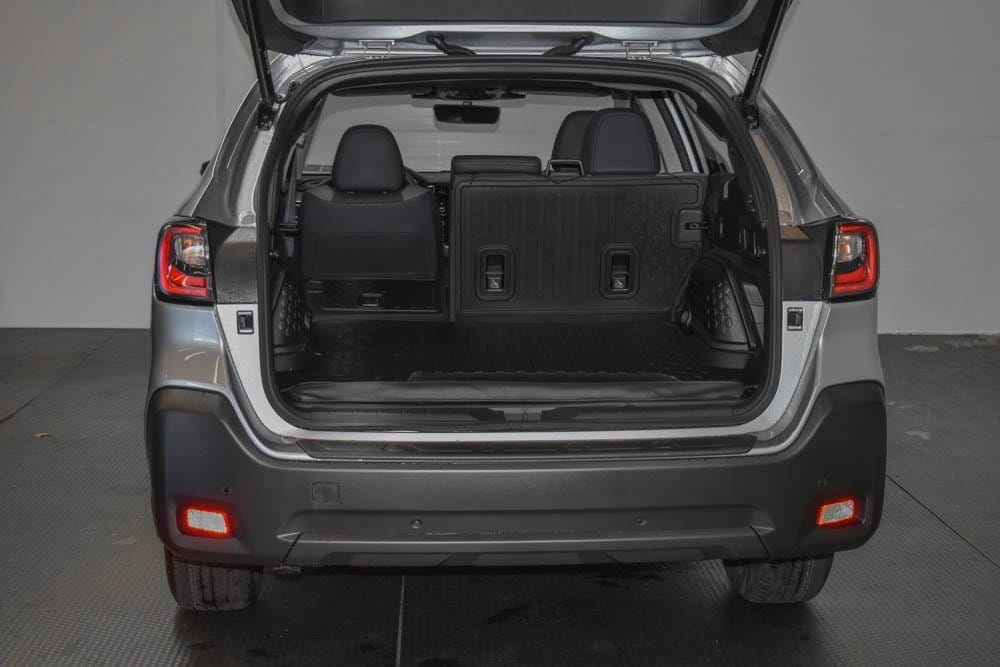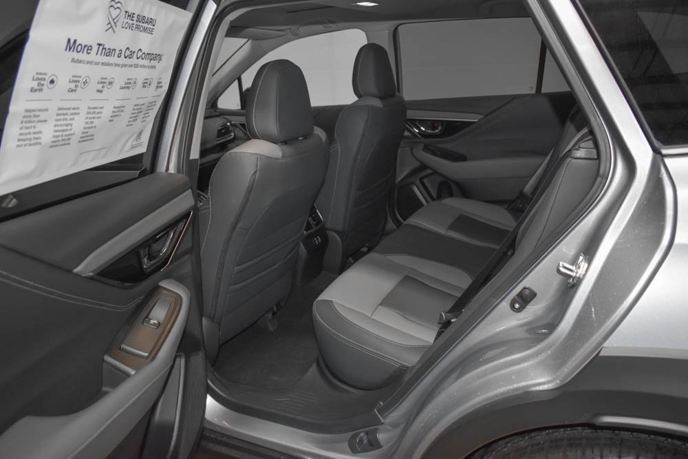 This Outback is well equipped with 12 Speakers, 4-Wheel Disc Brakes, ABS brakes, Air Conditioning, Alloy wheels, AM/FM radio: SiriusXM with 360L, Auto High-beam Headlights, Auto-dimming Rear-View mirror, Automatic temperature control, Brake assist, Bumpers: body-color, Compass, Driver door bin, Driver vanity mirror, Dual front impact airbags, Dual front side impact airbags, Electronic Stability Control, Exterior Parking Camera Rear, Four wheel independent suspension, Front anti-roll bar, Front Bucket Seats, Front Center Armrest w/Storage, Front dual zone A/C, Front fog lights, Front reading lights, Fully automatic headlights, Garage door transmitter: HomeLink, harman/kardon® Speakers, Heated door mirrors, Heated Front Bucket Seats, Heated front seats, Heated steering wheel, Illuminated entry, Knee airbag, Leather Shift Knob, Leather steering wheel, Low tire pressure warning, Occupant sensing airbag, Outside temperature display, Overhead airbag, Overhead console, Panic alarm, Passenger door bin, Passenger vanity mirror, Power door mirrors, Power driver seat, Power Liftgate, Power moonroof, Power steering, Power windows, Rear anti-roll bar, Rear seat center armrest, Rear window defroster, Rear window wiper, Remote keyless entry, Roof rack, Security system, Speed control, Speed-sensing steering, Split folding rear seat, Spoiler, StarTex-Trimmed Upholstery, Steering wheel mounted audio controls, Tachometer, Telescoping steering wheel, Tilt steering wheel, Traction control, Trip computer, Turn signal indicator mirrors, Variably intermittent wipers, and Wheels: 18" x 7J Black Aluminum-Alloy.
