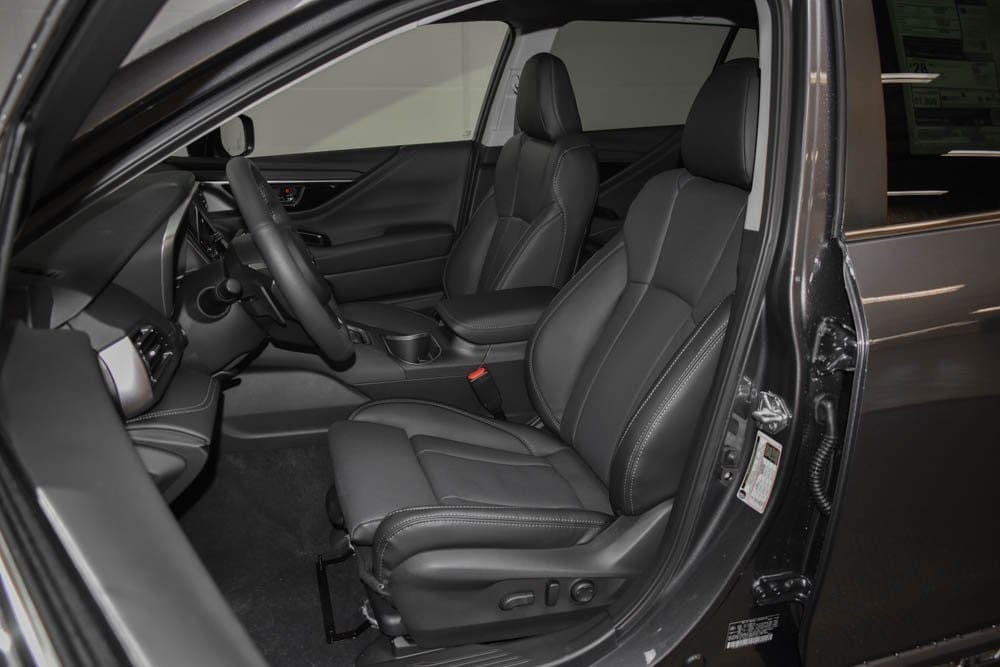 This Outback is well equipped with 12 Speakers, 4-Wheel Disc Brakes, ABS brakes, Air Conditioning, Alloy wheels, AM/FM radio: SiriusXM with 360L, Auto High-beam Headlights, Auto-dimming Rear-View mirror, Automatic temperature control, Brake assist, Bumpers: body-color, Compass, Driver door bin, Driver vanity mirror, Dual front impact airbags, Dual front side impact airbags, Electronic Stability Control, Exterior Parking Camera Rear, Four wheel independent suspension, Front anti-roll bar, Front Bucket Seats, Front Center Armrest w/Storage, Front dual zone A/C, Front fog lights, Front reading lights, Fully automatic headlights, Garage door transmitter: HomeLink, harman/kardon® Speakers, Heated door mirrors, Heated Front Bucket Seats, Heated front seats, Heated rear seats, Heated steering wheel, HVAC memory, Illuminated entry, Knee airbag, Leather Shift Knob, Leather steering wheel, Low tire pressure warning, Memory seat, Navigation system: TomTom Navigation w/what3words, Occupant sensing airbag, Outside temperature display, Overhead airbag, Overhead console, Panic alarm, Passenger door bin, Passenger vanity mirror, Perforated Leather-Trimmed Upholstery, Power door mirrors, Power driver seat, Power Liftgate, Power moonroof, Power passenger seat, Power steering, Power windows, Rear anti-roll bar, Rear seat center armrest, Rear window defroster, Rear window wiper, Remote keyless entry, Roof rack, Security system, Speed control, Speed-sensing steering, Split folding rear seat, Spoiler, Steering wheel mounted audio controls, Tachometer, Telescoping steering wheel, Tilt steering wheel, Traction control, Trip computer, Turn signal indicator mirrors, Variably intermittent wipers, and Wheels: 18" x 7J Black Aluminum-Alloy.