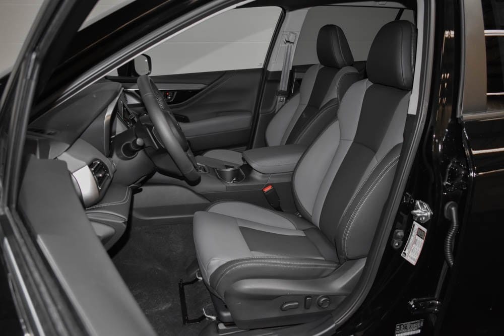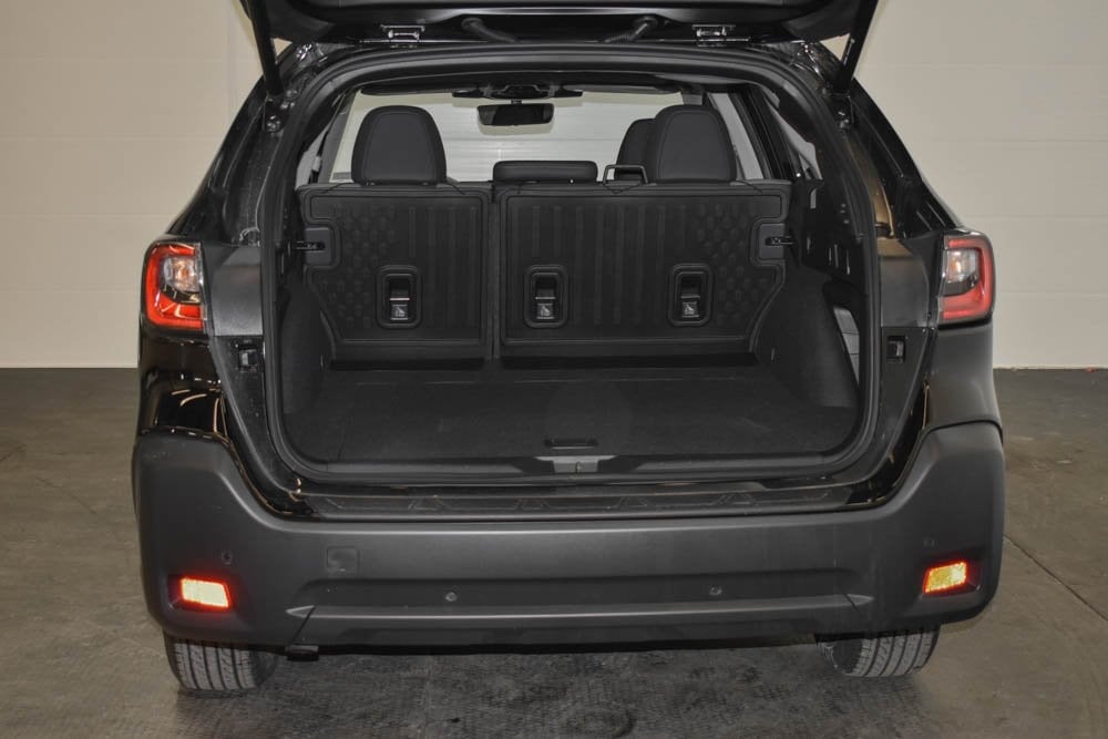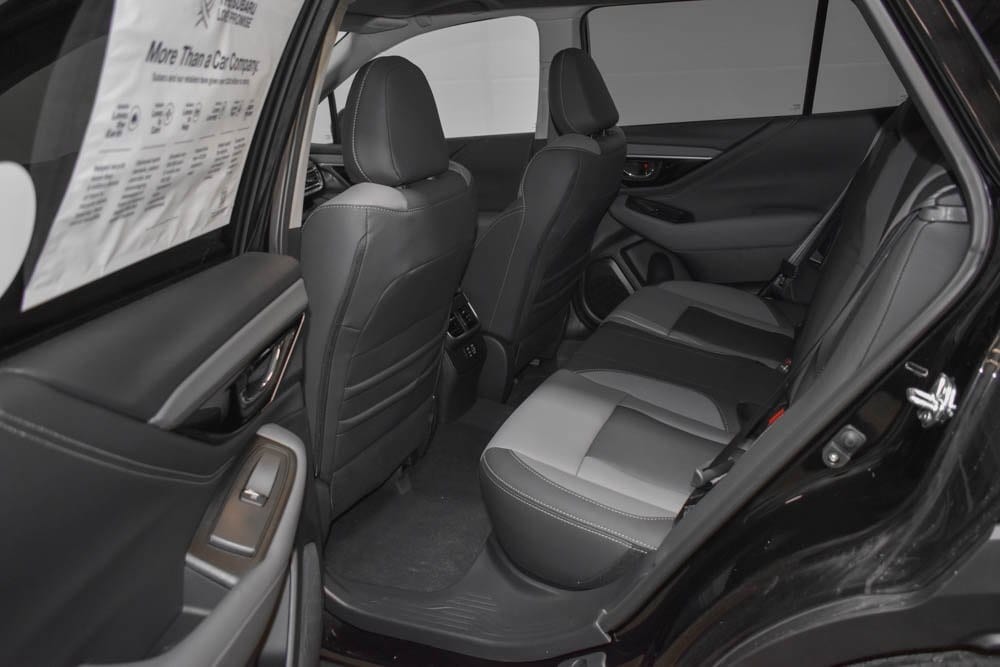 This Outback is well equipped with Standard Model, Tech Package 2 (Auto-Dimming Exterior Mirror w/Approach Light, LED Upgrade, Wireless Charger, and Woodgrain Interior Trim Kit), 12 Speakers, 4-Wheel Disc Brakes, ABS brakes, Air Conditioning, Alloy wheels, AM/FM radio: SiriusXM with 360L, Apple CarPlay & Android Auto, Auto High-beam Headlights, Auto-dimming Rear-View mirror, Automatic temperature control, Brake assist, Bumpers: body-color, Compass, Driver door bin, Driver vanity mirror, Dual front impact airbags, Dual front side impact airbags, Electronic Stability Control, Emergency communication system: MySubaru Safety (3-year free trial), Exterior Parking Camera Rear, Four wheel independent suspension, Front anti-roll bar, Front Bucket Seats, Front Center Armrest w/Storage, Front dual zone A/C, Front fog lights, Front reading lights, Fully automatic headlights, Garage door transmitter: HomeLink, harman/kardon® Speakers, Heated door mirrors, Heated Front Bucket Seats, Heated front seats, Heated steering wheel, Illuminated entry, Knee airbag, Leather Shift Knob, Leather steering wheel, Low tire pressure warning, Occupant sensing airbag, Outside temperature display, Overhead airbag, Overhead console, Panic alarm, Passenger door bin, Passenger vanity mirror, Power door mirrors, Power driver seat, Power Liftgate, Power moonroof, Power steering, Power windows, Radio: Subaru 11.6" Multimedia Plus System, Rear anti-roll bar, Rear seat center armrest, Rear window defroster, Rear window wiper, Remote keyless entry, Roof rack, Security system, Speed control, Speed-sensing steering, Split folding rear seat, Spoiler, StarTex-Trimmed Upholstery, Steering wheel mounted audio controls, Tachometer, Telescoping steering wheel, Tilt steering wheel, Traction control, Trip computer, Turn signal indicator mirrors, Variably intermittent wipers, and Wheels: 18" x 7J Black Aluminum-Alloy.