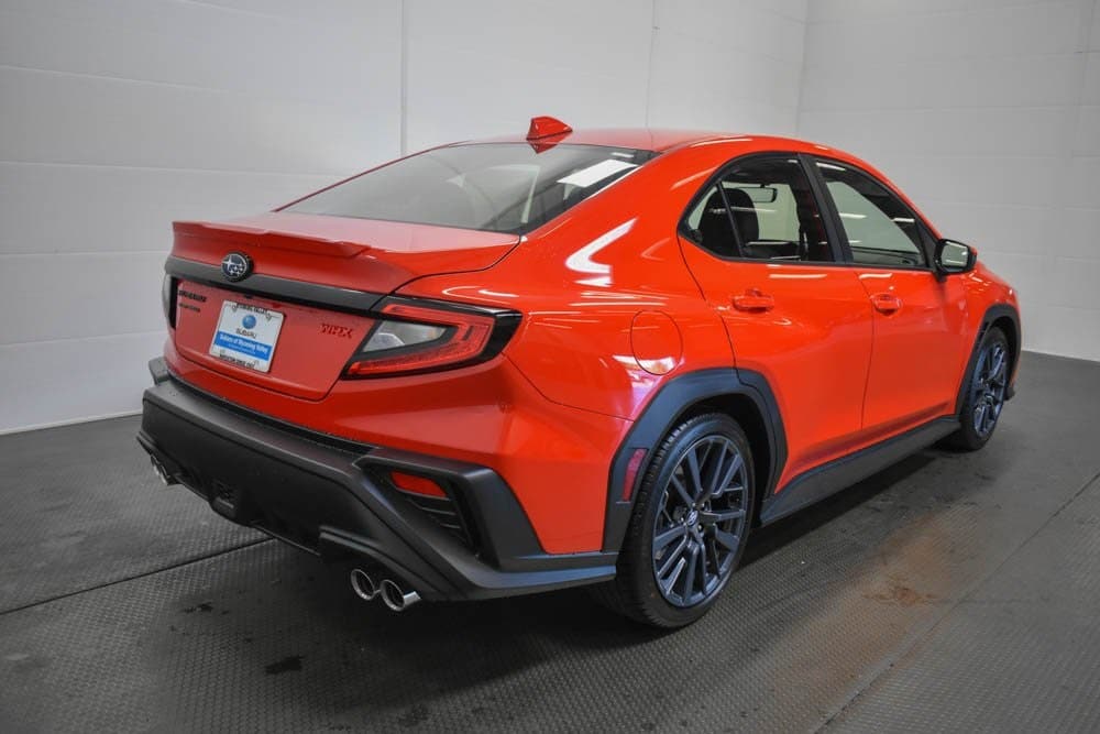 This WRX is well equipped with harman kardon & Moonroof (harman/kardon Speaker System and Power Tilt Up Moonroof), 4-Wheel Disc Brakes, 6 Speakers, ABS brakes, Air Conditioning, Alloy wheels, AM/FM radio: SiriusXM, Auto High-beam Headlights, Auto-Dimming Exterior Mirror w/Approach Light, Auto-Dimming Mirror w/Compass & HomeLink, Automatic temperature control, Brake assist, Bumpers: body-color, Driver door bin, Driver vanity mirror, Dual front impact airbags, Dual front side impact airbags, Electronic Stability Control, Exterior Parking Camera Rear, Four wheel independent suspension, Front anti-roll bar, Front Bucket Seats, Front Center Armrest, Front dual zone A/C, Front fog lights, Front reading lights, Fully automatic headlights, Heated door mirrors, Heated front seats, Illuminated entry, Knee airbag, Leather Shift Knob, Leather steering wheel, LED Upgrade, Low tire pressure warning, Occupant sensing airbag, Outside temperature display, Overhead airbag, Overhead console, Panic alarm, Passenger door bin, Passenger vanity mirror, Performance Design Heated Front Bucket Seats, Power door mirrors, Power steering, Power windows, Premium Cloth Upholstery w/Red Stitching, Radio data system, Rear anti-roll bar, Rear seat center armrest, Rear window defroster, Remote keyless entry, Security system, Speed control, Speed-sensing steering, Split folding rear seat, Spoiler, Sport steering wheel, Steering wheel mounted audio controls, Tachometer, Telescoping steering wheel, Tilt steering wheel, Traction control, Trip computer, USB Charging Cable Set, Variably intermittent wipers, and Wheels: 18" x 8.5" Dark Gray Finish Alum Alloy.