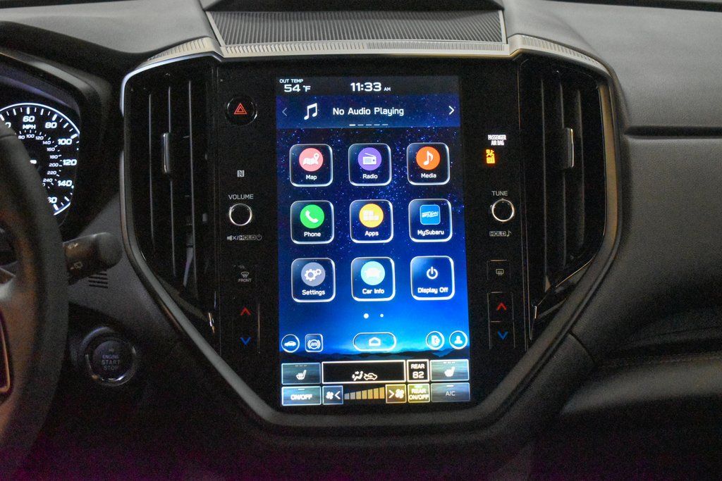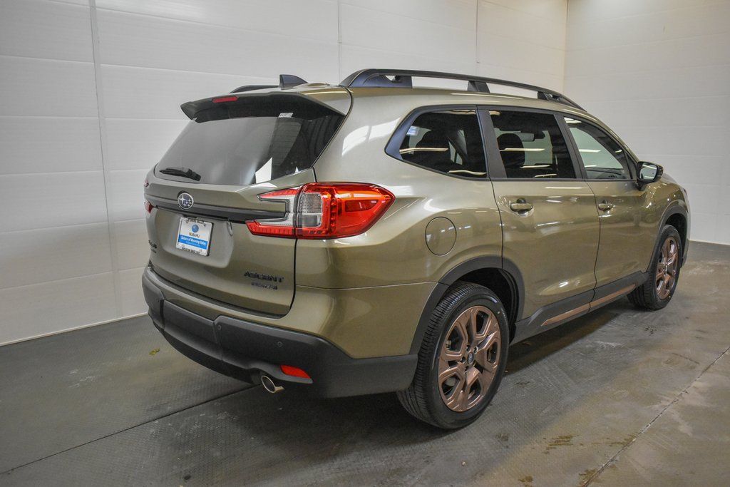 This Ascent is well equipped with Standard Model, 14 Speakers, 3rd row seats: bench, 4-Wheel Disc Brakes, ABS brakes, Air Conditioning, Alloy wheels, AM/FM radio: SiriusXM with 360L, Apple CarPlay & Android Auto, Auto High-beam Headlights, Auto-Dimming Exterior Mirror with Approach Light, Auto-dimming Rear-View mirror, Automatic temperature control, Brake assist, Bumpers: body-color, Compass, Delay-off headlights, Driver door bin, Driver vanity mirror, Dual front impact airbags, Dual front side impact airbags, Electronic Stability Control, Emergency communication system: MySubaru Companion (5-years free), Exterior Parking Camera Rear, Four wheel independent suspension, Front anti-roll bar, Front Bucket Seats, Front Center Armrest, Front dual zone A/C, Front fog lights, Front reading lights, Fully automatic headlights, Garage door transmitter: HomeLink, harman/kardon® Speakers, Heated door mirrors, Heated Front Bucket Seats, Heated front seats, Heated rear seats, Heated steering wheel, HVAC memory, Illuminated entry, Knee airbag, Leather Shift Knob, Leather steering wheel, LED Cargo Area Lighting, LED Upgrade, Low tire pressure warning, Memory seat, Navigation system: MySubaru Navigator (1-year trial), Occupant sensing airbag, Outside temperature display, Overhead airbag, Overhead console, Panic alarm, Passenger door bin, Passenger vanity mirror, Power door mirrors, Power driver seat, Power Liftgate, Power moonroof, Power passenger seat, Power steering, Power windows, Radio data system, Radio: Subaru 11.6" Multimedia System with Navigation, Rear air conditioning, Rear anti-roll bar, Rear reading lights, Rear window defroster, Rear window wiper, Reclining 3rd row seat, Remote keyless entry, Security system, Speed control, Speed-sensing steering, Split folding rear seat, Spoiler, StarTex-Trimmed Upholstery, Steering wheel mounted audio controls, Tachometer, Telescoping steering wheel, Tilt steering wheel, Traction control, Trip computer, Turn signal indicator mirrors, Variably intermittent wipers, and Wheels: 20" x 7.5 J Bronze Metallic Finish Alloy.