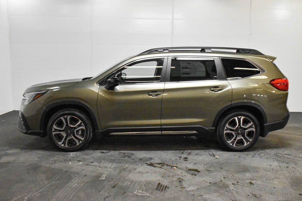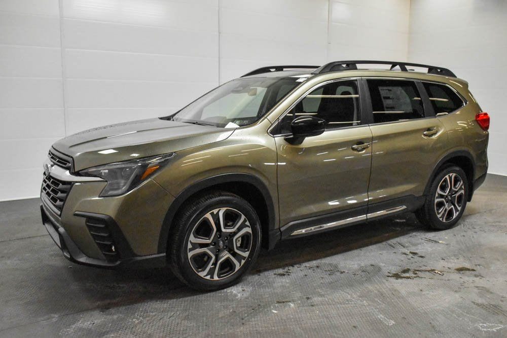 This Ascent is well equipped with Standard Model, 14 Speakers, 3rd row seats: bench, 4-Wheel Disc Brakes, ABS brakes, Air Conditioning, Alloy wheels, AM/FM radio: SiriusXM with 360L, Apple CarPlay & Android Auto, Auto High-beam Headlights, Auto-Dimming Exterior Mirror with Approach Light, Auto-dimming Rear-View mirror, Automatic temperature control, Brake assist, Bumpers: body-color, Cargo Net, Compass, Delay-off headlights, Driver door bin, Driver vanity mirror, Dual front impact airbags, Dual front side impact airbags, Electronic Stability Control, Emergency communication system: MySubaru Companion (5-years free), Exterior Parking Camera Rear, Four wheel independent suspension, Front anti-roll bar, Front Bucket Seats, Front Center Armrest, Front dual zone A/C, Front fog lights, Front reading lights, Fully automatic headlights, Garage door transmitter: HomeLink, harman/kardon® Speakers, Heated door mirrors, Heated Front Bucket Seats, Heated front seats, Heated rear seats, Heated steering wheel, Illuminated entry, Knee airbag, Leather Shift Knob, Leather steering wheel, LED Cargo Area Lighting, LED Upgrade, Low tire pressure warning, Memory seat, Navigation system: MySubaru Navigator (1-year trial), Occupant sensing airbag, Outside temperature display, Overhead airbag, Overhead console, Panic alarm, Passenger door bin, Passenger vanity mirror, Perforated Leather-Trimmed Upholstery, Power door mirrors, Power driver seat, Power Liftgate, Power moonroof, Power passenger seat, Power steering, Power windows, Radio data system, Radio: Subaru 11.6" Multimedia System with Navigation, Rear air conditioning, Rear anti-roll bar, Rear reading lights, Rear window defroster, Rear window wiper, Reclining 3rd row seat, Remote keyless entry, Security system, Speed control, Speed-sensing steering, Splash Guards, Split folding rear seat, Spoiler, Steering wheel mounted audio controls, Tachometer, Telescoping steering wheel, Tilt steering wheel, Traction control, Trip computer, Turn signal indicator mirrors, USB Charging Cable Set, Variably intermittent wipers, and Wheels: 20" x 7.5 J Dark Gray Alloy with Machine Finish.