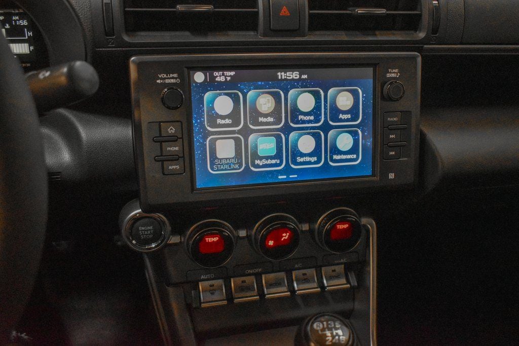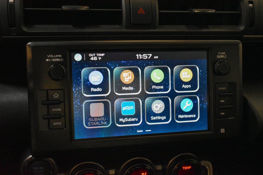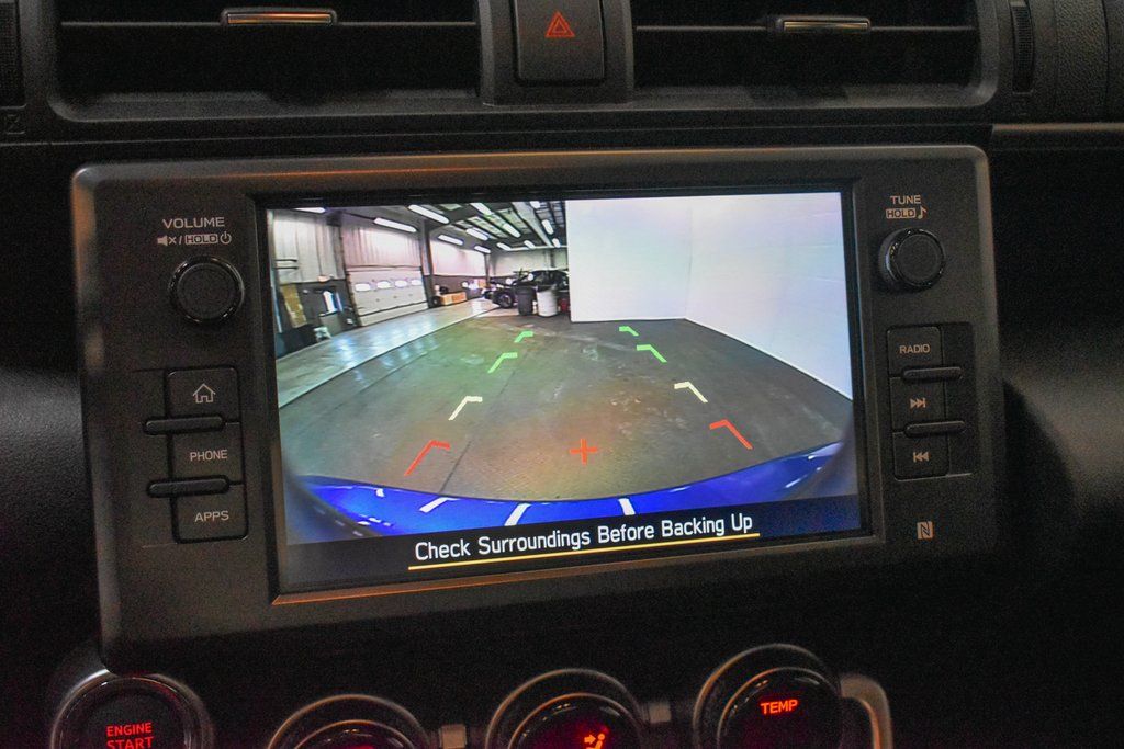This BRZ is well equipped with ABS brakes, Active Cruise Control, Alloy wheels, Electronic Stability Control, Emergency communication system, Front dual zone A/C, Heated door mirrors, Heated front seats, Illuminated entry, Low tire pressure warning, Navigation System, Remote keyless entry, Traction control, 4-Wheel Disc Brakes, 8 Speakers, Air Conditioning, AM/FM radio: SiriusXM, Anti-whiplash front head restraints, Auto High-beam Headlights, Automatic temperature control, Brake assist, Bumpers: body-color, Delay-off headlights, Driver door bin, Driver vanity mirror, Dual front impact airbags, Dual front side impact airbags, Exterior Parking Camera Rear, Four wheel independent suspension, Front anti-roll bar, Front Bucket Seats, Front fog lights, Front reading lights, Fully automatic headlights, Knee airbag, Lane Departure Warning System, Leather Shift Knob, Leather steering wheel, Occupant sensing airbag, Outside temperature display, Overhead airbag, Overhead console, Panic alarm, Passenger door bin, Passenger vanity mirror, Performance Design Front Heated Bucket Seats, Power door mirrors, Power steering, Power windows, Radio data system, Radio: Subaru 8.0" Multimedia Plus System, Rear anti-roll bar, Rear Parking Sensors, Rear window defroster, Security system, Speed control, Speed-sensing steering, Speed-Sensitive Wipers, Spoiler, Steering wheel mounted audio controls, Tachometer, Telescoping steering wheel, Tilt steering wheel, Trip computer, Ultrasuede Upholstery with Leather Bolsters, Variably intermittent wipers, Voltmeter, and Wheels: 18" x 7.5 J Matte Dark Gray Finish Alloy.
