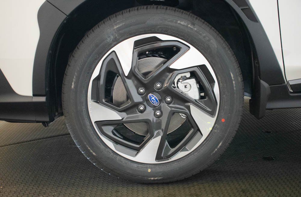 This Crosstrek is well equipped with 4-Wheel Disc Brakes, 6 Speakers, ABS brakes, Air Conditioning, Alloy wheels, Anti-whiplash front head restraints, Auto High-beam Headlights, Automatic temperature control, Brake assist, Bumpers: body-color, Driver door bin, Driver vanity mirror, Dual front impact airbags, Dual front side impact airbags, Electronic Stability Control, Emergency communication system: MySubaru Companion (5-years free), Exterior Parking Camera Rear, Four wheel independent suspension, Front anti-roll bar, Front Bucket Seats, Front Center Armrest, Front dual zone A/C, Front fog lights, Front reading lights, Fully automatic headlights, Heated door mirrors, Heated Front Bucket Seats, Heated front seats, Heated steering wheel, Illuminated entry, Knee airbag, Leather Shift Knob, Leather steering wheel, Leather-Trimmed Upholstery, Low tire pressure warning, Occupant sensing airbag, Outside temperature display, Overhead airbag, Overhead console, Panic alarm, Passenger door bin, Passenger vanity mirror, Power door mirrors, Power driver seat, Power steering, Power windows, Radio data system, Radio: Subaru 11.6" Multimedia Plus System, Rear anti-roll bar, Rear seat center armrest, Rear side impact airbag, Rear window defroster, Rear window wiper, Remote keyless entry, Security system, Speed control, Speed-sensing steering, Split folding rear seat, Spoiler, Steering wheel mounted audio controls, Tachometer, Telescoping steering wheel, Tilt steering wheel, Traction control, Trip computer, Turn signal indicator mirrors, Variably intermittent wipers, and Wheels: 18" x 7.0" J Machine Finish Aluminum-Alloy.