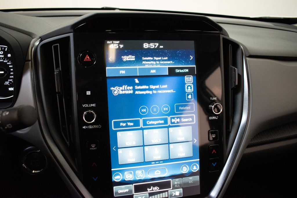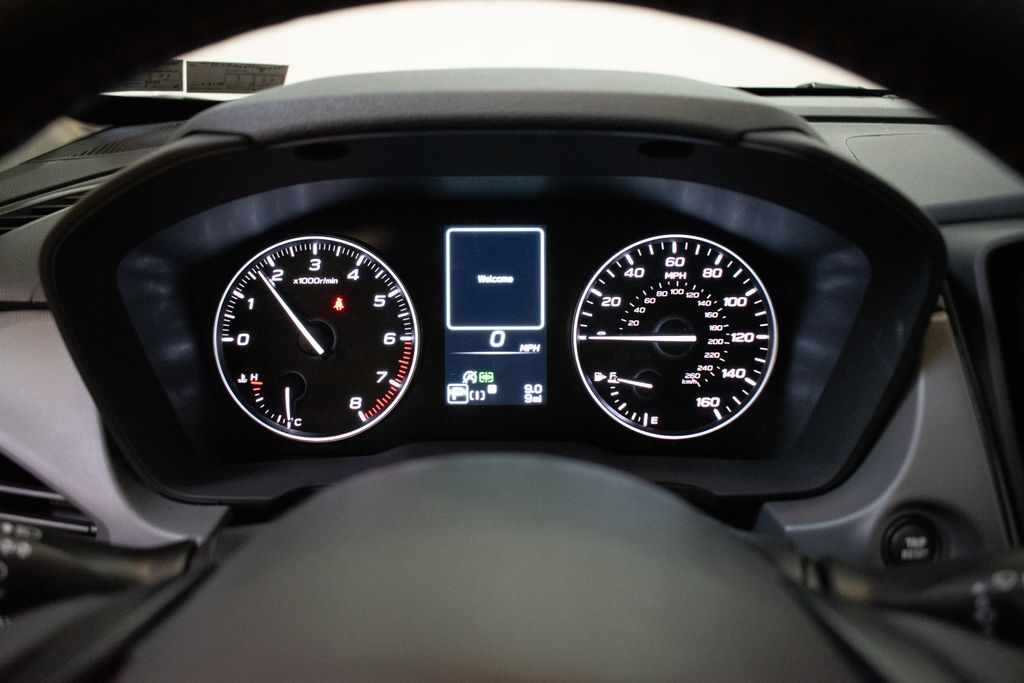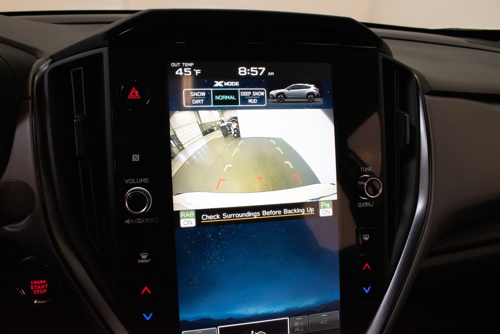 This Crosstrek is well equipped with Crosstrek Mirror Package (Auto-Dimming Exterior Mirror with Approach Light and Auto-Dimming Mirror with Compass and HomeLink), Harman/Kardon Audio and Power Moonroof (Harman/Kardon Speaker System and Power Moonroof), 4-Wheel Disc Brakes, 6 Speakers, ABS brakes, Air Conditioning, Alloy wheels, AM/FM radio: SiriusXM with 360L, Anti-whiplash front head restraints, Auto High-beam Headlights, Automatic temperature control, Brake assist, Bumpers: body-color, Driver door bin, Driver vanity mirror, Dual front impact airbags, Dual front side impact airbags, Electronic Stability Control, Emergency communication system: MySubaru Companion (5-years free), Exterior Parking Camera Rear, Four wheel independent suspension, Front anti-roll bar, Front Bucket Seats, Front Center Armrest, Front dual zone A/C, Front fog lights, Front reading lights, Fully automatic headlights, Heated door mirrors, Heated Front Bucket Seats, Heated front seats, Heated steering wheel, Illuminated entry, Knee airbag, Leather Shift Knob, Leather steering wheel, Leather-Trimmed Upholstery, LED Upgrade, Low tire pressure warning, Occupant sensing airbag, Outside temperature display, Overhead airbag, Overhead console, Panic alarm, Passenger door bin, Passenger vanity mirror, Power door mirrors, Power driver seat, Power steering, Power windows, Radio data system, Radio: Subaru 11.6" Multimedia Plus System, Rear anti-roll bar, Rear seat center armrest, Rear side impact airbag, Rear window defroster, Rear window wiper, Remote keyless entry, Security system, Speed control, Speed-sensing steering, Splash Guards, Split folding rear seat, Spoiler, Steering wheel mounted audio controls, Tachometer, Telescoping steering wheel, Tilt steering wheel, Traction control, Trip computer, Turn signal indicator mirrors, Variably intermittent wipers, and Wheels: 18" x 7.0" J Machine Finish Aluminum-Alloy.