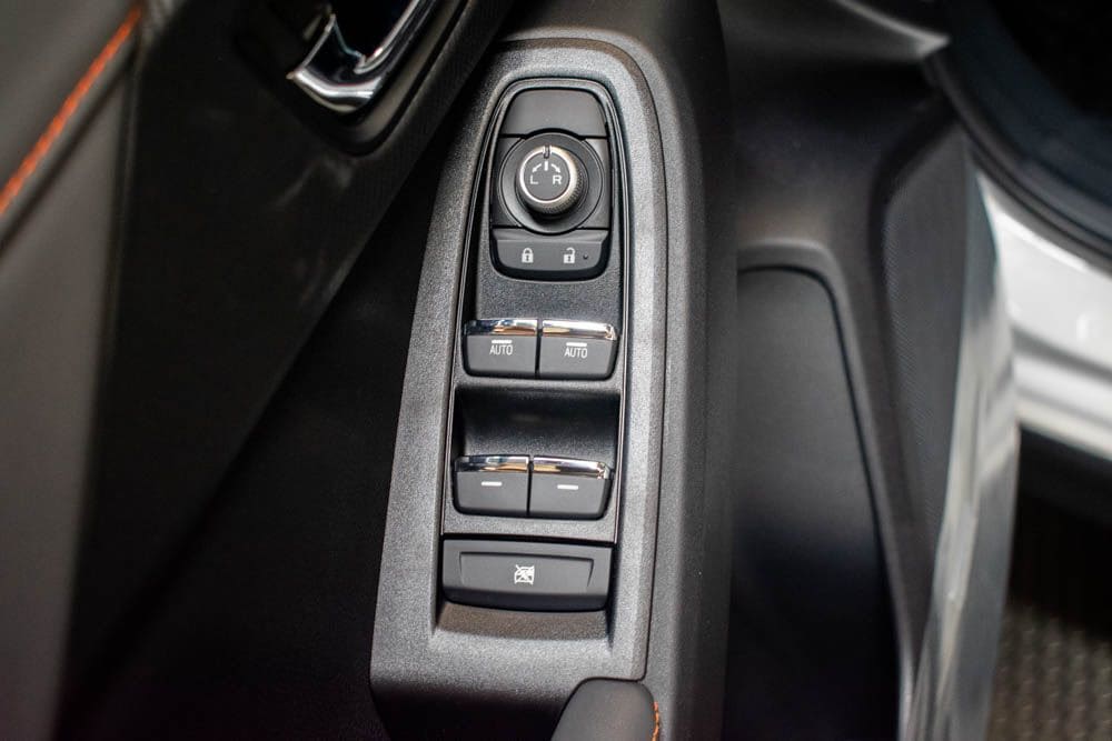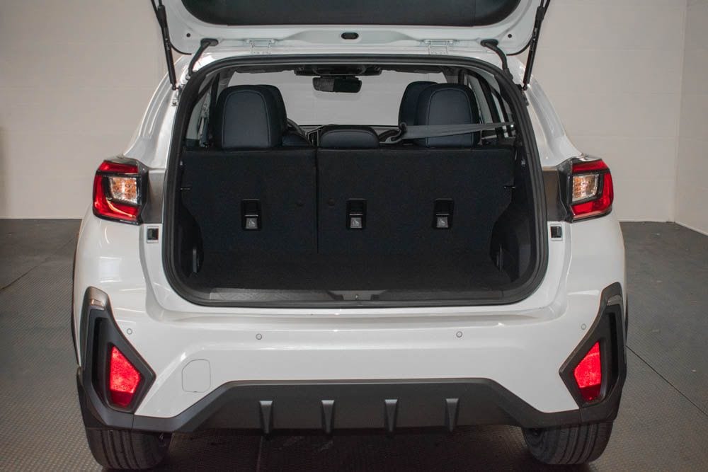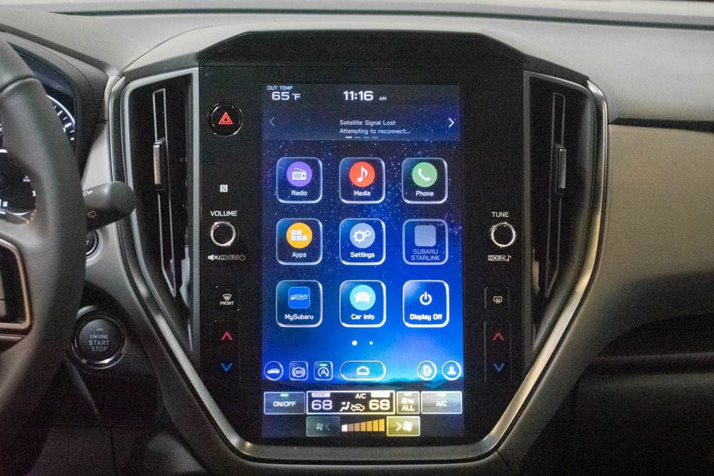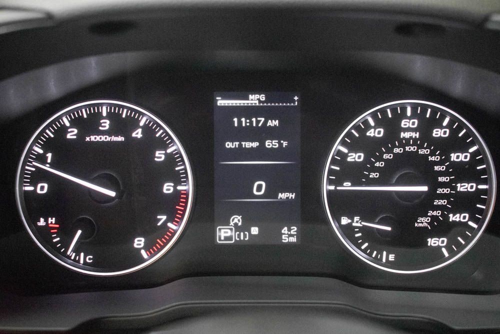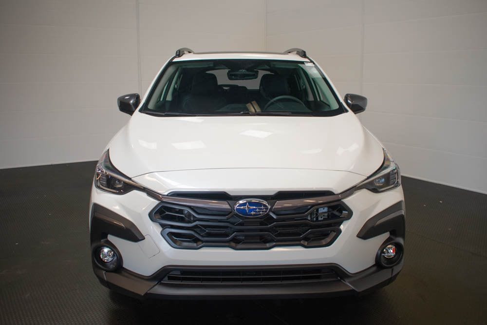 This Crosstrek is well equipped with Crosstrek Mirror Package (Auto-Dimming Exterior Mirror with Approach Light and Auto-Dimming Mirror with Compass and HomeLink), Harman/Kardon Audio and Power Moonroof (Harman/Kardon Speaker System and Power Moonroof), 4-Wheel Disc Brakes, 6 Speakers, ABS brakes, Air Conditioning, Alloy wheels, AM/FM radio: SiriusXM with 360L, Anti-whiplash front head restraints, Auto High-beam Headlights, Automatic temperature control, Brake assist, Bumpers: body-color, Driver door bin, Driver vanity mirror, Dual front impact airbags, Dual front side impact airbags, Electronic Stability Control, Emergency communication system: MySubaru Companion (5-years free), Exterior Parking Camera Rear, Four wheel independent suspension, Front anti-roll bar, Front Bucket Seats, Front Center Armrest, Front dual zone A/C, Front fog lights, Front reading lights, Fully automatic headlights, Heated door mirrors, Heated Front Bucket Seats, Heated front seats, Heated steering wheel, Illuminated entry, Knee airbag, Leather Shift Knob, Leather steering wheel, Leather-Trimmed Upholstery, LED Upgrade, Low tire pressure warning, Occupant sensing airbag, Outside temperature display, Overhead airbag, Overhead console, Panic alarm, Passenger door bin, Passenger vanity mirror, Power door mirrors, Power driver seat, Power steering, Power windows, Radio data system, Radio: Subaru 11.6" Multimedia Plus System, Rear anti-roll bar, Rear seat center armrest, Rear side impact airbag, Rear window defroster, Rear window wiper, Remote keyless entry, Security system, Speed control, Speed-sensing steering, Splash Guards, Split folding rear seat, Spoiler, Steering wheel mounted audio controls, Tachometer, Telescoping steering wheel, Tilt steering wheel, Traction control, Trip computer, Turn signal indicator mirrors, Variably intermittent wipers, and Wheels: 18" x 7.0" J Machine Finish Aluminum-Alloy.