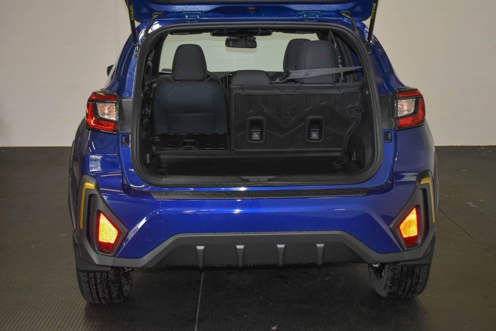 This Crosstrek is well equipped with 4-Wheel Disc Brakes, 6 Speakers, ABS brakes, Air Conditioning, Alloy wheels, Anti-whiplash front head restraints, Auto High-beam Headlights, Automatic temperature control, Brake assist, Bumpers: body-color, Driver door bin, Driver vanity mirror, Dual front impact airbags, Dual front side impact airbags, Electronic Stability Control, Emergency communication system: MySubaru Companion (5-years free), Exterior Parking Camera Rear, Four wheel independent suspension, Front anti-roll bar, Front Bucket Seats, Front Center Armrest, Front dual zone A/C, Front fog lights, Front reading lights, Fully automatic headlights, Heated door mirrors, Heated Front Bucket Seats, Heated front seats, Illuminated entry, Knee airbag, Leather Shift Knob, Leather steering wheel, Low tire pressure warning, Occupant sensing airbag, Outside temperature display, Overhead airbag, Overhead console, Panic alarm, Passenger door bin, Passenger vanity mirror, Power door mirrors, Power steering, Power windows, Radio data system, Radio: Subaru 11.6" Multimedia Plus System, Rear anti-roll bar, Rear seat center armrest, Rear side impact airbag, Rear window defroster, Rear window wiper, Remote keyless entry, Security system, Speed control, Speed-sensing steering, Split folding rear seat, Spoiler, Sport Cloth Upholstery, Steering wheel mounted audio controls, Tachometer, Telescoping steering wheel, Tilt steering wheel, Traction control, Trip computer, Turn signal indicator mirrors, Variably intermittent wipers, and Wheels: 18" x 7.0" J Dark Gray Aluminum-Alloy.