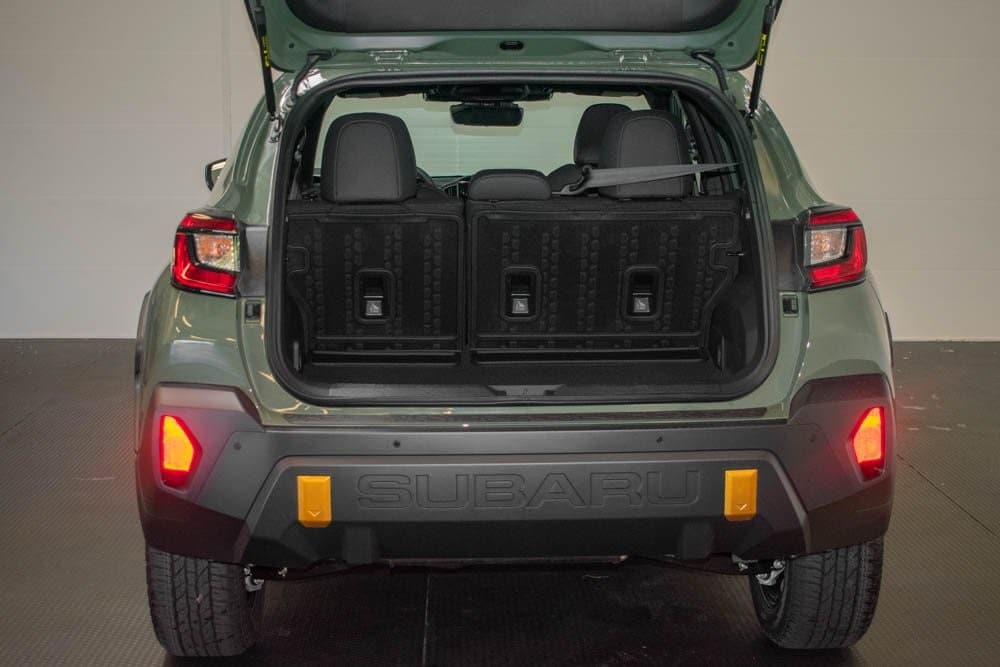 This Crosstrek is well equipped with 4-Wheel Disc Brakes, 6 Speakers, ABS brakes, Air Conditioning, Alloy wheels, AM/FM radio: SiriusXM, Anti-whiplash front head restraints, Auto High-beam Headlights, Automatic temperature control, Brake assist, Bumpers: body-color, Driver door bin, Driver vanity mirror, Dual front impact airbags, Dual front side impact airbags, Electronic Stability Control, Emergency communication system: MySubaru Companion (5-years free), Exterior Parking Camera Rear, Four wheel independent suspension, Front anti-roll bar, Front Bucket Seats, Front Center Armrest, Front dual zone A/C, Front fog lights, Front reading lights, Fully automatic headlights, Heated door mirrors, Heated Front Bucket Seats, Heated front seats, Heated steering wheel, Illuminated entry, Knee airbag, Leather Shift Knob, Leather steering wheel, Low tire pressure warning, Occupant sensing airbag, Outside temperature display, Overhead airbag, Overhead console, Panic alarm, Passenger door bin, Passenger vanity mirror, Power door mirrors, Power steering, Power windows, Radio data system, Radio: Subaru 11.6" Multimedia Plus System, Rear anti-roll bar, Rear seat center armrest, Rear side impact airbag, Rear window defroster, Rear window wiper, Remote keyless entry, Security system, Speed control, Speed-sensing steering, Split folding rear seat, Spoiler, Steering wheel mounted audio controls, Tachometer, Telescoping steering wheel, Tilt steering wheel, Traction control, Trip computer, Turn signal indicator mirrors, Variably intermittent wipers, Wheels: 17" x 7.0" J Matte Black Aluminum-Alloy, and Wilderness StarTex Upholstery.