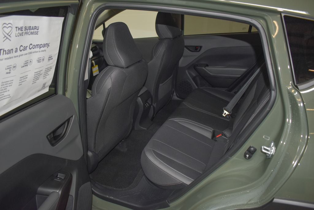 This Crosstrek is well equipped with 4-Wheel Disc Brakes, 6 Speakers, ABS brakes, Air Conditioning, Alloy wheels, AM/FM radio: SiriusXM with 360L, Anti-whiplash front head restraints, Auto High-beam Headlights, Automatic temperature control, Brake assist, Bumpers: body-color, Cloth Upholstery, Driver door bin, Driver vanity mirror, Dual front impact airbags, Dual front side impact airbags, Electronic Stability Control, Emergency communication system: MySubaru Companion (5-years free), Exterior Parking Camera Rear, Four wheel independent suspension, Front anti-roll bar, Front Bucket Seats, Front Center Armrest, Front dual zone A/C, Front fog lights, Front reading lights, Fully automatic headlights, Illuminated entry, Knee airbag, Low tire pressure warning, Occupant sensing airbag, Outside temperature display, Overhead airbag, Overhead console, Panic alarm, Passenger door bin, Passenger vanity mirror, Power door mirrors, Power steering, Power windows, Radio data system, Radio: Subaru 11.6" Multimedia Plus System, Rear anti-roll bar, Rear seat center armrest, Rear side impact airbag, Rear window defroster, Rear window wiper, Remote keyless entry, Security system, Speed control, Speed-sensing steering, Split folding rear seat, Spoiler, Steering wheel mounted audio controls, Tachometer, Telescoping steering wheel, Tilt steering wheel, Traction control, Trip computer, Turn signal indicator mirrors, Variably intermittent wipers, and Wheels: 17" x 7.0" J Machine Finish Aluminum-Alloy.