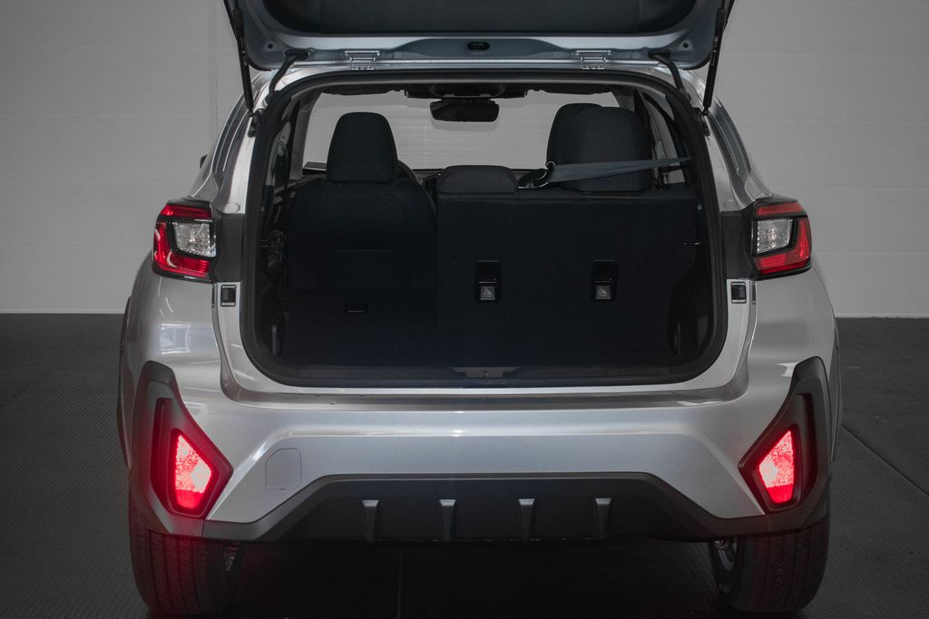 This Crosstrek is well equipped with 4-Wheel Disc Brakes, 6 Speakers, ABS brakes, Air Conditioning, Alloy wheels, AM/FM radio: SiriusXM with 360L, Anti-whiplash front head restraints, Auto High-beam Headlights, Automatic temperature control, Brake assist, Bumpers: body-color, Cloth Upholstery, Driver door bin, Driver vanity mirror, Dual front impact airbags, Dual front side impact airbags, Electronic Stability Control, Emergency communication system: MySubaru Companion (5-years free), Exterior Parking Camera Rear, Four wheel independent suspension, Front anti-roll bar, Front Bucket Seats, Front Center Armrest, Front dual zone A/C, Front fog lights, Front reading lights, Fully automatic headlights, Illuminated entry, Knee airbag, Low tire pressure warning, Occupant sensing airbag, Outside temperature display, Overhead airbag, Overhead console, Panic alarm, Passenger door bin, Passenger vanity mirror, Power door mirrors, Power steering, Power windows, Radio data system, Radio: Subaru 11.6" Multimedia Plus System, Rear anti-roll bar, Rear seat center armrest, Rear side impact airbag, Rear window defroster, Rear window wiper, Remote keyless entry, Security system, Speed control, Speed-sensing steering, Split folding rear seat, Spoiler, Steering wheel mounted audio controls, Tachometer, Telescoping steering wheel, Tilt steering wheel, Traction control, Trip computer, Turn signal indicator mirrors, Variably intermittent wipers, and Wheels: 17" x 7.0" J Machine Finish Aluminum-Alloy.