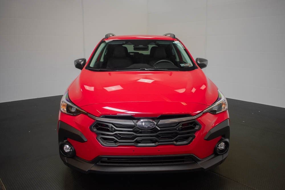 This Crosstrek is well equipped with 4-Wheel Disc Brakes, 6 Speakers, ABS brakes, Air Conditioning, Alloy wheels, AM/FM radio: SiriusXM, Anti-whiplash front head restraints, Auto High-beam Headlights, Automatic temperature control, Brake assist, Bumpers: body-color, Cloth Upholstery, Driver door bin, Driver vanity mirror, Dual front impact airbags, Dual front side impact airbags, Electronic Stability Control, Emergency communication system: MySubaru Companion (5-years free), Exterior Parking Camera Rear, Four wheel independent suspension, Front anti-roll bar, Front Bucket Seats, Front Center Armrest, Front dual zone A/C, Front fog lights, Front reading lights, Fully automatic headlights, Illuminated entry, Knee airbag, Low tire pressure warning, Occupant sensing airbag, Outside temperature display, Overhead airbag, Overhead console, Panic alarm, Passenger door bin, Passenger vanity mirror, Power door mirrors, Power steering, Power windows, Radio data system, Radio: Subaru 11.6" Multimedia Plus System, Rear anti-roll bar, Rear seat center armrest, Rear side impact airbag, Rear window defroster, Rear window wiper, Remote keyless entry, Security system, Speed control, Speed-sensing steering, Split folding rear seat, Spoiler, Steering wheel mounted audio controls, Tachometer, Telescoping steering wheel, Tilt steering wheel, Traction control, Trip computer, Turn signal indicator mirrors, Variably intermittent wipers, and Wheels: 17" x 7.0" J Machine Finish Aluminum-Alloy.