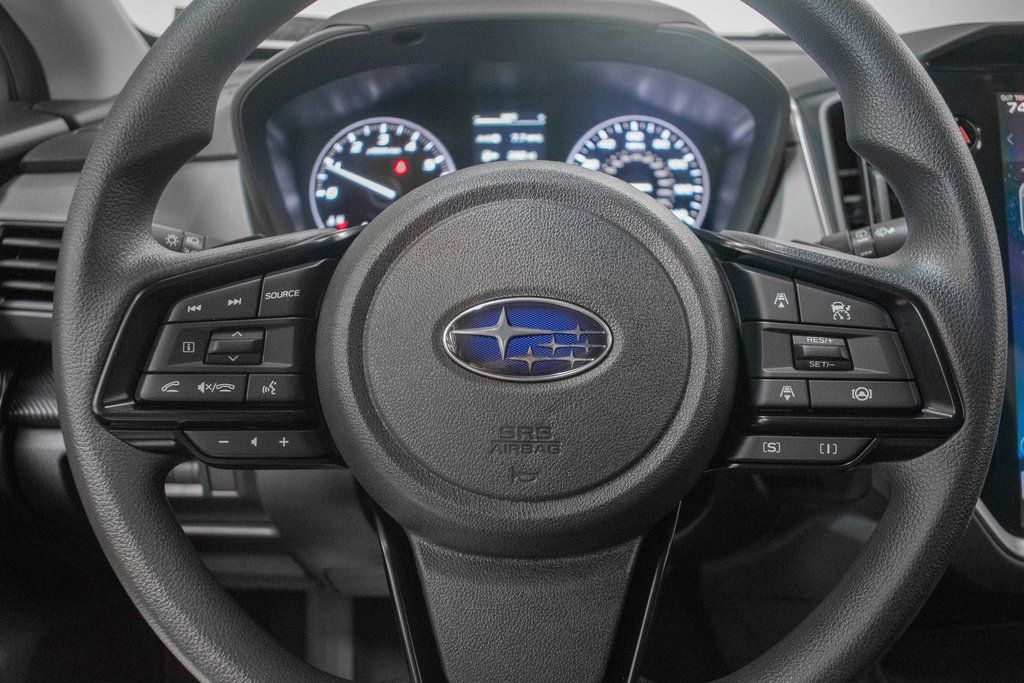 This Crosstrek is well equipped with All-Weather Package (Dual-Mode Heated Front Seats, Heated Power Exterior Mirrors, and Windshield De-Icer Wipers), BSD/RCTA and All Weather Package and Power Driver Seat and Power Moonroof (10-Way Power Driver's Seat, Blind Spot Detection (BSD), Power Moonroof, and Rear Cross-Traffic Alert (RCTA) System), Crosstrek Mirror Package (Auto-Dimming Exterior Mirror with Approach Light and Auto-Dimming Mirror with Compass and HomeLink), 4-Wheel Disc Brakes, 6 Speakers, ABS brakes, Air Conditioning, Alloy wheels, AM/FM radio: SiriusXM with 360L, Anti-whiplash front head restraints, Auto High-beam Headlights, Automatic temperature control, Brake assist, Bumpers: body-color, Cargo Net, Cloth Upholstery, Driver door bin, Driver vanity mirror, Dual front impact airbags, Dual front side impact airbags, Electronic Stability Control, Emergency communication system: MySubaru Companion (5-years free), Exterior Parking Camera Rear, Four wheel independent suspension, Front anti-roll bar, Front Bucket Seats, Front Center Armrest, Front dual zone A/C, Front fog lights, Front reading lights, Fully automatic headlights, Illuminated entry, Knee airbag, Low tire pressure warning, Occupant sensing airbag, Outside temperature display, Overhead airbag, Overhead console, Panic alarm, Passenger door bin, Passenger vanity mirror, Power door mirrors, Power steering, Power windows, Radio data system, Radio: Subaru 11.6" Multimedia Plus System, Rear anti-roll bar, Rear Bumper Cover, Rear seat center armrest, Rear side impact airbag, Rear window defroster, Rear window wiper, Remote keyless entry, Security system, Speed control, Speed-sensing steering, Split folding rear seat, Spoiler, Steering wheel mounted audio controls, Tachometer, Telescoping steering wheel, Tilt steering wheel, Traction control, Trip computer, Turn signal indicator mirrors, Variably intermittent wipers, and Wheels: 17" x 7.0" J Machine Finish Aluminum-Alloy.