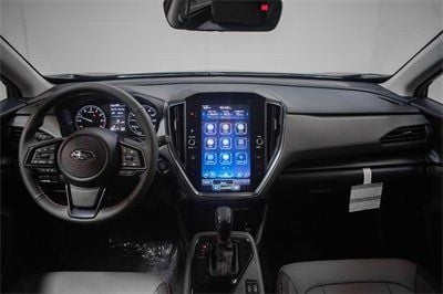 This Crosstrek Hybrid is well equipped with Crosstrek Mirror Package (Auto-Dimming Exterior Mirror with Approach Light and Auto-Dimming Mirror with Compass and HomeLink), Power Moonroof and Surround View Monitor (360 Surround View Monitor and Power Moonroof), 10 Speakers, 4-Wheel Disc Brakes, ABS brakes, Air Conditioning, Alloy wheels, AM/FM radio: SiriusXM, Anti-whiplash front head restraints, Auto High-beam Headlights, Automatic temperature control, Brake assist, Bumpers: body-color, Compass, Driver door bin, Driver vanity mirror, Dual front impact airbags, Dual front side impact airbags, Electronic Stability Control, Emergency communication system: MySubaru Companion (5-years free), Exterior Parking Camera Rear, Four wheel independent suspension, Front anti-roll bar, Front Bucket Seats, Front Center Armrest, Front dual zone A/C, Front fog lights, Front reading lights, Fully automatic headlights, harman/kardon® Speakers, Heated door mirrors, Heated Front Bucket Seats, Heated front seats, Heated steering wheel, Illuminated entry, Knee airbag, Leather Shift Knob, Leather steering wheel, Low tire pressure warning, Navigation System, Occupant sensing airbag, Outside temperature display, Overhead airbag, Overhead console, Panic alarm, Passenger door bin, Passenger vanity mirror, Perforated StarTex Upholstery, Power door mirrors, Power driver seat, Power steering, Power windows, Radio data system, Radio: Subaru 11.6" Multimedia Navigation System, Rear anti-roll bar, Rear seat center armrest, Rear side impact airbag, Rear window defroster, Rear window wiper, Remote keyless entry, Security system, Speed control, Speed-sensing steering, Split folding rear seat, Spoiler, Steering wheel mounted audio controls, Tachometer, Telescoping steering wheel, Tilt steering wheel, Traction control, Trip computer, Turn signal indicator mirrors, Variably intermittent wipers, and Wheels: 18" x 7.0" J Dark Gray Aluminum-Alloy.