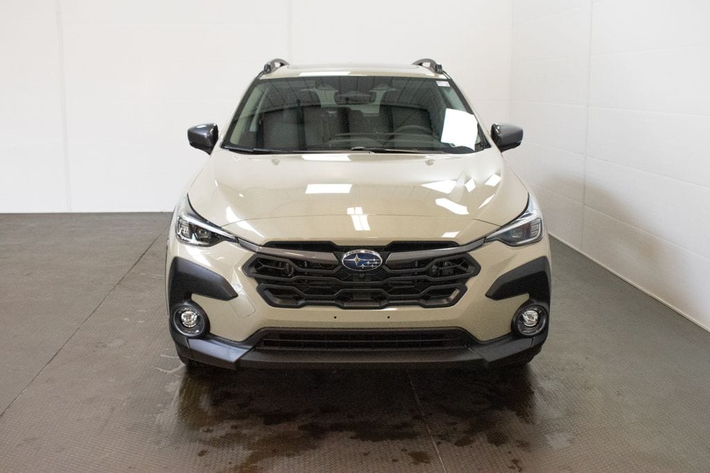 This Crosstrek Hybrid is well equipped with Convenience Package (Auto-Dimming Mirror with Compass and HomeLink, Rear Bumper Cover, and Splash Guards), Power Moonroof and Surround View Monitor (360 Surround View Monitor and Power Moonroof), 10 Speakers, 4-Wheel Disc Brakes, ABS brakes, Air Conditioning, Alloy wheels, AM/FM radio: SiriusXM, Anti-whiplash front head restraints, Auto High-beam Headlights, Auto-Dimming Exterior Mirror with Approach Light, Automatic temperature control, Brake assist, Bumpers: body-color, Compass, Driver door bin, Driver vanity mirror, Dual front impact airbags, Dual front side impact airbags, Electronic Stability Control, Emergency communication system: MySubaru Companion (5-years free), Exterior Parking Camera Rear, Four wheel independent suspension, Front anti-roll bar, Front Bucket Seats, Front Center Armrest, Front dual zone A/C, Front fog lights, Front reading lights, Fully automatic headlights, harman/kardon® Speakers, Heated door mirrors, Heated Front Bucket Seats, Heated front seats, Heated steering wheel, Illuminated entry, Knee airbag, Leather Shift Knob, Leather steering wheel, LED Upgrade, Low tire pressure warning, Navigation System, Occupant sensing airbag, Outside temperature display, Overhead airbag, Overhead console, Panic alarm, Passenger door bin, Passenger vanity mirror, Perforated StarTex Upholstery, Power door mirrors, Power driver seat, Power steering, Power windows, Radio data system, Radio: Subaru 11.6" Multimedia Navigation System, Rear anti-roll bar, Rear seat center armrest, Rear side impact airbag, Rear window defroster, Rear window wiper, Remote keyless entry, Security system, Speed control, Speed-sensing steering, Split folding rear seat, Spoiler, Steering wheel mounted audio controls, Tachometer, Telescoping steering wheel, Tilt steering wheel, Traction control, Trip computer, Turn signal indicator mirrors, Variably intermittent wipers, and Wheels: 18" x 7.0" J Dark Gray Aluminum-Alloy.