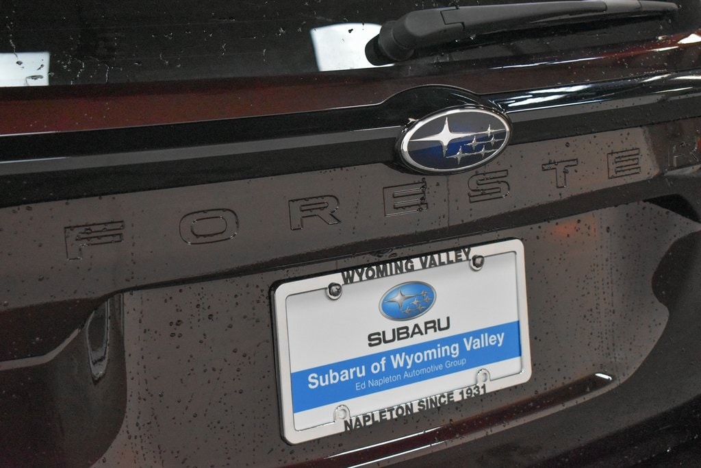 This Forester is well equipped with 4-Wheel Disc Brakes, 6 Speakers, ABS brakes, Air Conditioning, Alloy wheels, AM/FM radio: SiriusXM with 360L, Anti-whiplash front head restraints, Auto High-beam Headlights, Automatic temperature control, Brake assist, Bumpers: body-color, Driver door bin, Driver vanity mirror, Dual front impact airbags, Dual front side impact airbags, Electronic Stability Control, Emergency communication system: MySubaru Companion (5-years free), Exterior Parking Camera Rear, Four wheel independent suspension, Front anti-roll bar, Front Bucket Seats, Front Center Armrest, Front dual zone A/C, Front fog lights, Front reading lights, Fully automatic headlights, Heated door mirrors, Heated Front Bucket Seats, Heated front seats, Heated steering wheel, Illuminated entry, Knee airbag, Leather steering wheel, Low tire pressure warning, Occupant sensing airbag, Outside temperature display, Overhead airbag, Overhead console, Panic alarm, Passenger door bin, Passenger vanity mirror, Perforated Leather-Trimmed Upholstery, Power door mirrors, Power driver seat, Power Liftgate, Power moonroof: Panoramic, Power passenger seat, Power steering, Power windows, Radio data system, Radio: Subaru 11.6" Multimedia Plus System, Rain sensing wipers, Rear anti-roll bar, Rear seat center armrest, Rear window defroster, Rear window wiper, Remote keyless entry, Security system, Speed control, Speed-sensing steering, Split folding rear seat, Spoiler, Steering wheel mounted audio controls, Tachometer, Telescoping steering wheel, Tilt steering wheel, Traction control, Trip computer, Turn signal indicator mirrors, Variably intermittent wipers, and Wheels: 18" x 7.0 J Dark Metallic Aluminum-Alloy.