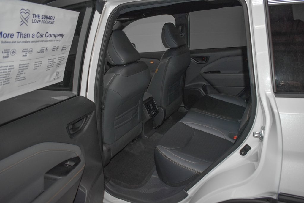 This Forester is well equipped with 4-Wheel Disc Brakes, 6 Speakers, ABS brakes, Air Conditioning, Alloy wheels, AM/FM radio: SiriusXM with 360L, Anti-whiplash front head restraints, Auto High-beam Headlights, Automatic temperature control, Brake assist, Bumpers: body-color, Driver door bin, Driver vanity mirror, Dual front impact airbags, Dual front side impact airbags, Electronic Stability Control, Emergency communication system: MySubaru Companion (5-years free), Exterior Parking Camera Rear, Four wheel independent suspension, Front anti-roll bar, Front Bucket Seats, Front Center Armrest, Front dual zone A/C, Front fog lights, Front reading lights, Fully automatic headlights, Heated door mirrors, Heated Front Bucket Seats, Heated front seats, Illuminated entry, Knee airbag, Low tire pressure warning, Occupant sensing airbag, Outside temperature display, Overhead airbag, Overhead console, Panic alarm, Passenger door bin, Passenger vanity mirror, Power door mirrors, Power driver seat, Power moonroof: Panoramic, Power steering, Power windows, Radio data system, Radio: Subaru 11.6" Multimedia Plus System, Rain sensing wipers, Rear anti-roll bar, Rear seat center armrest, Rear window defroster, Rear window wiper, Remote keyless entry, Security system, Speed control, Speed-sensing steering, Split folding rear seat, Spoiler, Steering wheel mounted audio controls, Tachometer, Telescoping steering wheel, Textured StarTex Upholstery, Tilt steering wheel, Traction control, Trip computer, Turn signal indicator mirrors, Variably intermittent wipers, and Wheels: 17" x 7.0 J Matte Black Finish Aluminum-Alloy.