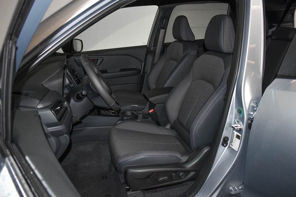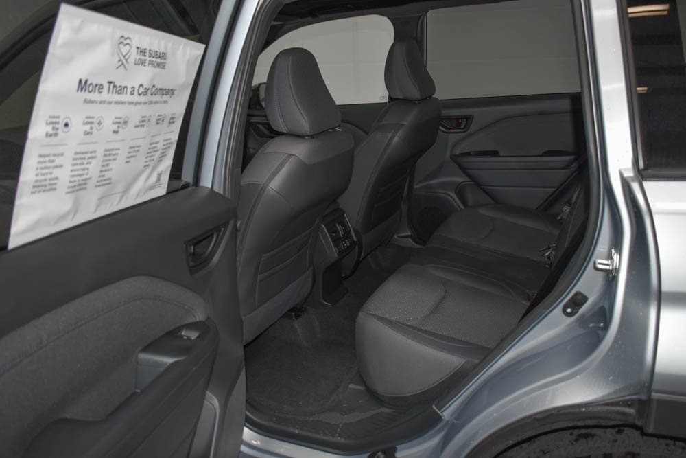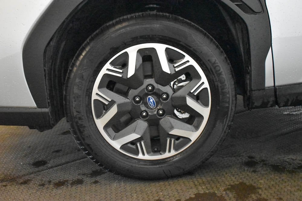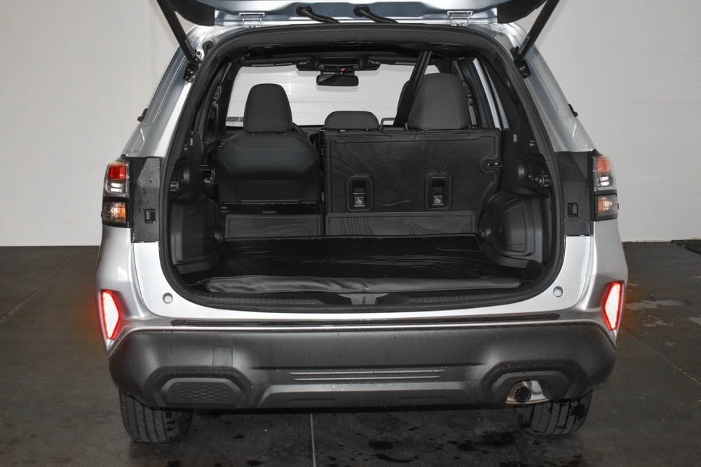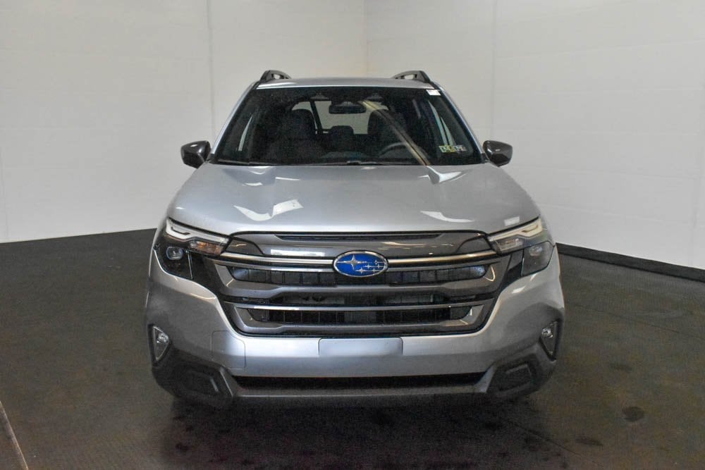 This Forester is well equipped with 4-Wheel Disc Brakes, 6 Speakers, ABS brakes, Air Conditioning, Alloy wheels, AM/FM radio: SiriusXM with 360L, Anti-whiplash front head restraints, Auto High-beam Headlights, Automatic temperature control, Brake assist, Bumpers: body-color, Driver door bin, Driver vanity mirror, Dual front impact airbags, Dual front side impact airbags, Electronic Stability Control, Emergency communication system: MySubaru Companion (5-years free), Exterior Parking Camera Rear, Four wheel independent suspension, Front anti-roll bar, Front Bucket Seats, Front Center Armrest, Front dual zone A/C, Front fog lights, Front reading lights, Fully automatic headlights, Heated door mirrors, Heated Front Bucket Seats, Heated front seats, Illuminated entry, Knee airbag, Leather steering wheel, Low tire pressure warning, Occupant sensing airbag, Outside temperature display, Overhead airbag, Overhead console, Panic alarm, Passenger door bin, Passenger vanity mirror, Power door mirrors, Power driver seat, Power moonroof: Panoramic, Power steering, Power windows, Premium Textured Cloth Upholstery, Radio data system, Radio: Subaru 11.6" Multimedia Plus System, Rear anti-roll bar, Rear seat center armrest, Rear window defroster, Rear window wiper, Remote keyless entry, Security system, Speed control, Speed-sensing steering, Split folding rear seat, Spoiler, Steering wheel mounted audio controls, Tachometer, Telescoping steering wheel, Tilt steering wheel, Traction control, Trip computer, Variably intermittent wipers, and Wheels: 17" x 7.0 J Dark Metallic Aluminum-Alloy.