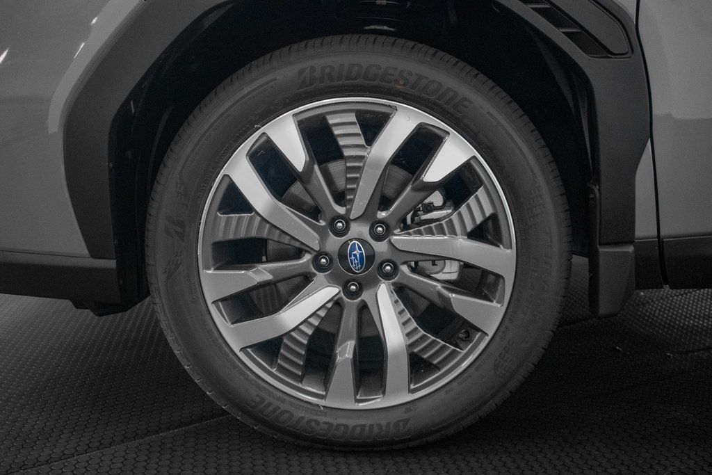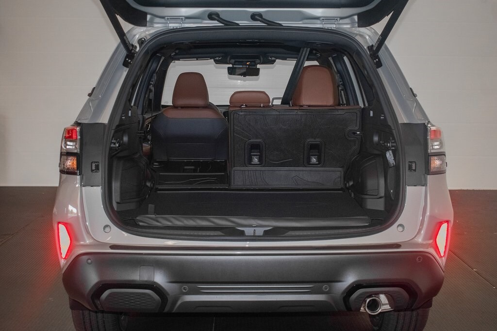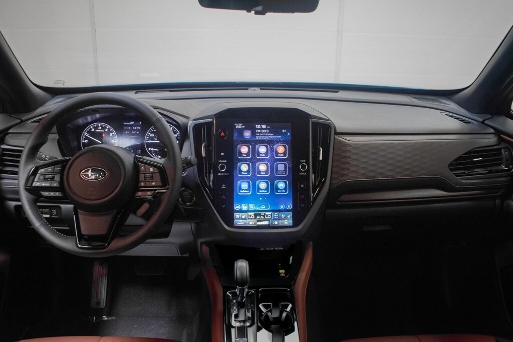 This Forester is well equipped with 11 Speakers, 4-Wheel Disc Brakes, ABS brakes, Air Conditioning, Alloy wheels, AM/FM radio: SiriusXM with 360L, Anti-whiplash front head restraints, Auto High-beam Headlights, Automatic temperature control, Brake assist, Bumpers: body-color, Driver door bin, Driver vanity mirror, Dual front impact airbags, Dual front side impact airbags, Electronic Stability Control, Emergency communication system: MySubaru Companion (5-years free), Exterior Parking Camera Rear, Four wheel independent suspension, Front anti-roll bar, Front Bucket Seats, Front Center Armrest, Front dual zone A/C, Front fog lights, Front reading lights, Fully automatic headlights, harman/kardon® Speakers, Heads-Up Display, Heated and Ventilated Front Bucket Seats, Heated door mirrors, Heated front seats, Heated rear seats, Heated steering wheel, HVAC memory, Illuminated entry, Knee airbag, Leather Shift Knob, Leather steering wheel, Low tire pressure warning, Memory seat, Navigation System, Occupant sensing airbag, Outside temperature display, Overhead airbag, Overhead console, Panic alarm, Passenger door bin, Passenger vanity mirror, Perforated Leather-Trimmed Upholstery, Power door mirrors, Power driver seat, Power Liftgate, Power moonroof: Panoramic, Power passenger seat, Power steering, Power windows, Radio data system, Radio: Subaru 11.6" Multimedia Navigation System, Rain sensing wipers, Rear anti-roll bar, Rear seat center armrest, Rear window defroster, Rear window wiper, Remote keyless entry, Security system, Speed control, Speed-sensing steering, Split folding rear seat, Spoiler, Steering wheel mounted audio controls, Tachometer, Telescoping steering wheel, Tilt steering wheel, Traction control, Trip computer, Turn signal indicator mirrors, Variably intermittent wipers, Ventilated front seats, and Wheels: 19" x 7.5 J Dark Gray Aluminum-Alloy.