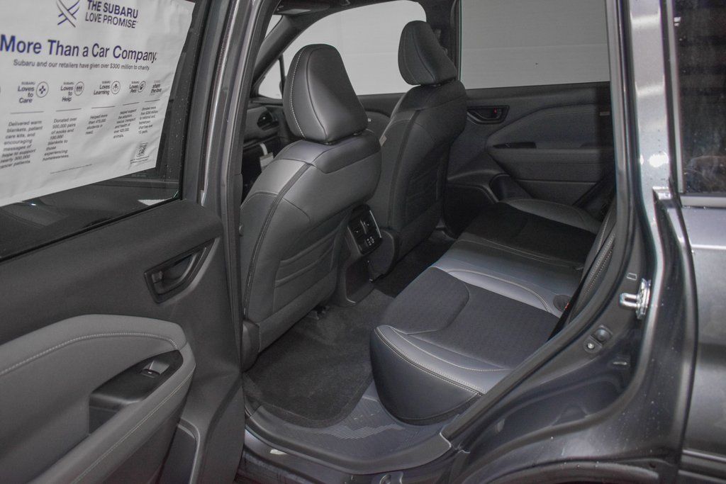 This Forester is well equipped with Harman/Kardon Speaker System and Power Rear Gate (Power Rear Gate and Radio: Subaru 11.6" Multimedia Navigation System), 4-Wheel Disc Brakes, 6 Speakers, ABS brakes, Air Conditioning, Alloy wheels, AM/FM radio: SiriusXM with 360L, Anti-whiplash front head restraints, Auto High-beam Headlights, Auto-Dimming Exterior Mirror with Approach Light, Auto-Dimming Mirror with Compass and HomeLink, Automatic temperature control, Brake assist, Bumpers: body-color, Cargo Sidewall Protector, Carpeted Floor Mats - Wilderness, Driver door bin, Driver vanity mirror, Dual front impact airbags, Dual front side impact airbags, Electronic Stability Control, Emergency communication system: MySubaru Companion (5-years free), Exterior Parking Camera Rear, Four wheel independent suspension, Front anti-roll bar, Front Bucket Seats, Front Center Armrest, Front dual zone A/C, Front fog lights, Front reading lights, Fully automatic headlights, Heated door mirrors, Heated Front Bucket Seats, Heated front seats, Illuminated entry, Knee airbag, LED Upgrade, Low tire pressure warning, Occupant sensing airbag, Outside temperature display, Overhead airbag, Overhead console, Panic alarm, Passenger door bin, Passenger vanity mirror, Power door mirrors, Power driver seat, Power moonroof: Panoramic, Power steering, Power windows, Radio data system, Radio: Subaru 11.6" Multimedia Plus System, Rain sensing wipers, Rear anti-roll bar, Rear seat center armrest, Rear window defroster, Rear window wiper, Remote keyless entry, Security system, Speed control, Speed-sensing steering, Split folding rear seat, Spoiler, Steering wheel mounted audio controls, Tachometer, Telescoping steering wheel, Textured StarTex Upholstery, Tilt steering wheel, Traction control, Trip computer, Turn signal indicator mirrors, Variably intermittent wipers, and Wheels: 17" x 7.0 J Matte Black Finish Aluminum-Alloy.