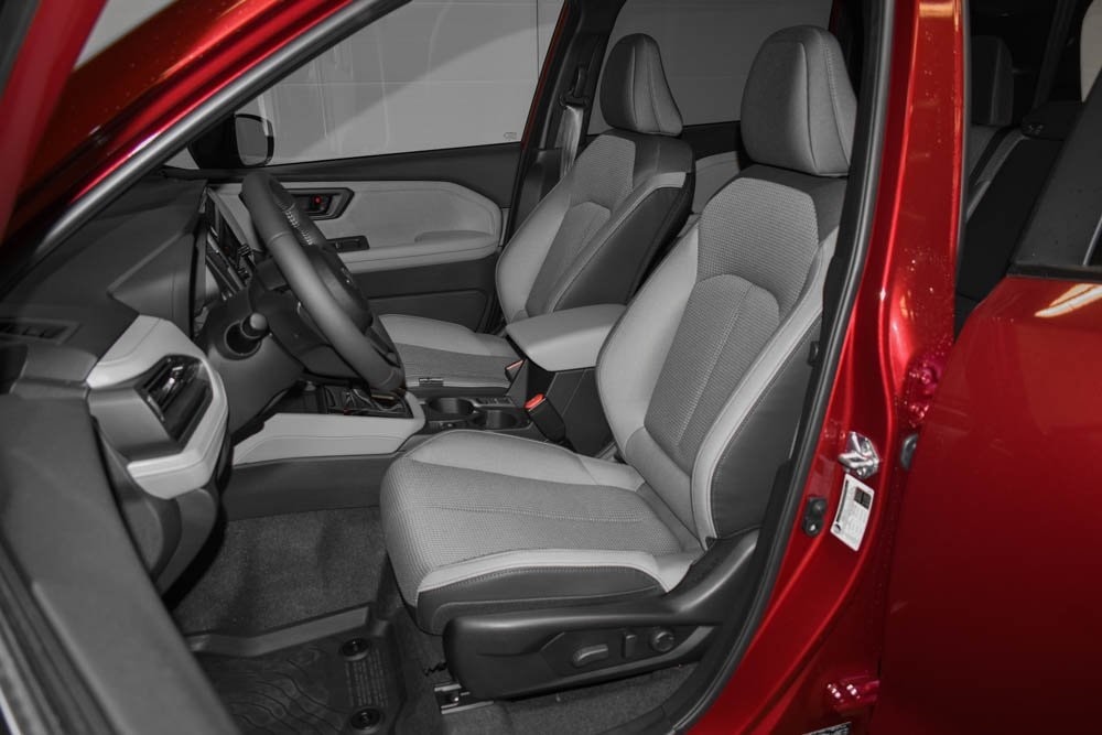 This Forester is well equipped with Power Rear Gate and Blind Spot Detection with Rear Cross Traffic Alert (Automatic Emergency Steering, Blind-Spot Detection (BSD)/RCTA System, Emergency Lane Keep Assist, and Power Rear Gate), 4-Wheel Disc Brakes, 6 Speakers, ABS brakes, Air Conditioning, Alloy wheels, AM/FM radio: SiriusXM with 360L, Anti-whiplash front head restraints, Auto High-beam Headlights, Auto-Dimming Mirror with Compass and HomeLink, Automatic temperature control, Brake assist, Bumpers: body-color, Cargo Net, Cargo Sidewall Protector, Driver door bin, Driver vanity mirror, Dual front impact airbags, Dual front side impact airbags, Electronic Stability Control, Emergency communication system: MySubaru Companion (5-years free), Exterior Parking Camera Rear, Four wheel independent suspension, Front anti-roll bar, Front Bucket Seats, Front Center Armrest, Front dual zone A/C, Front fog lights, Front reading lights, Fully automatic headlights, Heated door mirrors, Heated Front Bucket Seats, Heated front seats, Illuminated entry, Interior Accent Liner Kit - Gray, Knee airbag, Leather steering wheel, LED Upgrade, Low tire pressure warning, Occupant sensing airbag, Outside temperature display, Overhead airbag, Overhead console, Panic alarm, Passenger door bin, Passenger vanity mirror, Power door mirrors, Power driver seat, Power moonroof: Panoramic, Power steering, Power windows, Premium Textured Cloth Upholstery, Radio data system, Radio: Subaru 11.6" Multimedia Plus System, Rear anti-roll bar, Rear Bumper Cover, Rear seat center armrest, Rear window defroster, Rear window wiper, Remote keyless entry, Security system, Speed control, Speed-sensing steering, Splash Guards, Split folding rear seat, Spoiler, Steering wheel mounted audio controls, Tachometer, Telescoping steering wheel, Tilt steering wheel, Traction control, Trip computer, USB Charging Cable Set, Utility Hook (2-Pack), Variably intermittent wipers, and Wheels: 17" x 7.0 J Dark Metallic Aluminum-Alloy.