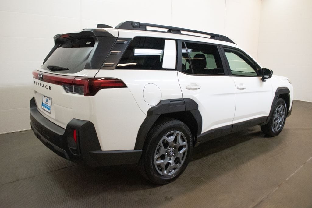 This Outback is well equipped with Navigation and Heated Steering Wheel and Moonroof (Partial Heated Steering Wheel, Power Moonroof, Radio: Subaru 12.1" Multimedia System with Navigation, Rain Sensor Windshield Wipers, and Wireless Charger), 4-Wheel Disc Brakes, 6 Speakers, ABS brakes, Air Conditioning, All-Weather Floor Liners, Alloy wheels, AM/FM radio: SiriusXM with 360L, Anti-whiplash front head restraints, Auto High-beam Headlights, Automatic temperature control, Blind Spot Warning, Brake assist, Bumpers: body-color, Cargo Net, Driver door bin, Driver vanity mirror, Dual front impact airbags, Dual front side impact airbags, Electronic Stability Control, Emergency communication system: MySubaru Companion (5-years free), Exterior Parking Camera Rear, Four wheel independent suspension, Front anti-roll bar, Front Bucket Seats, Front Center Armrest w/Storage, Front dual zone A/C, Front fog lights, Front reading lights, Fully automatic headlights, Heated door mirrors, Heated Front Bucket Seats, Heated front seats, HVAC memory, Illuminated entry, Knee airbag, Leather steering wheel, LED Upgrade, Low tire pressure warning, Occupant sensing airbag, Outside temperature display, Overhead airbag, Overhead console, Panic alarm, Passenger door bin, Passenger vanity mirror, Power door mirrors, Power driver seat, Power Liftgate, Power steering, Power windows, Radio: Subaru 12.1" Multimedia System, Rear anti-roll bar, Rear seat center armrest, Rear window defroster, Rear window wiper, Remote keyless entry, Security system, Speed control, Speed-sensing steering, Split folding rear seat, Spoiler, StarTex Upholstery, Steering wheel mounted audio controls, Tachometer, Telescoping steering wheel, Tilt steering wheel, Traction control, Trip computer, Turn signal indicator mirrors, Variably intermittent wipers, and Wheels: 18" x 7J Aluminum-Alloy.