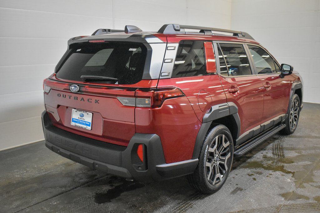 This Outback is well equipped with 12 Speakers, 4-Wheel Disc Brakes, ABS brakes, Air Conditioning, Alloy wheels, AM/FM radio: SiriusXM with 360L, Anti-whiplash front head restraints, Auto High-beam Headlights, Auto-dimming Rear-View mirror, Automatic temperature control, Blind Spot Warning, Brake assist, Bumpers: body-color, Compass, Driver door bin, Driver vanity mirror, Dual front impact airbags, Dual front side impact airbags, Electronic Stability Control, Emergency communication system: MySubaru Companion (5-years free), Exterior Parking Camera Rear, Four wheel independent suspension, Front anti-roll bar, Front Bucket Seats, Front Center Armrest w/Storage, Front dual zone A/C, Front fog lights, Front reading lights, Fully automatic headlights, Garage door transmitter: HomeLink, harman/kardon® Speakers, Heated and Ventilated Front Bucket Seats, Heated door mirrors, Heated front seats, Heated rear seats, Heated steering wheel, HVAC memory, Illuminated entry, Knee airbag, Leather steering wheel, Low tire pressure warning, Memory seat, Nappa Leather-Trimmed Perforated Upholstery, Navigation system: MySubaru Navigator (1-year trial), Occupant sensing airbag, Outside temperature display, Overhead airbag, Overhead console, Panic alarm, Passenger door bin, Passenger vanity mirror, Power door mirrors, Power driver seat, Power Liftgate, Power moonroof, Power passenger seat, Power steering, Power windows, Radio: Subaru 12.1" Multimedia System with Navigation, Rain sensing wipers, Rear anti-roll bar, Rear seat center armrest, Rear window defroster, Rear window wiper, Remote keyless entry, Security system, Speed control, Speed-sensing steering, Split folding rear seat, Spoiler, Steering wheel mounted audio controls, Tachometer, Telescoping steering wheel, Tilt steering wheel, Traction control, Trip computer, Turn signal indicator mirrors, Variably intermittent wipers, Ventilated front seats, and Wheels: 19" x 7J Black Aluminum-Alloy.