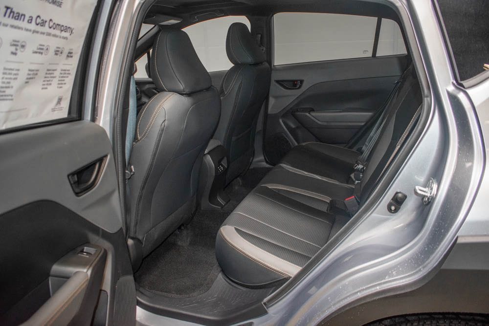 This Crosstrek is well equipped with Crosstrek Mirror Package (Auto-Dimming Exterior Mirror with Approach Light and Auto-Dimming Mirror with Compass and HomeLink), Harman/Kardon Audio and Power Moonroof and Power Driver Seat (10-Way Power Driver's Seat, Harman/Kardon Speaker System, and Power Moonroof), 4-Wheel Disc Brakes, 6 Speakers, ABS brakes, Air Conditioning, Alloy wheels, AM/FM radio: SiriusXM with 360L, Anti-whiplash front head restraints, Auto High-beam Headlights, Automatic temperature control, Brake assist, Bumpers: body-color, Carpeted Floor Mats, Driver door bin, Driver vanity mirror, Dual front impact airbags, Dual front side impact airbags, Electronic Stability Control, Emergency communication system: MySubaru Companion (5-years free), Exterior Parking Camera Rear, Four wheel independent suspension, Front anti-roll bar, Front Bucket Seats, Front Center Armrest, Front dual zone A/C, Front fog lights, Front reading lights, Fully automatic headlights, Heated door mirrors, Heated Front Bucket Seats, Heated front seats, Heated steering wheel, Illuminated entry, Knee airbag, Leather Shift Knob, Leather steering wheel, Low tire pressure warning, Occupant sensing airbag, Outside temperature display, Overhead airbag, Overhead console, Panic alarm, Passenger door bin, Passenger vanity mirror, Power door mirrors, Power steering, Power windows, Radio data system, Radio: Subaru 11.6" Multimedia Plus System, Rear anti-roll bar, Rear seat center armrest, Rear side impact airbag, Rear window defroster, Rear window wiper, Remote keyless entry, Security system, Speed control, Speed-sensing steering, Split folding rear seat, Spoiler, Steering wheel mounted audio controls, Tachometer, Telescoping steering wheel, Tilt steering wheel, Traction control, Trip computer, Turn signal indicator mirrors, Variably intermittent wipers, Wheels: 17" x 7.0" J Matte Black Aluminum-Alloy, and Wilderness StarTex Upholstery.