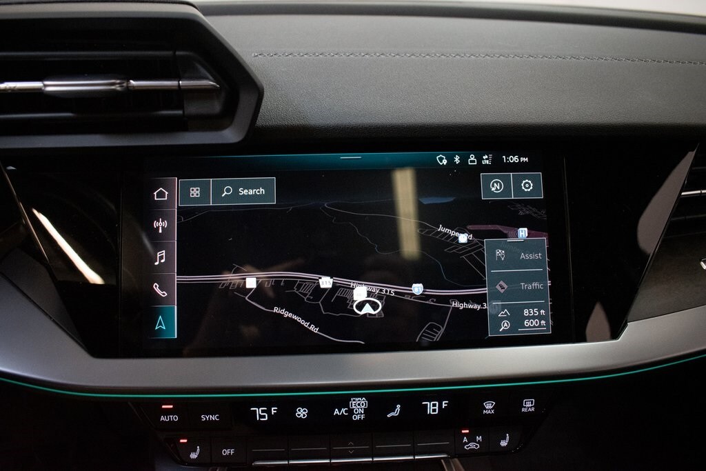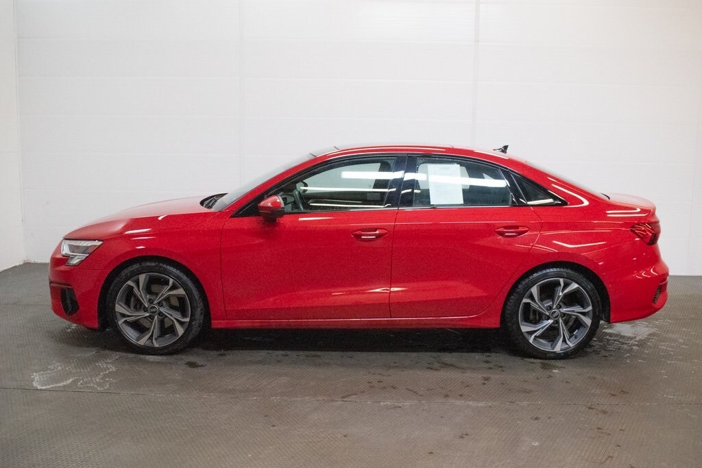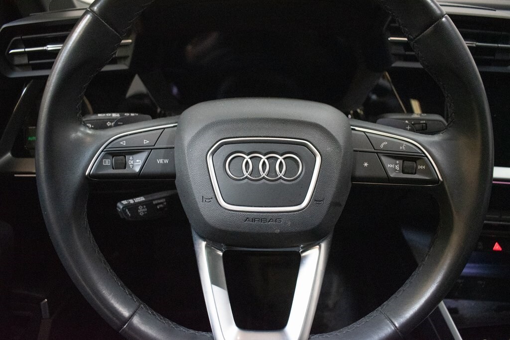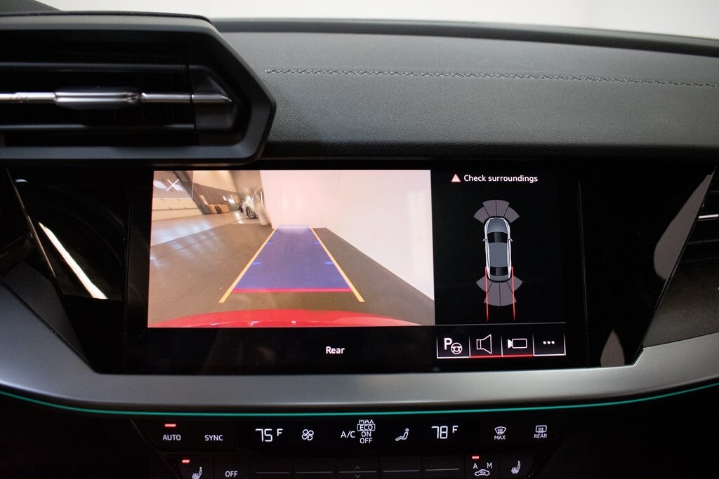 This A3 is well equipped with Black Optic Sport Package (Black Exterior Trim, Sport Suspension (-15 mm), and Wheels: 18" 5-Y-Spoke Design), Convenience Package (Alarm System w/Motion Sensor, Audi Advanced Key, Audi Side Assist, Auto-Dimming Interior Mirror w/Compass, Auto-Dimming Power Folding Exterior Mirrors, Memory for Driver's Seat, Park Assist, SiriusXM w/360L, and Wireless Phone Charging Pad), LED Interior Lighting Plus Package, Premium Plus Package (Adaptive Cruise Assist w/Lane Guidance and Agate Gray Fine Grain Birch Wood Inlay), Technology Package (Audi Connect PLUS, Audi MMI Navigation Plus, Audi Virtual Cockpit Plus, Bang & Olufsen Sound System w/3D Sound, and Traffic Sign Recognition), 4-Wheel Disc Brakes, 6 Speakers, ABS brakes, Air Conditioning, Alloy wheels, AM/FM radio, Audi Beam Rings, Audi Guard Protection Kit, Auto High-beam Headlights, Automatic temperature control, Bang & Olufsen Sound System w/3D Sound (DISC), Black Audi Rings & Badges, Brake assist, Bumpers: body-color, Delay-off headlights, Driver door bin, Driver vanity mirror, Dual front impact airbags, Dual front side impact airbags, Electronic Stability Control, Emergency communication system, Exterior Parking Camera Rear, Four wheel independent suspension, Front anti-roll bar, Front Bucket Seats, Front Center Armrest, Front dual zone A/C, Front reading lights, Fully automatic headlights, Heated door mirrors, Heated Front Bucket Seats, Heated front seats, Illuminated entry, Knee airbag, Leather Seating Surfaces, Leather steering wheel, Low tire pressure warning, Occupant sensing airbag, Outside temperature display, Overhead airbag, Overhead console, Panic alarm, Passenger door bin, Passenger vanity mirror, Power door mirrors, Power driver seat, Power moonroof, Power passenger seat, Power steering, Power windows, Radio data system, Radio: Audi Sound System, Rain sensing wipers, Rear air conditioning, Rear anti-roll bar, Rear fog lights, Rear reading lights, Rear seat center armrest, Rear side impact airbag, Rear window defroster, Remote keyless entry, Speed control, Speed-sensing steering, Speed-Sensitive Wipers, Split folding rear seat, Steering wheel mounted audio controls, Tachometer, Telescoping steering wheel, Tilt steering wheel, Traction control, Trip computer, Turn signal indicator mirrors, Variably intermittent wipers, and Wheels: 17" 5-Arm Design.