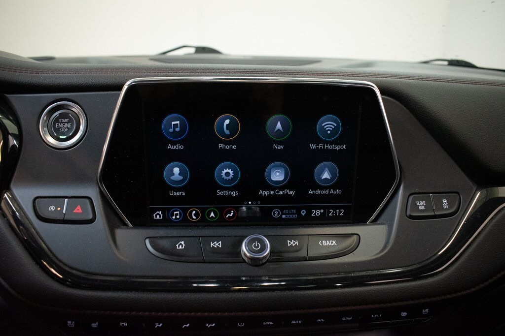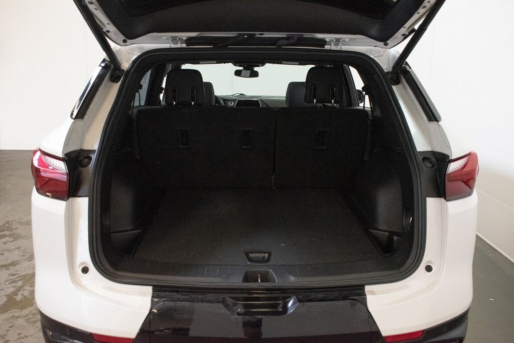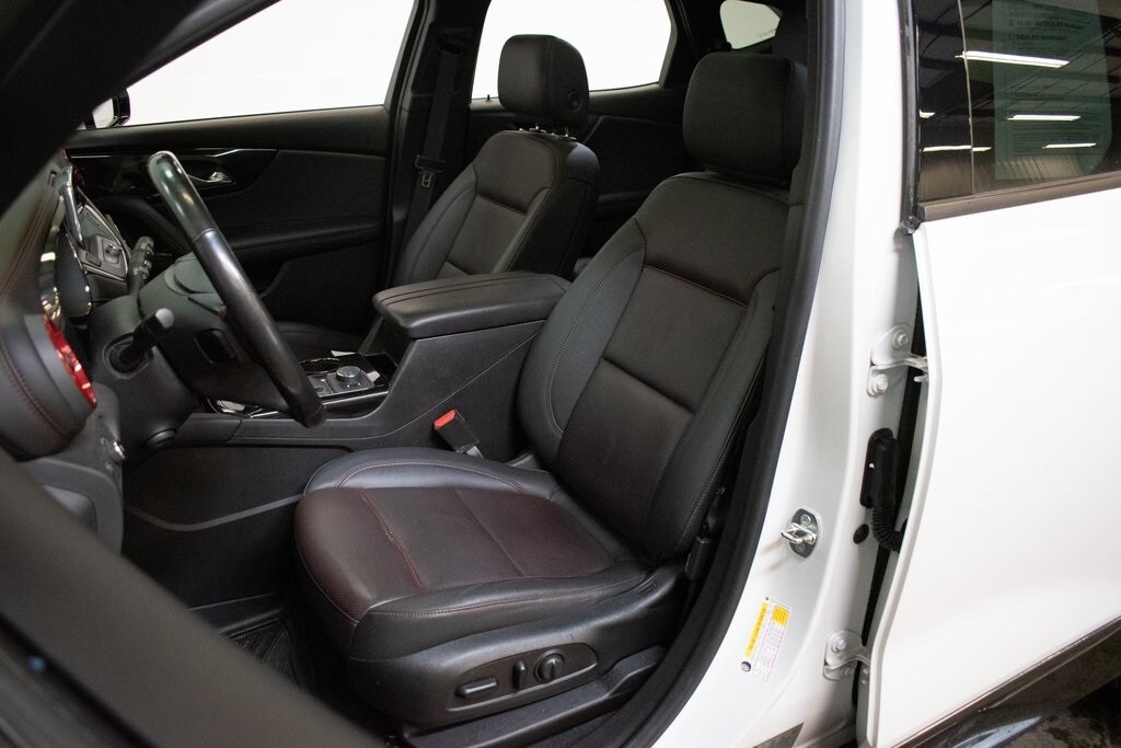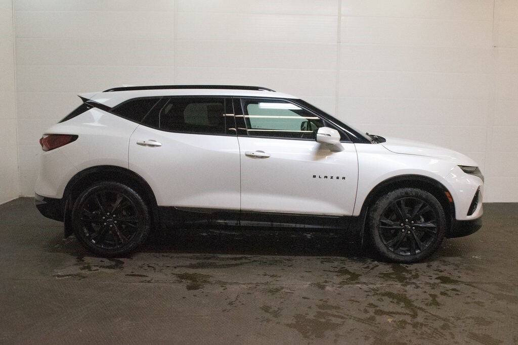 This Blazer is well equipped with Enhanced Convenience Package (Heated Rear Outboard Seating Positions, Memory Settings For Driver Seat & Exterior Mirrors, Power Tilt & Telescoping Steering Column, and Ventilated Driver & Front Passenger Seats), Preferred Equipment Group 1RS, Trailering Equipment (Heavy-Duty Cooling System, Hitch Guidance, and Hitch Guidance w/Hitch View), Navigation System, 3.49 Final Drive Axle Ratio, 4-Wheel Disc Brakes, 6 Speakers, 6-Speaker Audio System Feature, 6-Way Power Front Passenger Seat Adjuster, ABS brakes, Air Conditioning, Alloy wheels, AM/FM radio: SiriusXM, Apple CarPlay/Android Auto, Auto High-beam Headlights, Auto-dimming door mirrors, Auto-dimming Rear-View mirror, Automatic temperature control, Brake assist, Bumpers: body-color, Child-Seat-Sensing Airbag, Compass, Delay-off headlights, Driver door bin, Driver vanity mirror, Dual front impact airbags, Dual front side impact airbags, Electronic Stability Control, Emergency communication system: OnStar and Chevrolet connected services capable, Exterior Parking Camera Rear, Four wheel independent suspension, Front anti-roll bar, Front Bucket Seats, Front Center Armrest, Front dual zone A/C, Front reading lights, Fully automatic headlights, Garage door transmitter, Heated door mirrors, Heated Driver & Front Passenger Seats, Heated front seats, Heated steering wheel, High-Intensity Discharge Headlights, Illuminated entry, Knee airbag, Leather Shift Knob, Low tire pressure warning, Occupant sensing airbag, Outside temperature display, Overhead airbag, Overhead console, Panic alarm, Passenger door bin, Passenger vanity mirror, Perforated Leather-Appointed Seat Trim, Power door mirrors, Power driver seat, Power Liftgate, Power Panoramic Tilt-Sliding Sunroof, Power passenger seat, Power steering, Power windows, Radio data system, Radio: Chevrolet Infotainment 3 Plus System, Rear anti-roll bar, Rear reading lights, Rear seat center armrest, Rear window defroster, Rear window wiper, Remote keyless entry, Ride & Handling Suspension, Security system, SiriusXM w/360L, Speed control, Speed-sensing steering, Split folding rear seat, Spoiler, Steering wheel mounted audio controls, Tachometer, Telescoping steering wheel, Tilt steering wheel, Traction control, Trip computer, Turn signal indicator mirrors, Variably intermittent wipers, Voltmeter, Wheels: 20" Dark Android Machined-Face Aluminum, and Wheels: 21" Gloss Black Aluminum.