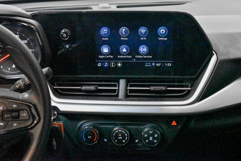 This Trax is well equipped with LS Convenience Package (Body-Color Painted Mirror Caps, Carpeted Rear Floor Mats, Heated Driver & Front Passenger Seats, Heated Power-Adjustable Outside Mirrors, Remote Start, and Wheels: 17" Silver Painted Aluminum), Preferred Equipment Group 1LS, 17" Steel Wheels w/Wheel Covers, 2-Way Adjustable Front Head Restraints, 3.50 Final Drive Axle Ratio, 4 Speakers, 4-Speaker Audio System Feature, 4-Way Manual Front Passenger Seat Adjuster, 4-Wheel Disc Brakes, 6-Way Manual Driver Seat Adjuster, ABS brakes, Air Conditioning, AM/FM radio: SiriusXM, Auto High-beam Headlights, Brake assist, Bumpers: body-color, Cloth Seat Trim, Compass, Delay-off headlights, Driver door bin, Driver vanity mirror, Dual front impact airbags, Dual front side impact airbags, Electronic Stability Control, Emergency communication system: OnStar and Chevrolet connected services capable, Exterior Parking Camera Rear, Front anti-roll bar, Front Bucket Seats, Front Center Armrest, Front reading lights, Front wheel independent suspension, Fully automatic headlights, Illuminated entry, Low tire pressure warning, Occupant sensing airbag, Outside temperature display, Overhead airbag, Overhead console, Panic alarm, Passenger door bin, Passenger vanity mirror, Power door mirrors, Power steering, Power windows, Premium audio system: Chevrolet Infotainment 3, Radio data system, Radio: Chevrolet Infotainment 3 System w/AM/FM, Rear window defroster, Rear window wiper, Remote keyless entry, Security system, SiriusXM, Speed control, Split folding rear seat, Spoiler, Steering wheel mounted audio controls, Tachometer, Telescoping steering wheel, Tilt steering wheel, Traction control, Trip computer, and Variably intermittent wipers.