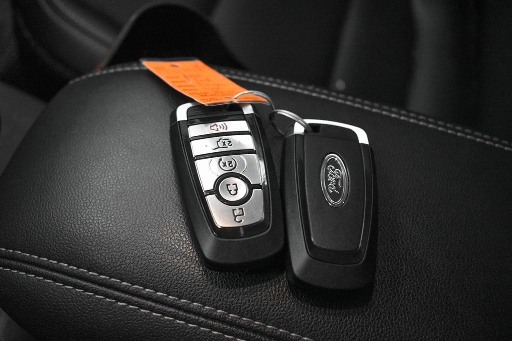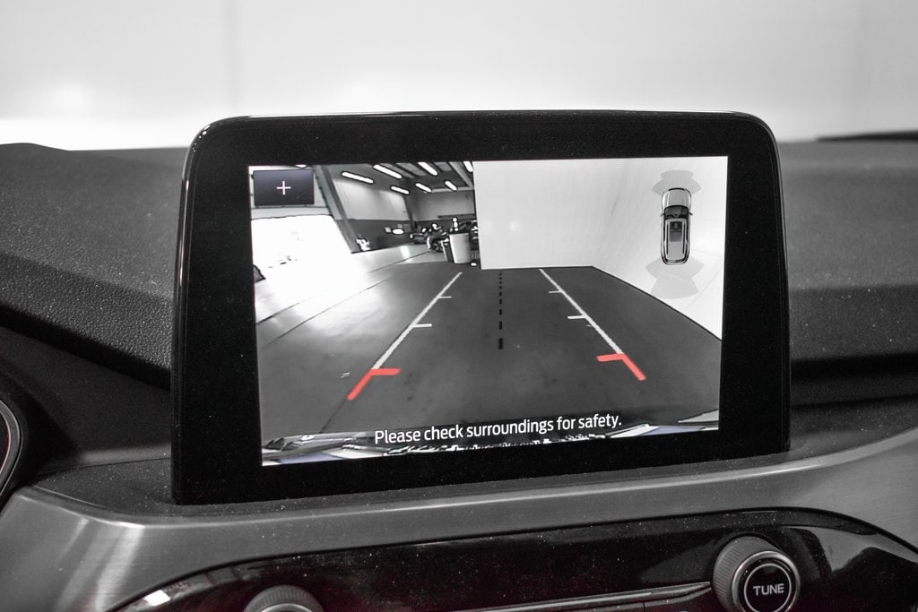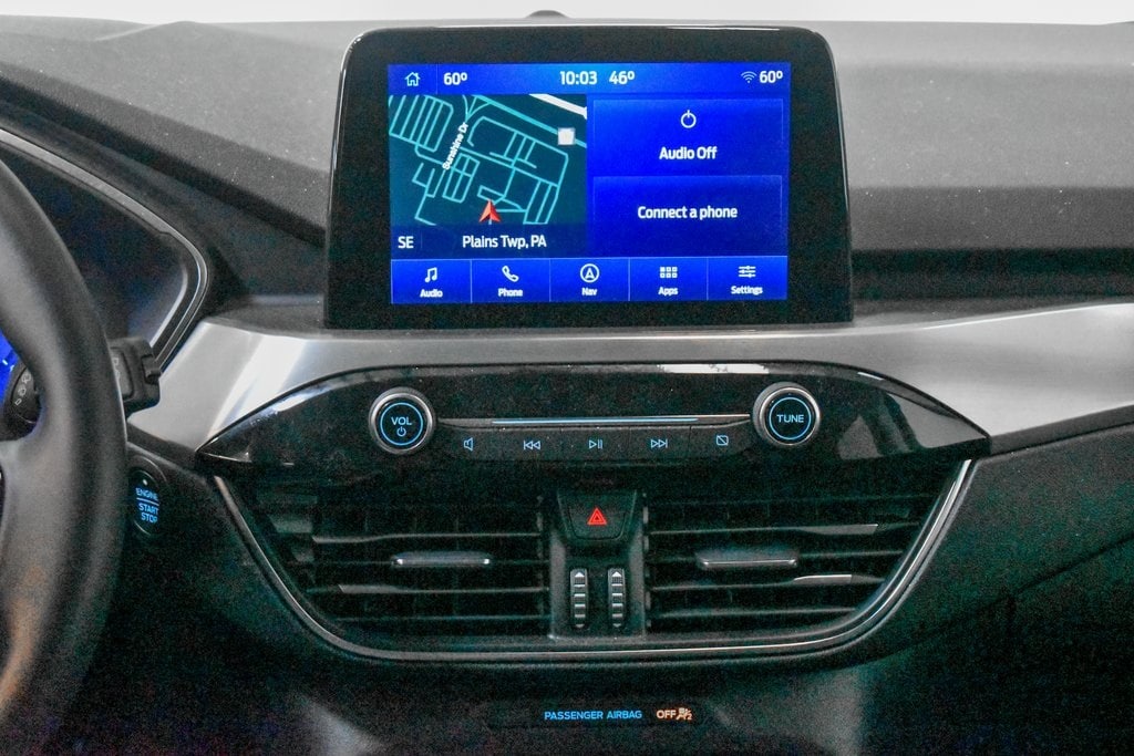 This Escape is well equipped with Class II Trailer Tow Package, Equipment Group 401A, Navigation System, 3.47 Axle Ratio, 4-Wheel Disc Brakes, 4G LTE Wi-Fi Hotspot Removal, 6 Speakers, ABS brakes, Air Conditioning, Alloy wheels, AM/FM radio: SiriusXM, AM/FM Stereo, Auto High-beam Headlights, Auto-dimming Rear-View mirror, Automatic temperature control, Black Roof-Rack Side Rails, Brake assist, Bumpers: body-color, Compass, Delay-off headlights, Driver door bin, Driver vanity mirror, Dual front impact airbags, Dual front side impact airbags, Electronic Stability Control, Emergency communication system: SYNC 3 911 Assist, Exterior Parking Camera Rear, FordPass Connect, Four wheel independent suspension, Front & Rear Floor Liners w/Carpet Mats, Front anti-roll bar, Front Bucket Seats, Front Center Armrest, Front dual zone A/C, Front fog lights, Front reading lights, Fully automatic headlights, Garage door transmitter, Hands-Free Foot-Activated Liftgate Feature Removal, Heated ActiveX Trimmed Front Sport Contour Bucket Seats, Heated door mirrors, Heated front seats, Heated steering wheel, Illuminated entry, Knee airbag, Low tire pressure warning, Memory seat, Occupant sensing airbag, Outside temperature display, Overhead airbag, Overhead console, Panic alarm, Panoramic Vista Roof, Passenger door bin, Passenger vanity mirror, Power door mirrors, Power driver seat, Power Liftgate, Power passenger seat, Power steering, Power windows, Radio data system, Rain sensing wipers, Rear anti-roll bar, Rear reading lights, Rear seat center armrest, Rear window defroster, Rear window wiper, Remote keyless entry, Roof rack: rails only, Security system, Speed control, Speed-sensing steering, Speed-Sensitive Wipers, Split folding rear seat, Spoiler, Steering wheel mounted audio controls, SYNC 3 Communications & Entertainment System, Tachometer, Telescoping steering wheel, Tilt steering wheel, Traction control, Trip computer, Variably intermittent wipers, Voice-Activated Touchscreen Navigation System, and Wheels: 19" Machined-Face Aluminum.