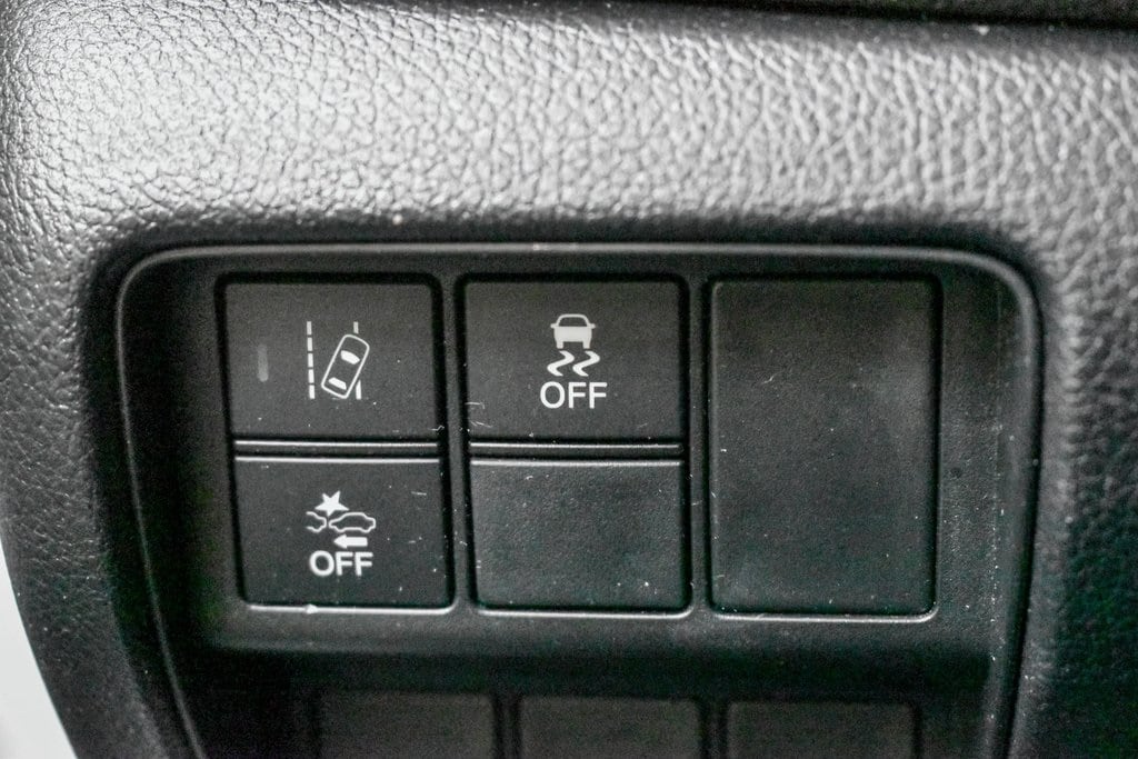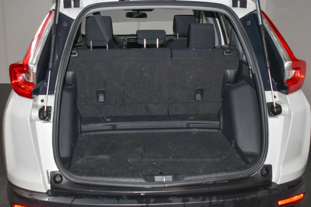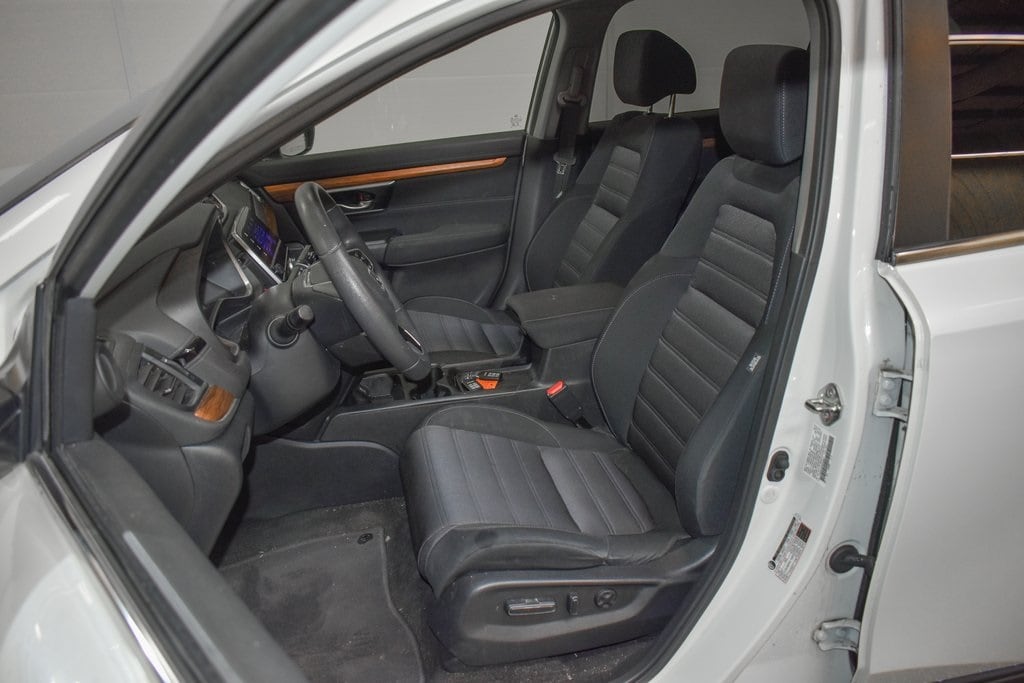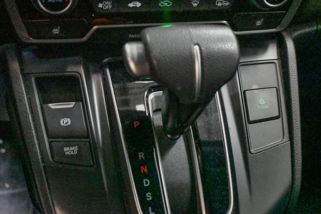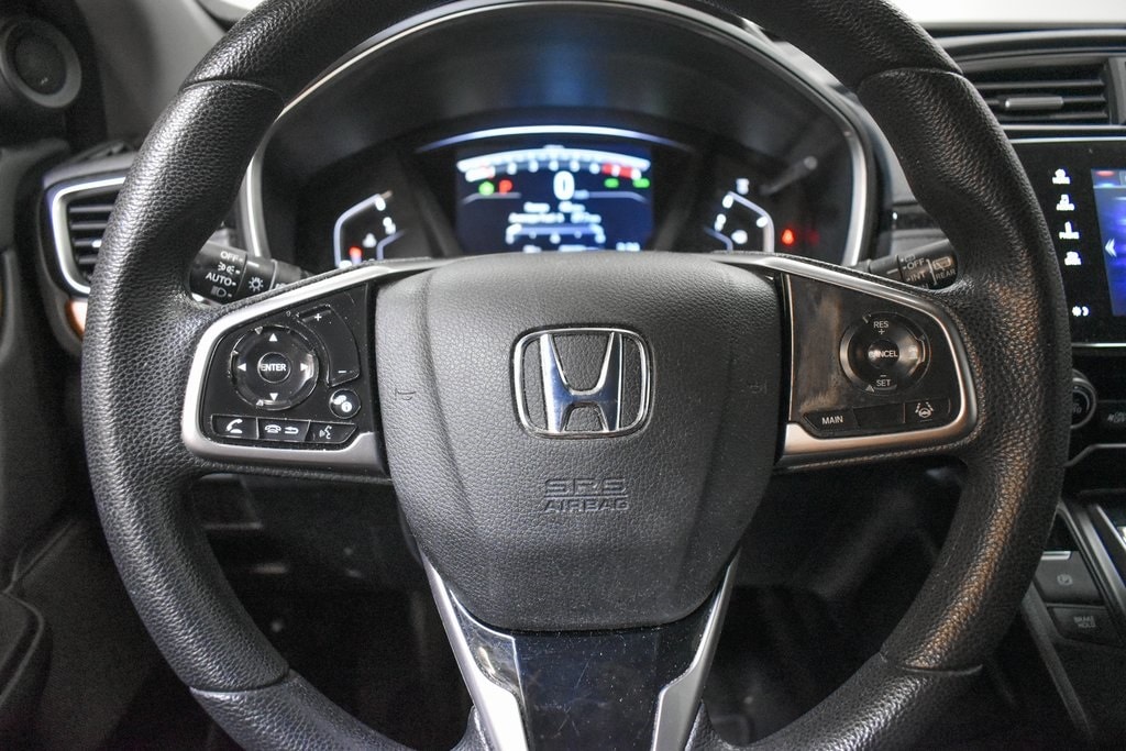 This CR-V is well equipped with 18" Alloy Wheels, 4-Wheel Disc Brakes, 5.64 Axle Ratio, 6 Speakers, ABS brakes, Air Conditioning, Alloy wheels, AM/FM radio: SiriusXM, Apple CarPlay/Android Auto, Auto High-beam Headlights, Automatic temperature control, Blind Spot Information (BSI) System warning, Brake assist, Bumpers: body-color, Cloth Seat Trim, Compass, Delay-off headlights, Driver door bin, Driver vanity mirror, Dual front impact airbags, Dual front side impact airbags, Electronic Stability Control, Exterior Parking Camera Rear, Forward collision: Collision Mitigation Braking System (CMBS) + FCW mitigation, Four wheel independent suspension, Front anti-roll bar, Front Bucket Seats, Front Center Armrest, Front dual zone A/C, Front fog lights, Front reading lights, Fully automatic headlights, Heated door mirrors, Heated Front Bucket Seats, Heated front seats, Illuminated entry, Lane departure: Lane Keeping Assist System (LKAS) active, Low tire pressure warning, Occupant sensing airbag, Outside temperature display, Overhead airbag, Overhead console, Panic alarm, Passenger door bin, Passenger vanity mirror, Power door mirrors, Power driver seat, Power moonroof, Power steering, Power windows, Radio data system, Radio: AM/FM Audio System w/6 Speakers, Rear anti-roll bar, Rear seat center armrest, Rear window defroster, Rear window wiper, Remote keyless entry, Security system, Speed control, Speed-sensing steering, Speed-Sensitive Wipers, Split folding rear seat, Spoiler, Steering wheel mounted audio controls, Tachometer, Telescoping steering wheel, Tilt steering wheel, Traction control, Trip computer, Turn signal indicator mirrors, and Variably intermittent wipers.