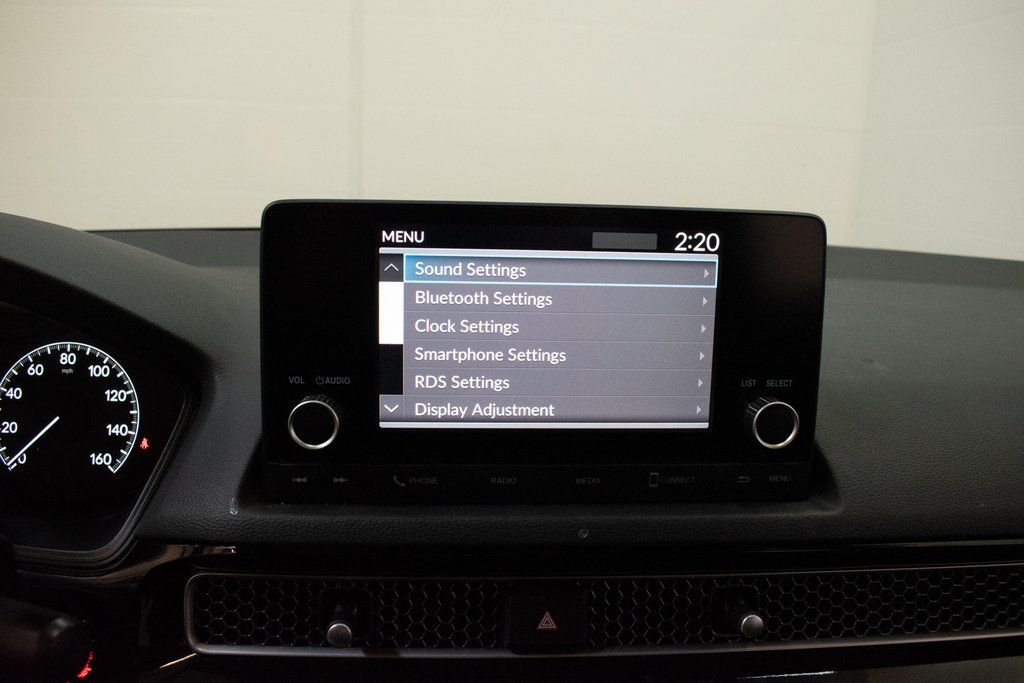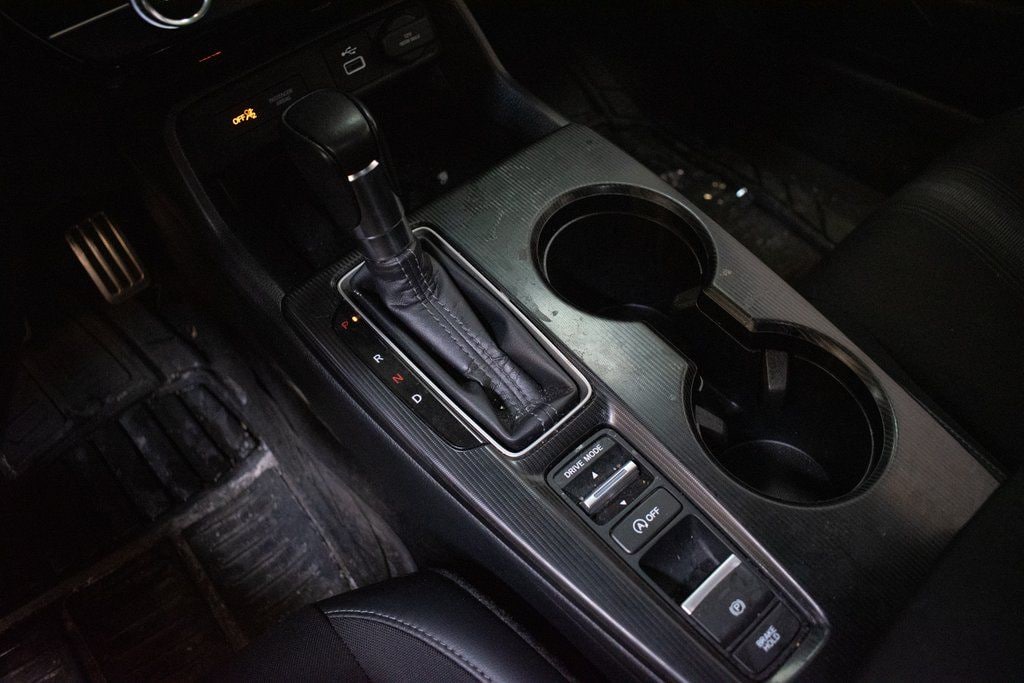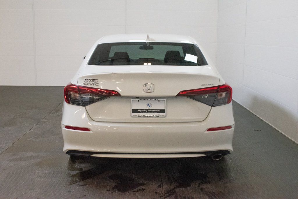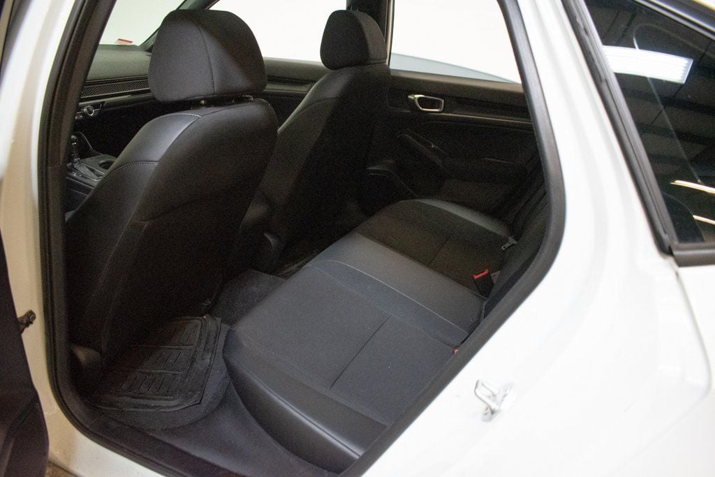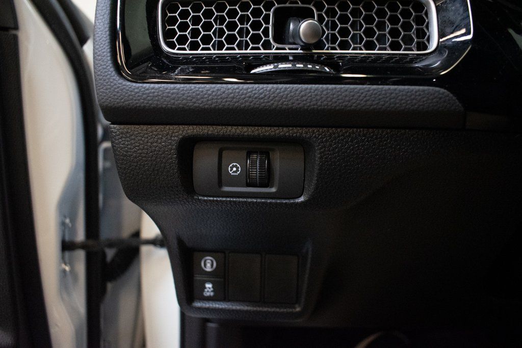 This Civic is well equipped with 4-Wheel Disc Brakes, 8 Speakers, ABS brakes, Adaptive Cruise Control: Adaptive Cruise Control (ACC) with Low-Speed Follow, Air Conditioning, Alloy wheels, AM/FM radio, Apple CarPlay/Android Auto, Auto High-beam Headlights, Automatic temperature control, Brake assist, Bumpers: body-color, Cloth Seat Trim, Delay-off headlights, Driver door bin, Driver vanity mirror, Dual front impact airbags, Dual front side impact airbags, Electronic Stability Control, Emergency communication system: HondaLink, Exterior Parking Camera Rear, Four wheel independent suspension, Front anti-roll bar, Front Bucket Seats, Front Center Armrest, Front reading lights, Fully automatic headlights, Illuminated entry, Knee airbag, Leather Shift Knob, Leather steering wheel, Low tire pressure warning, Occupant sensing airbag, Outside temperature display, Overhead airbag, Panic alarm, Passenger door bin, Passenger vanity mirror, Power door mirrors, Power steering, Power windows, Radio data system, Radio: 180-Watt Audio System w/8 Speakers, Rear anti-roll bar, Rear side impact airbag, Rear window defroster, Remote keyless entry, Security system, Speed control, Speed-sensing steering, Steering wheel mounted audio controls, Tachometer, Telescoping steering wheel, Tilt steering wheel, Traction control, Trip computer, and Wheels: 18" Gloss Black Alloy.