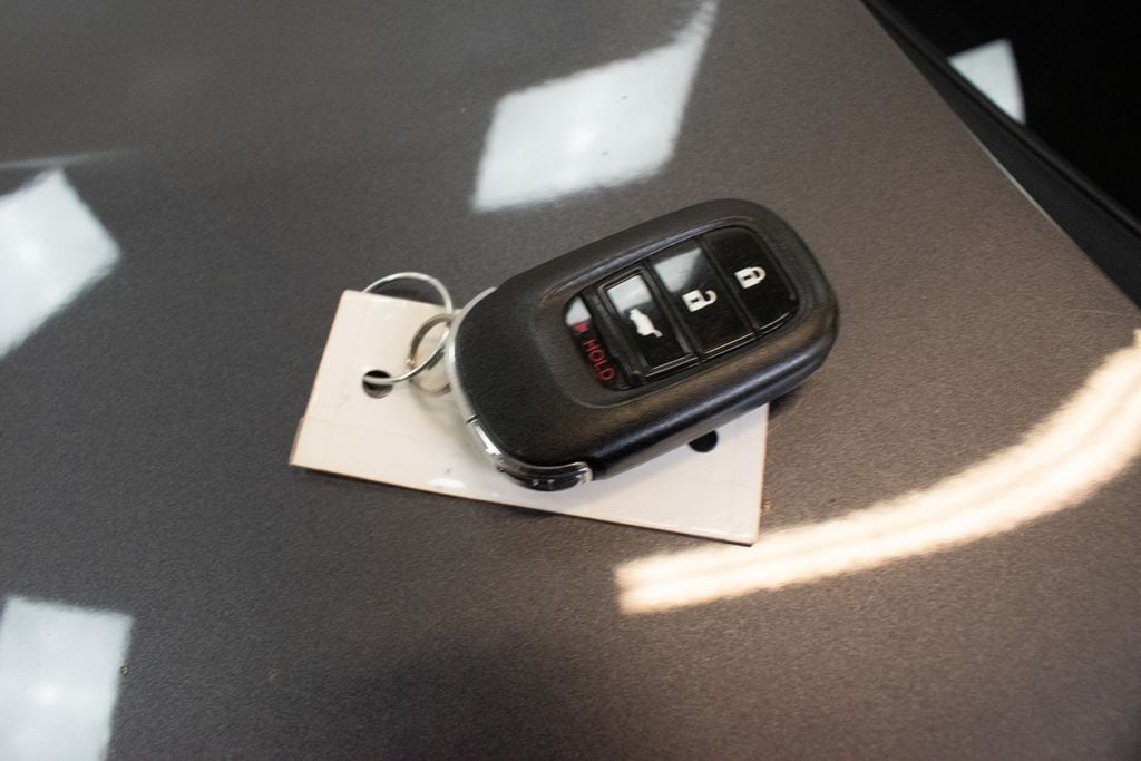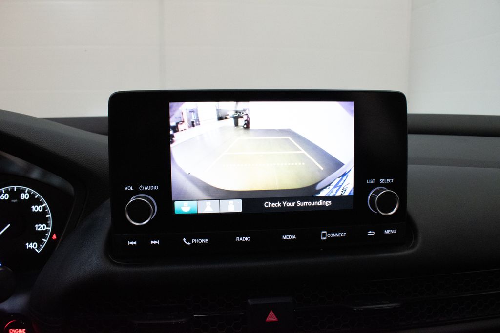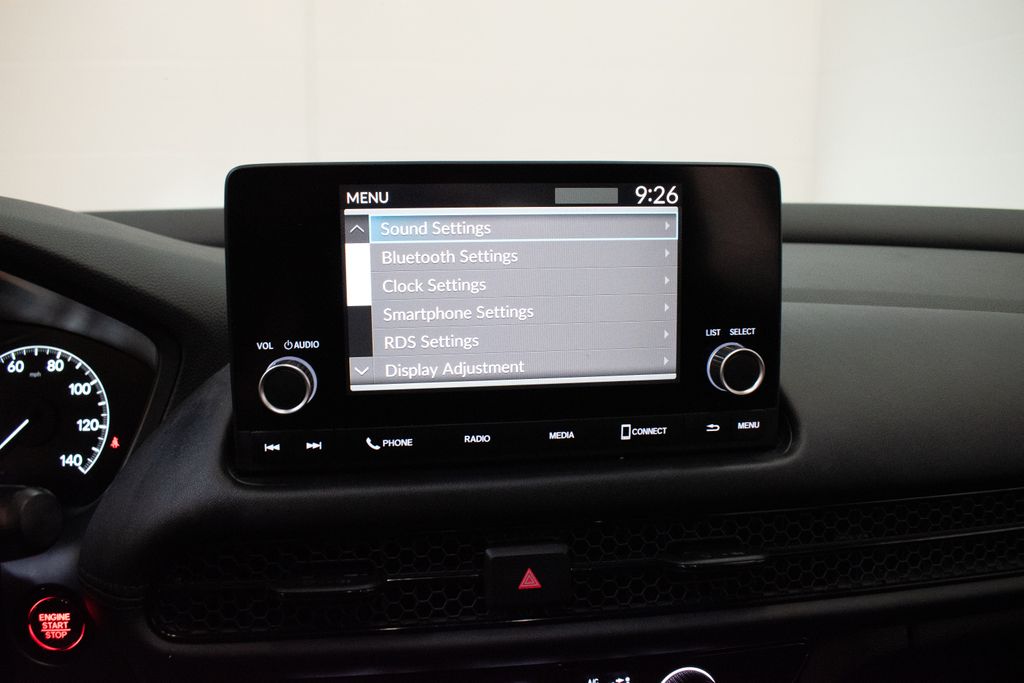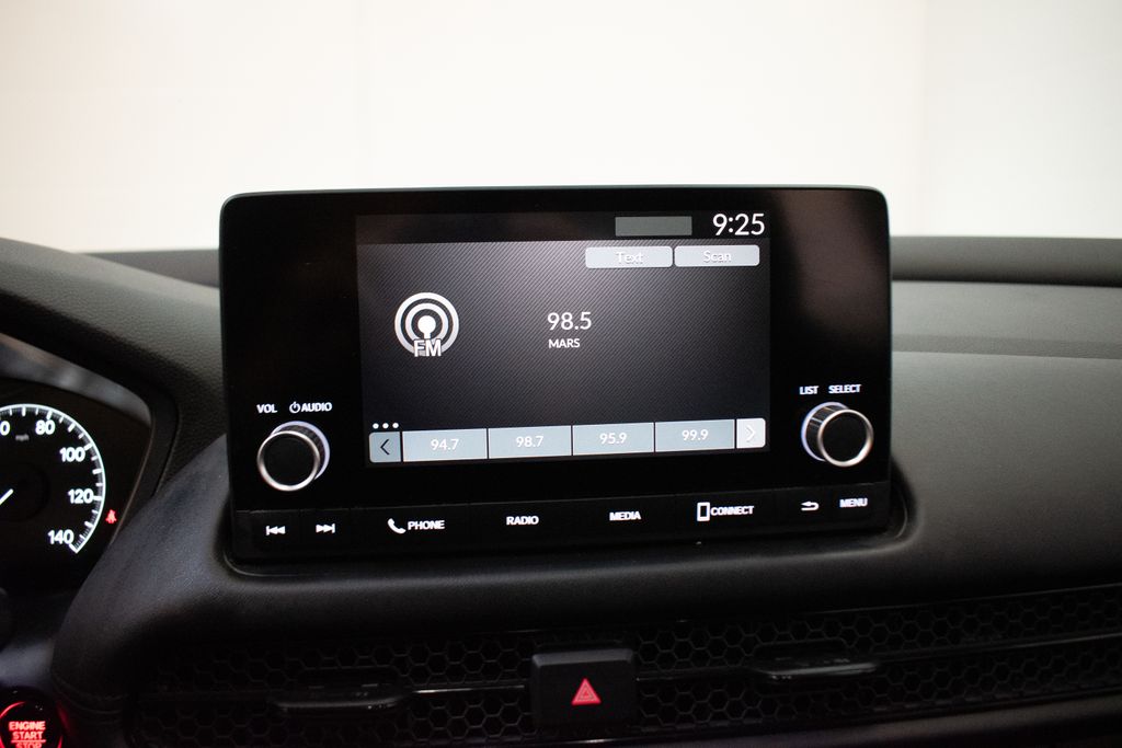 This HR-V is well equipped with 4 Speakers, 4-Wheel Disc Brakes, 5.436 Axle Ratio, ABS brakes, Adaptive Cruise Control: Adaptive Cruise Control (ACC) with Low-Speed Follow, Air Conditioning, Alloy wheels, AM/FM radio, Apple CarPlay/Android Auto, Auto High-beam Headlights, Automatic temperature control, Brake assist, Bumpers: body-color, Cloth Seat Trim, Delay-off headlights, Driver door bin, Driver vanity mirror, Dual front impact airbags, Dual front side impact airbags, Electronic Stability Control, Emergency communication system: HondaLink, Exterior Parking Camera Rear, Four wheel independent suspension, Front anti-roll bar, Front Bucket Seats, Front Center Armrest, Front reading lights, Fully automatic headlights, Illuminated entry, Knee airbag, Low tire pressure warning, Occupant sensing airbag, Outside temperature display, Overhead airbag, Panic alarm, Passenger door bin, Passenger vanity mirror, Power door mirrors, Power steering, Power windows, Radio data system, Radio: 180-Watt Audio System w/4 Speakers, Rear anti-roll bar, Rear reading lights, Rear side impact airbag, Rear window defroster, Rear window wiper, Remote keyless entry, Security system, Speed control, Speed-sensing steering, Split folding rear seat, Spoiler, Steering wheel mounted audio controls, Tachometer, Telescoping steering wheel, Tilt steering wheel, Traction control, Trip computer, Variably intermittent wipers, and Wheels: 17" Silver Painted Alloy.